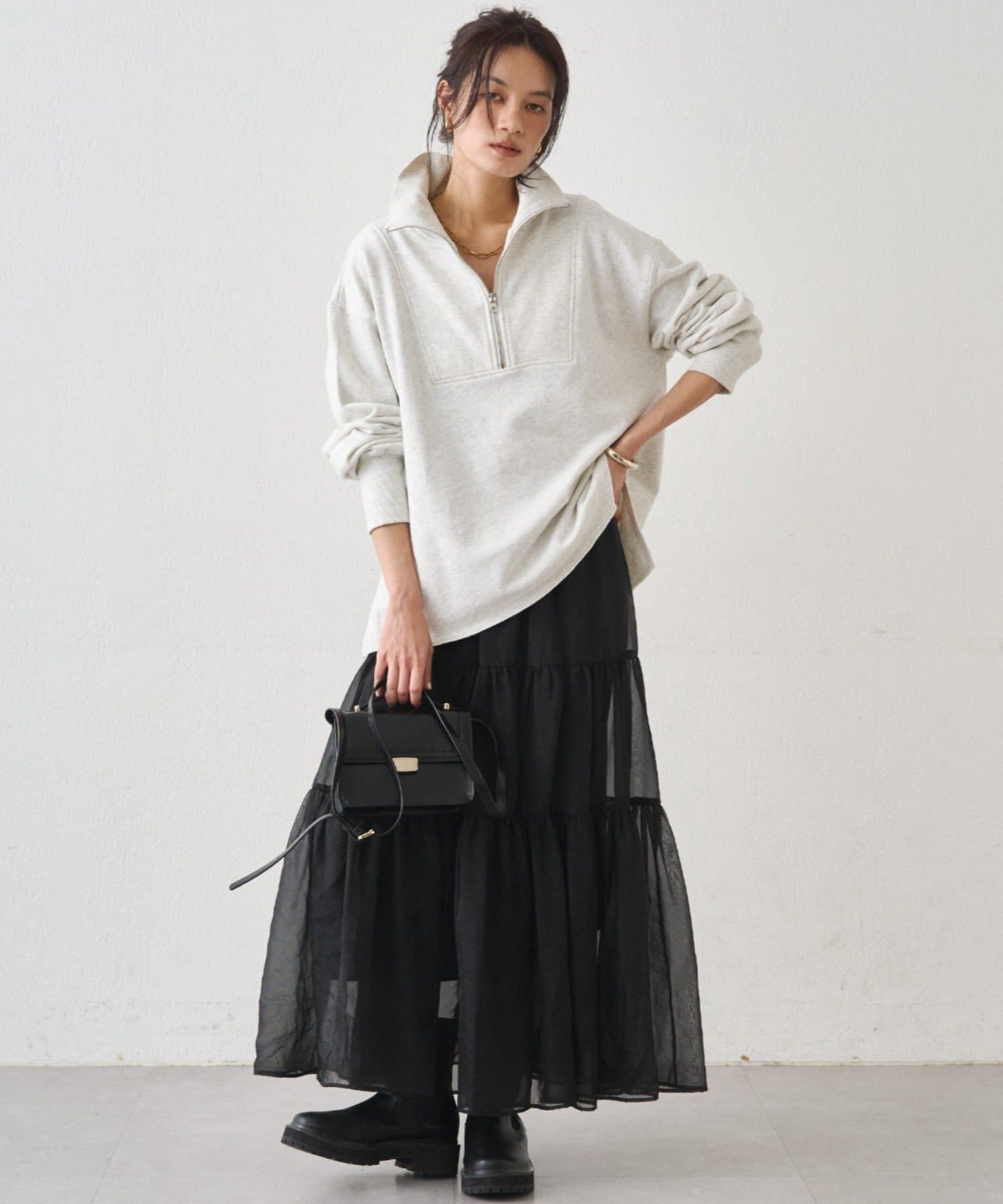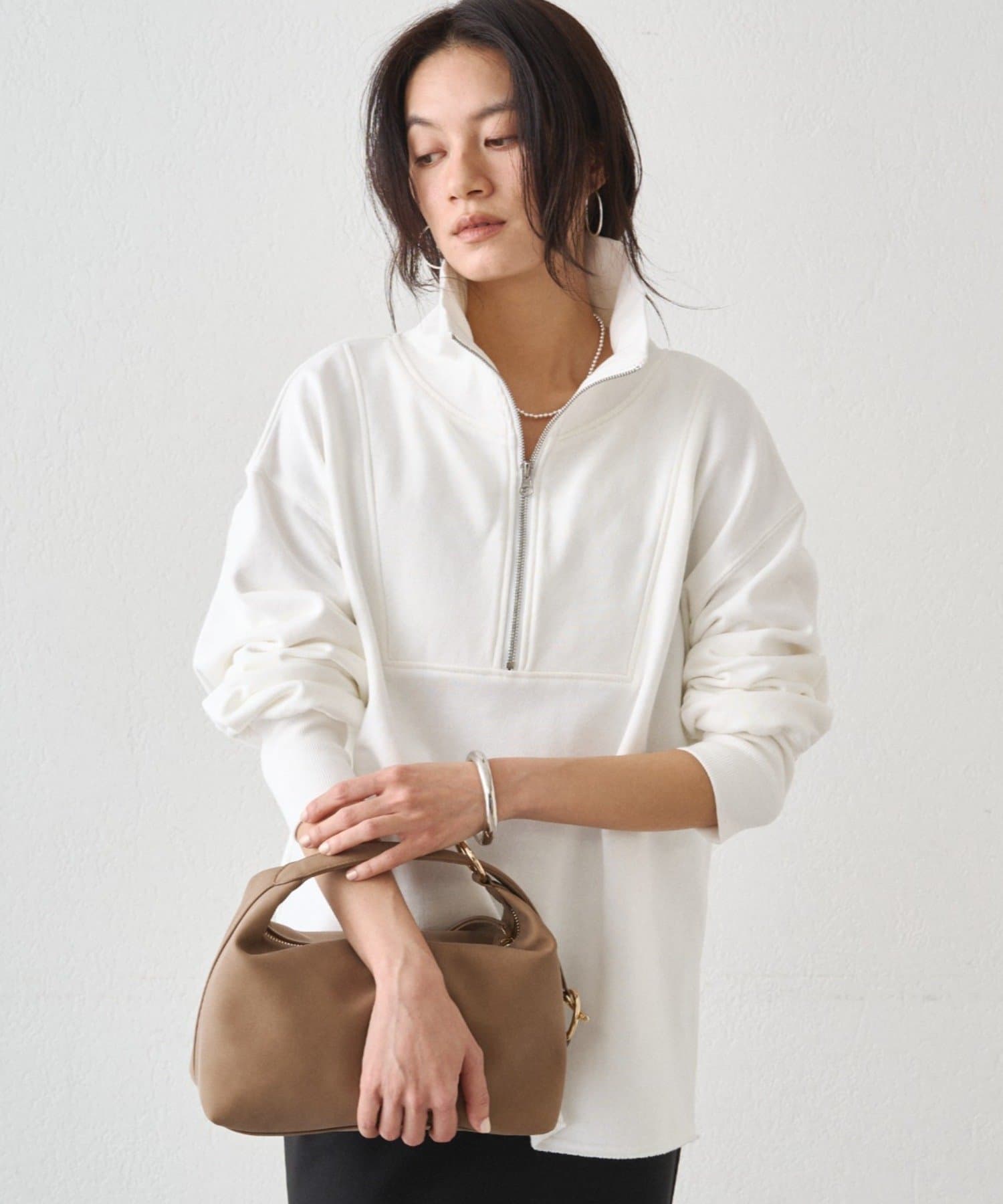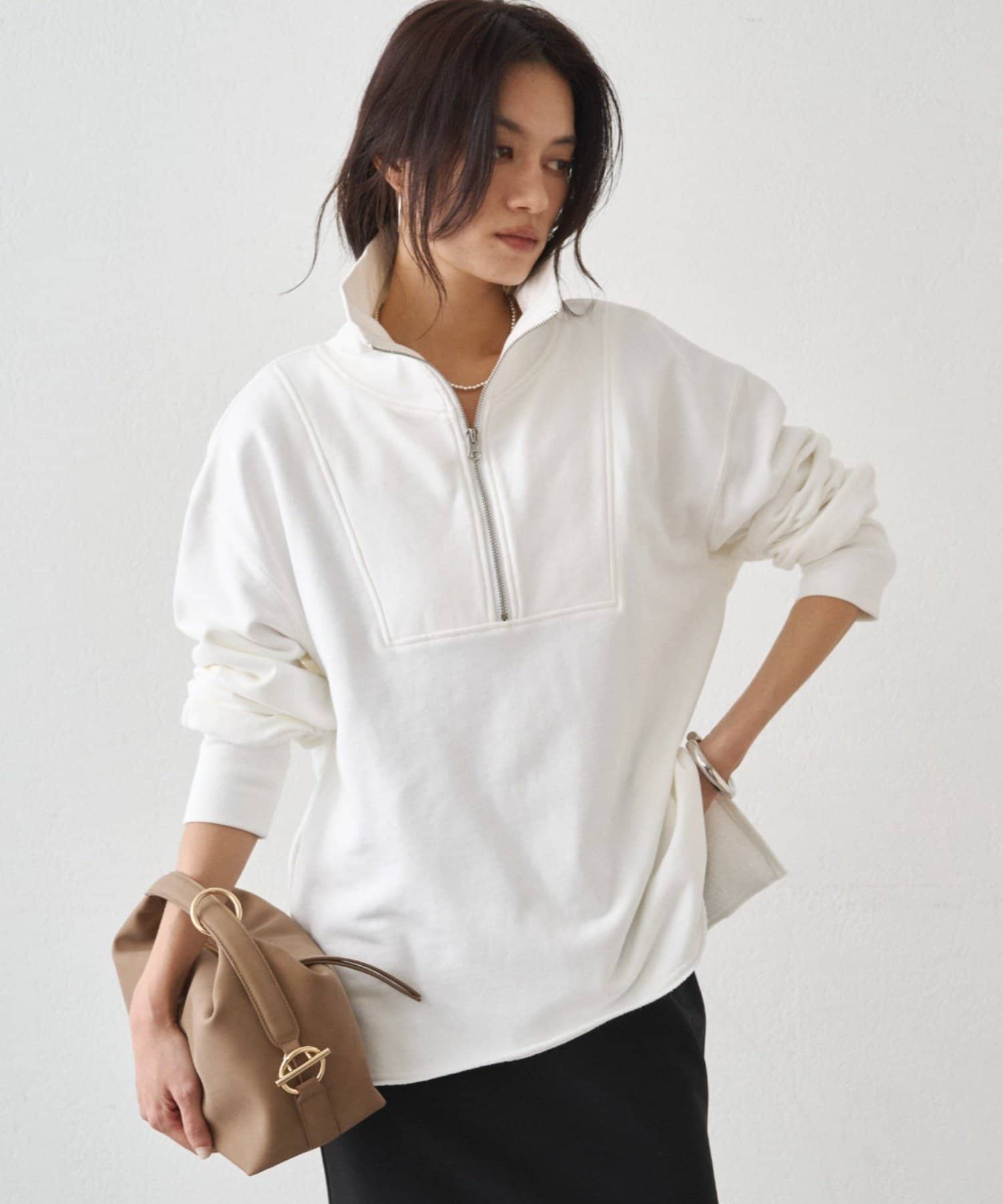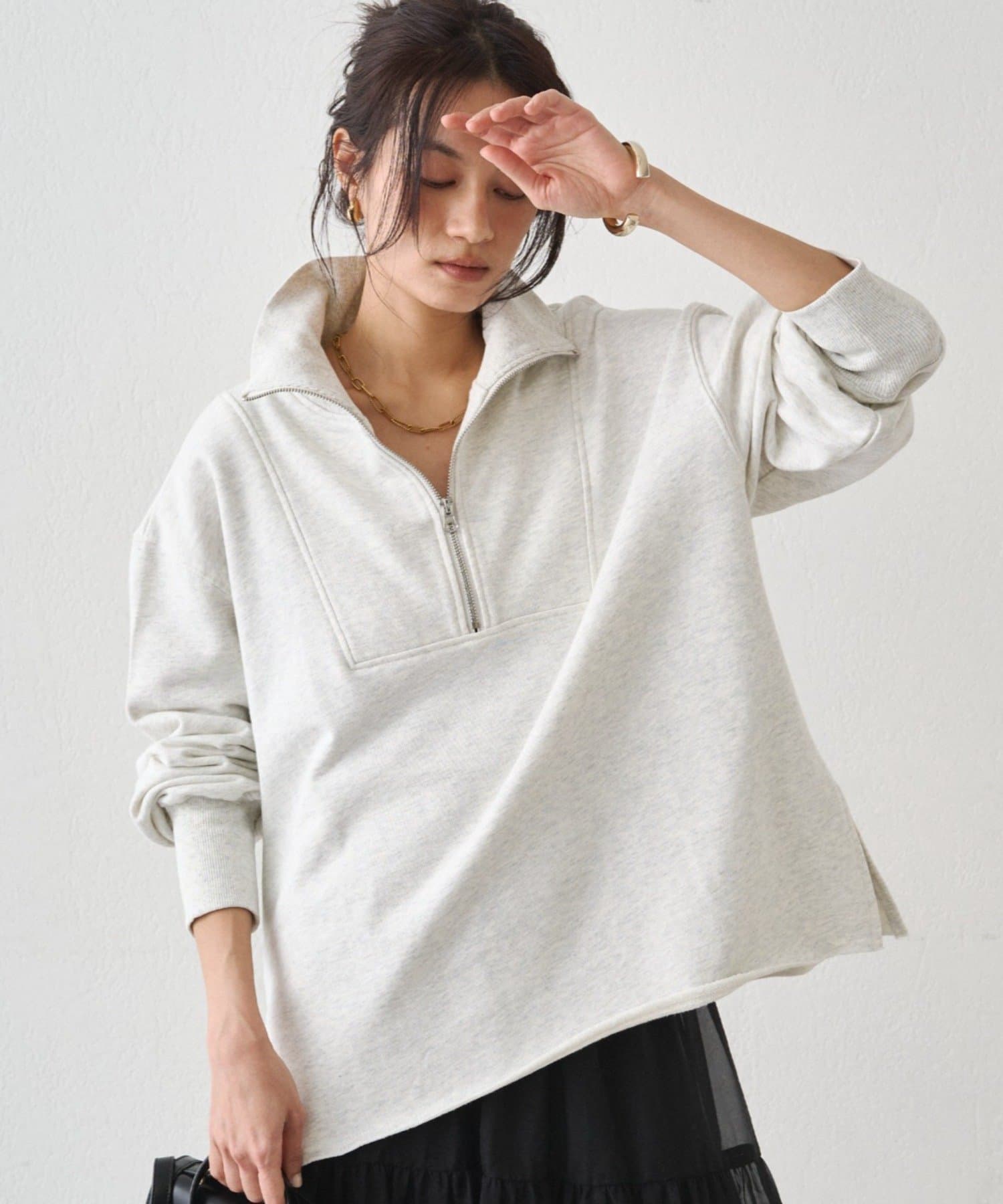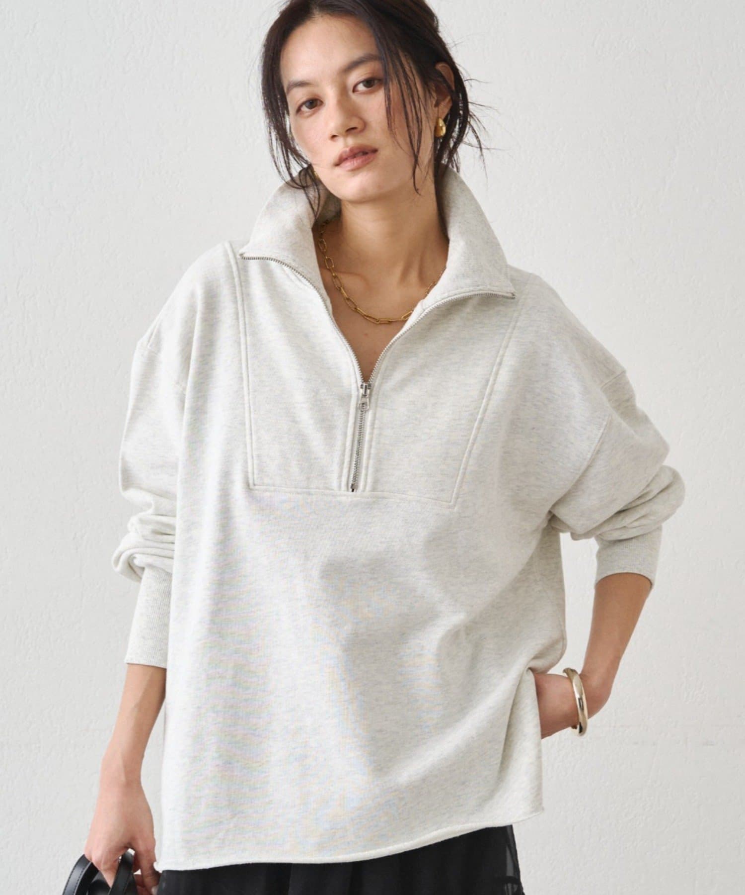 トレンドのハーフZIPデザインを、少し襟を高めにスポーティ要素も組み込んだアイテムに仕上げました。