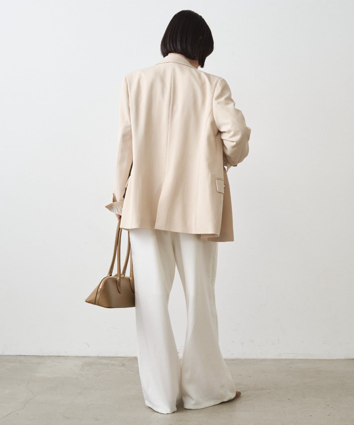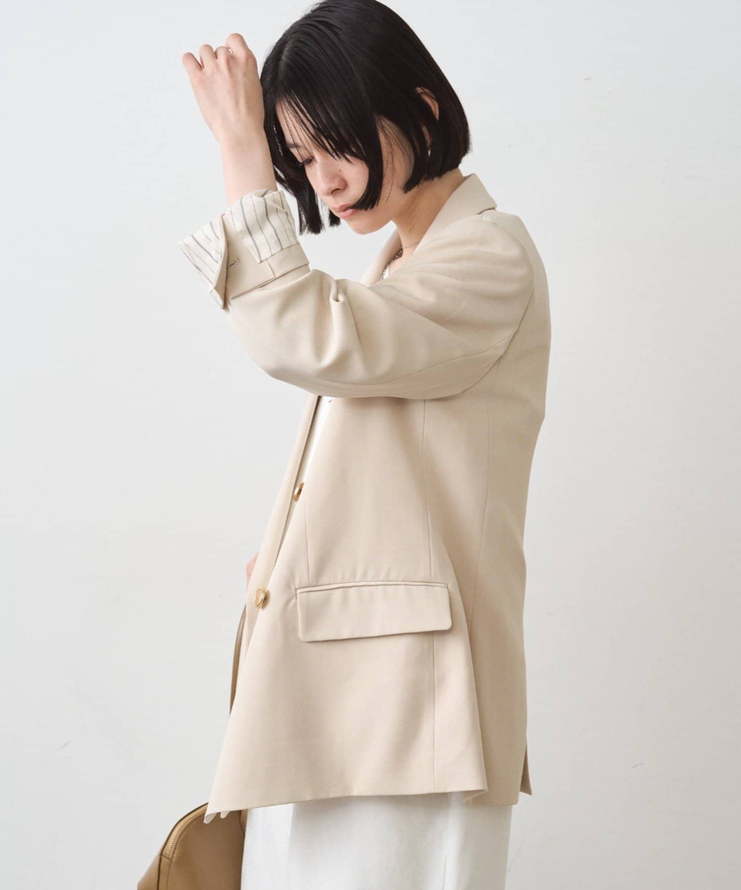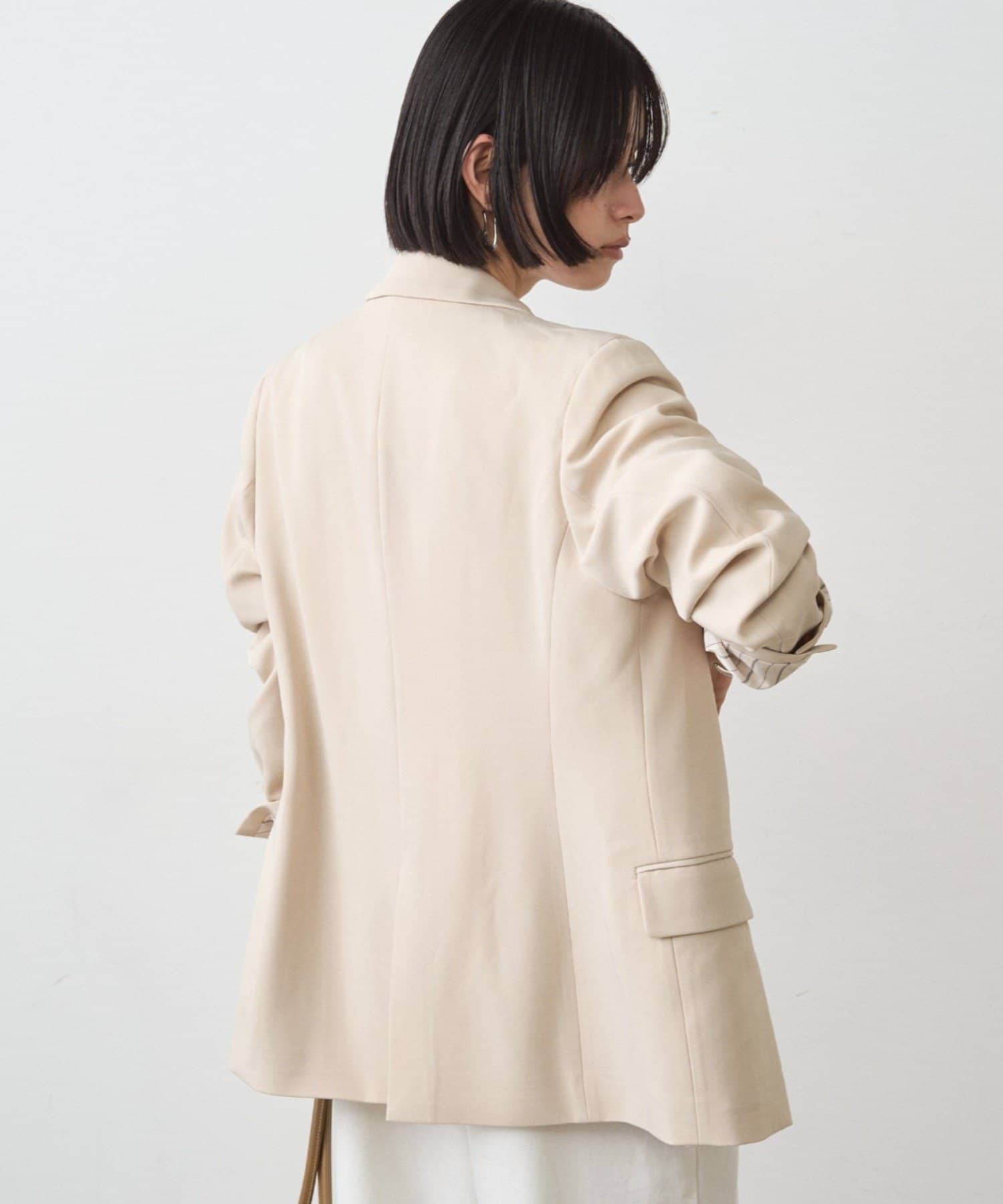 襟は硬くなりすぎないノッチドラペルになっており、ウエストが若干シェイプされたシルエットが着るとすっきりした印象に。
