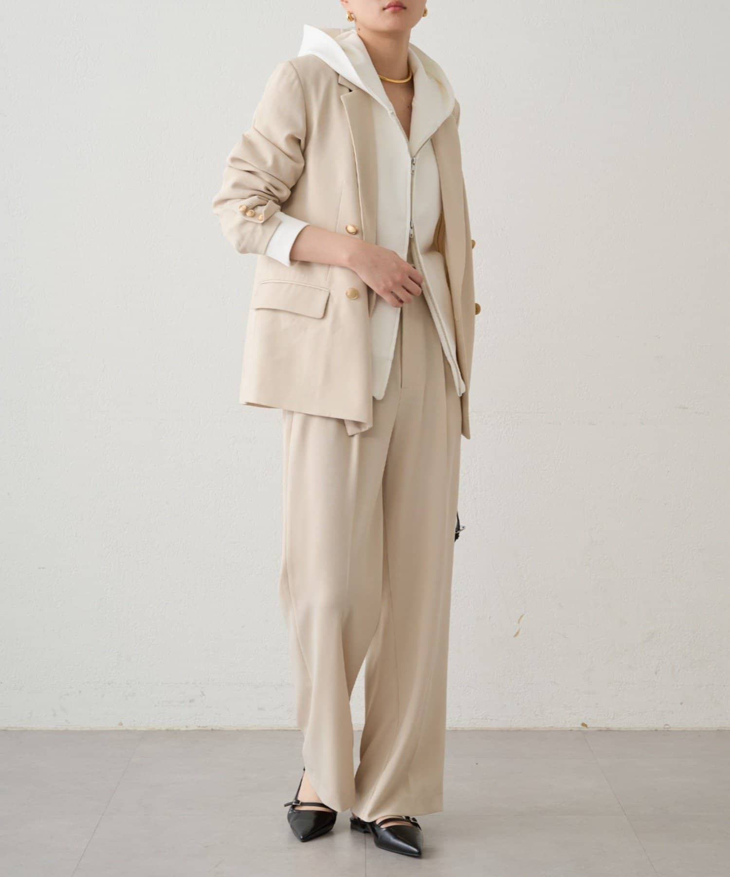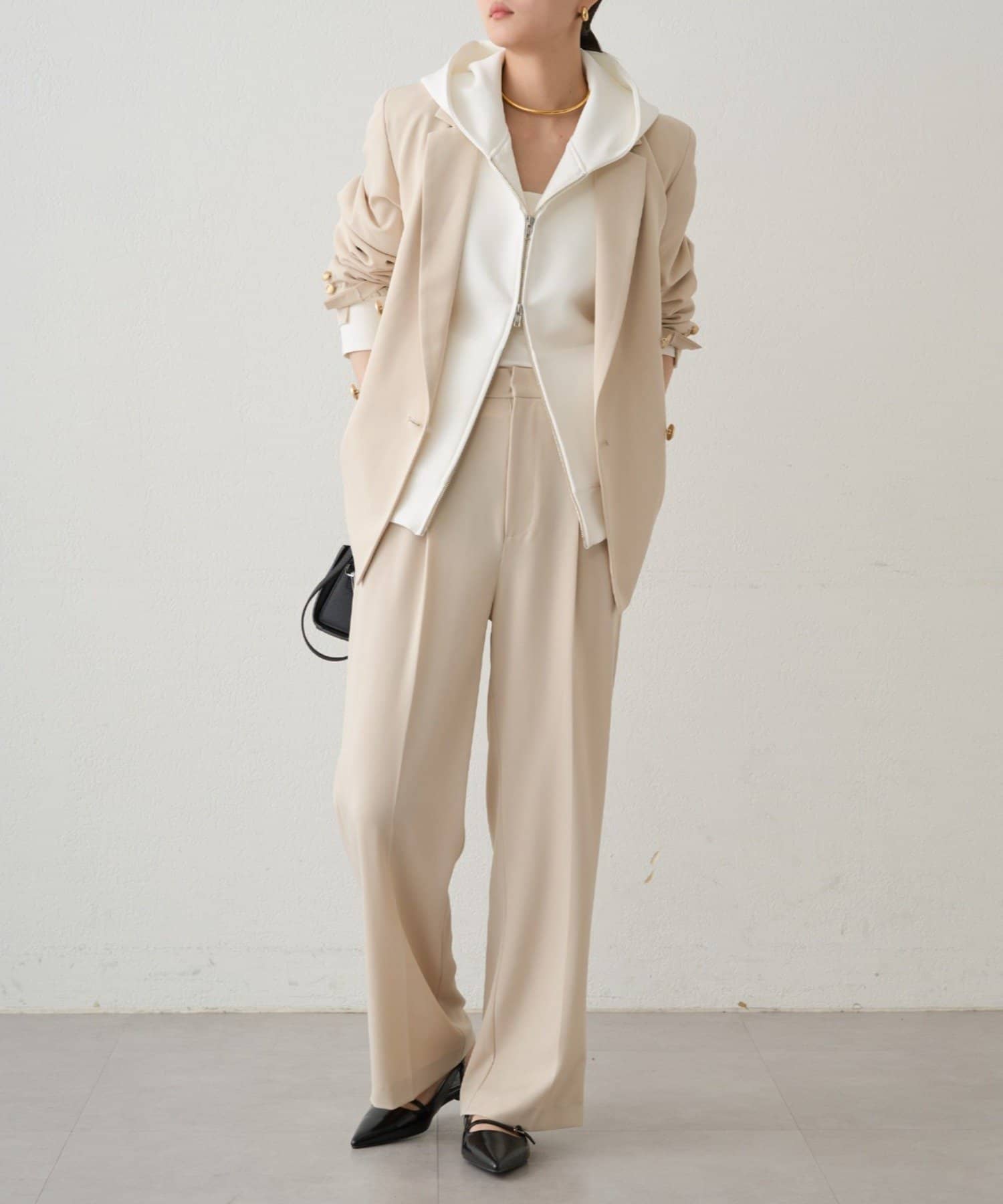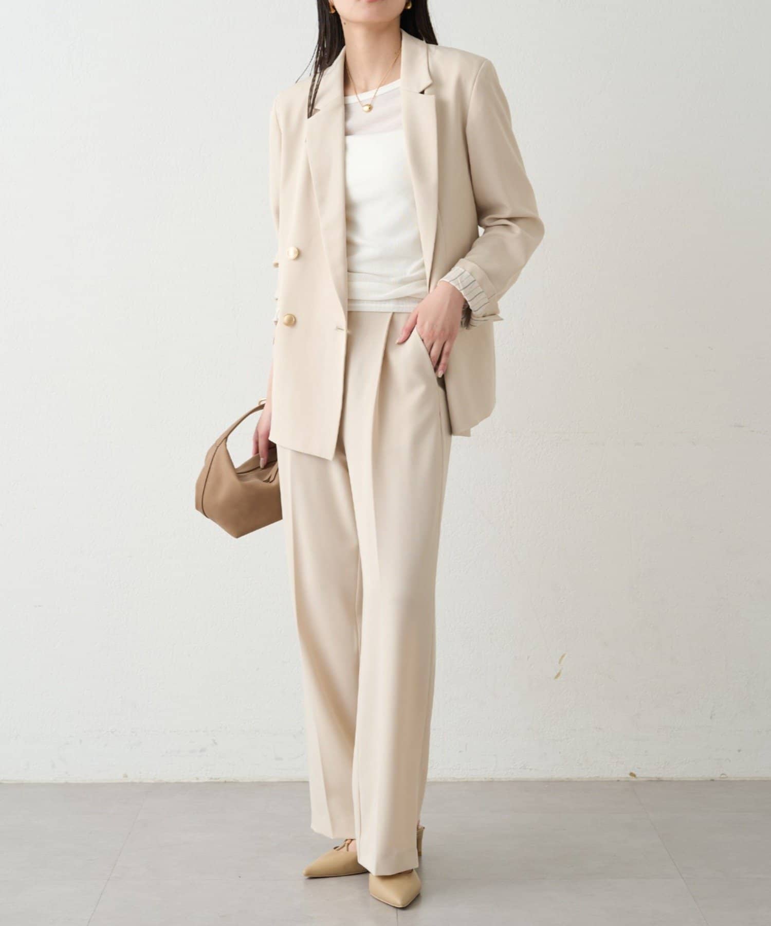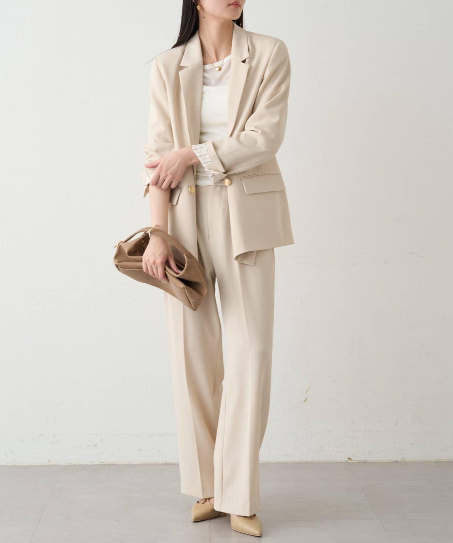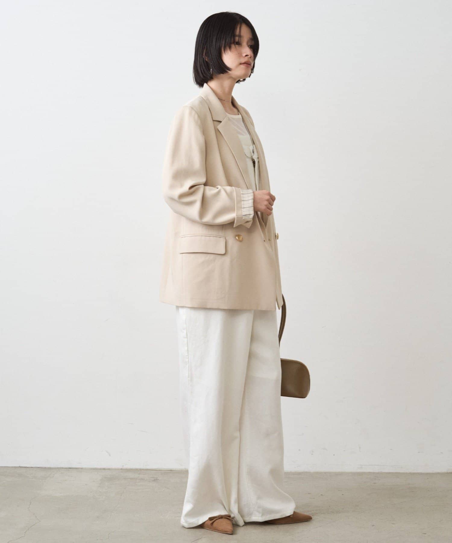 少し落ち感のある布地は女性らしさも演出してくれます。