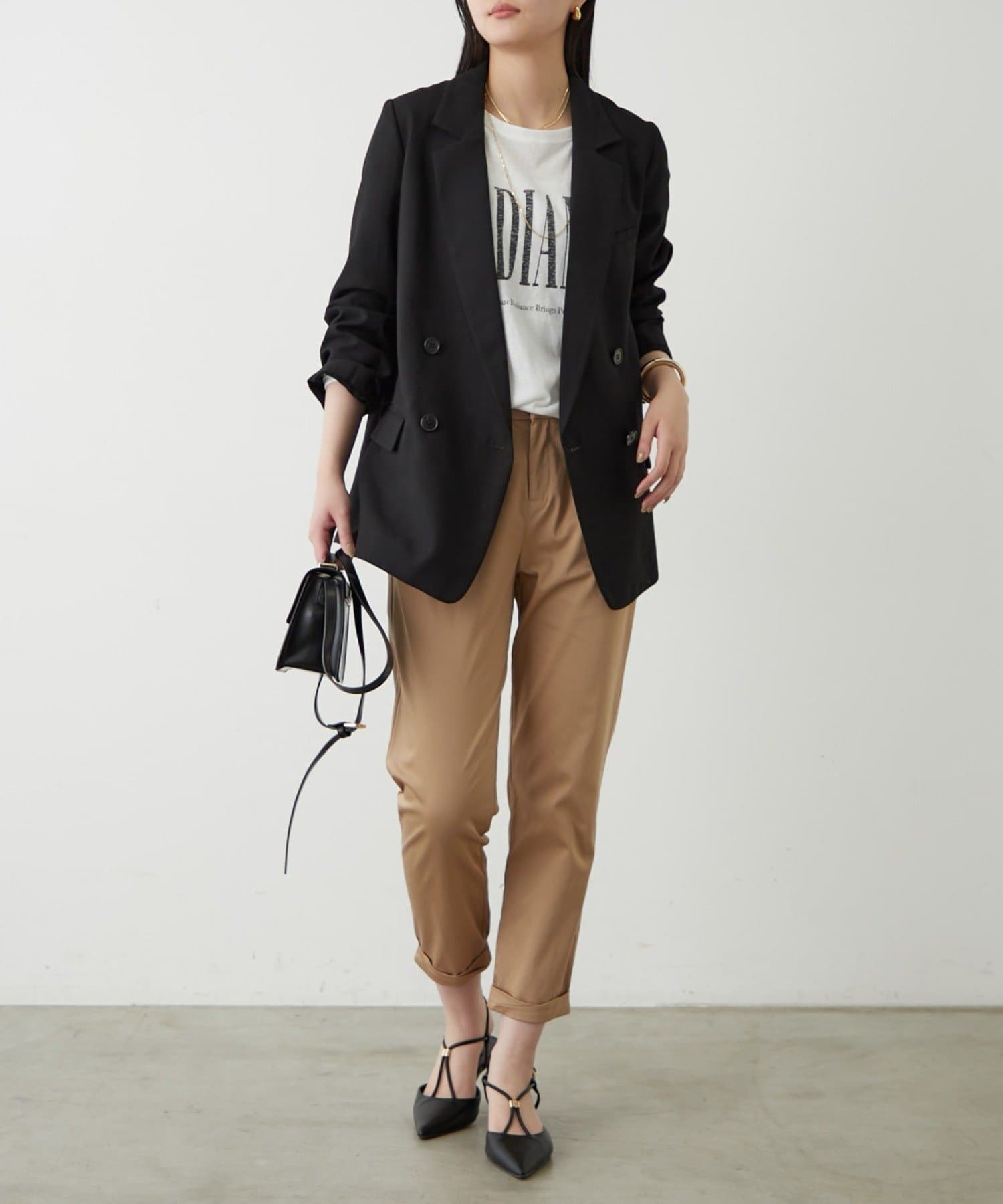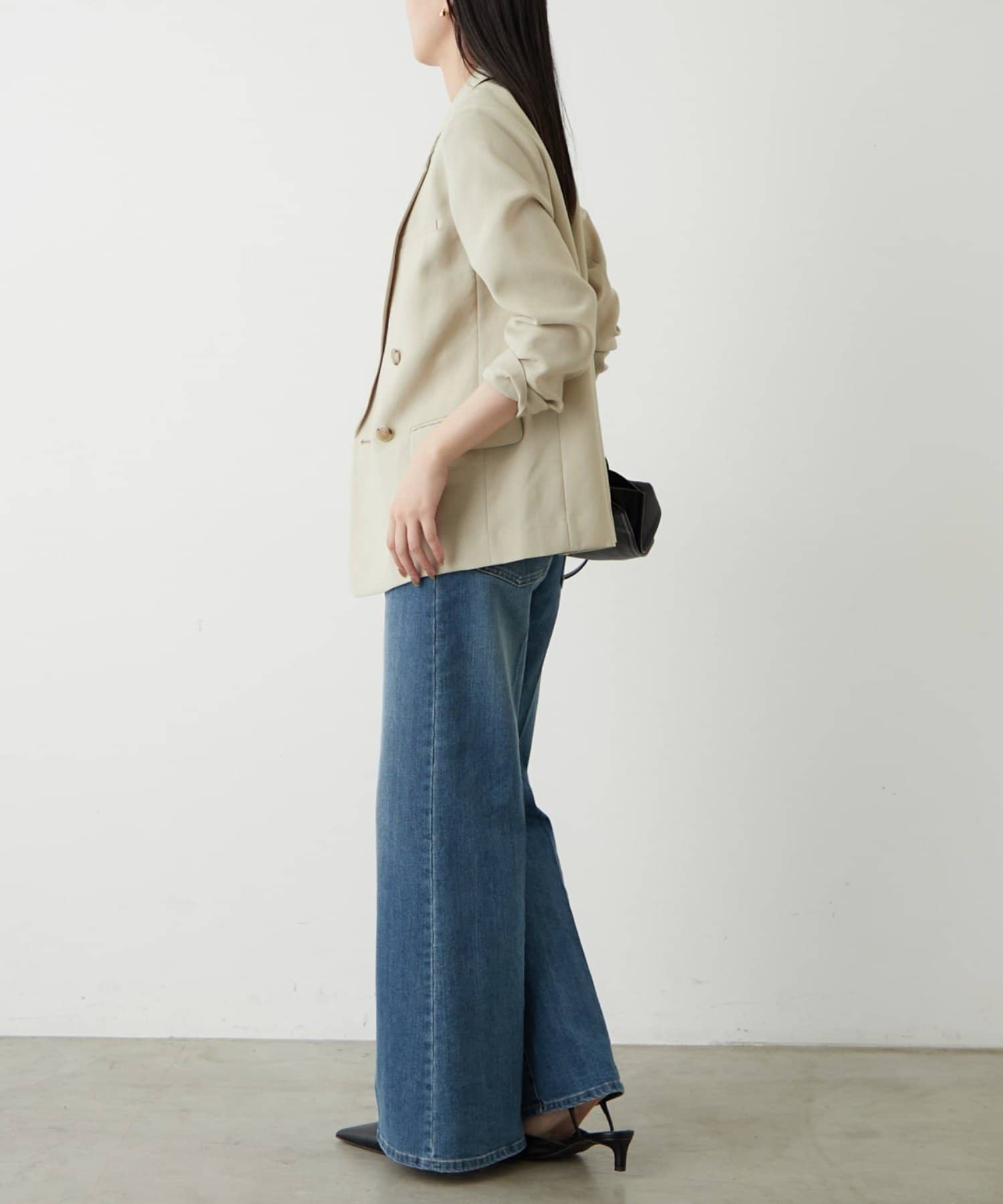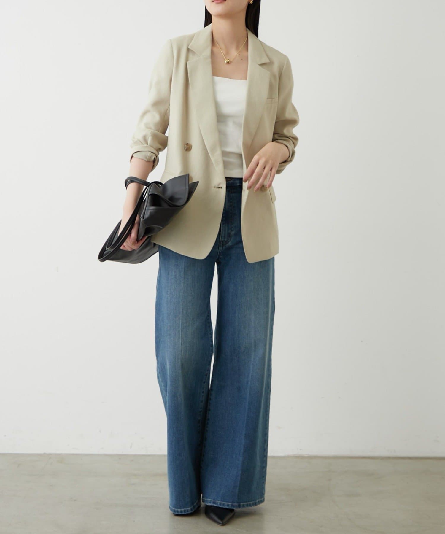 ややゆったりとしたシルエットで、カッチリしすぎず、程よい抜け感を演出します。