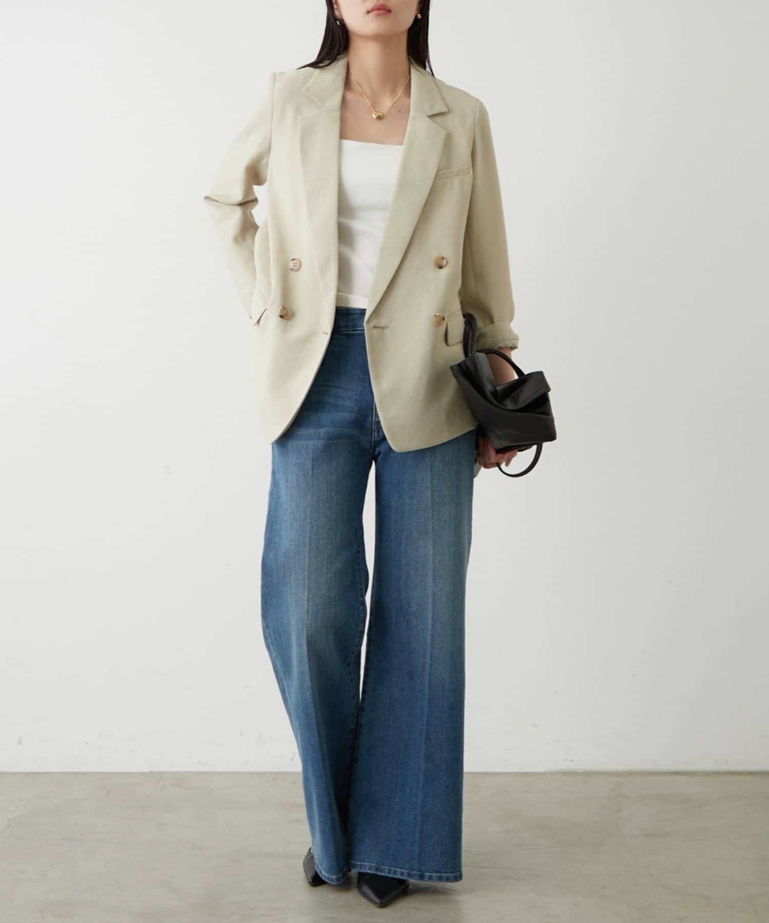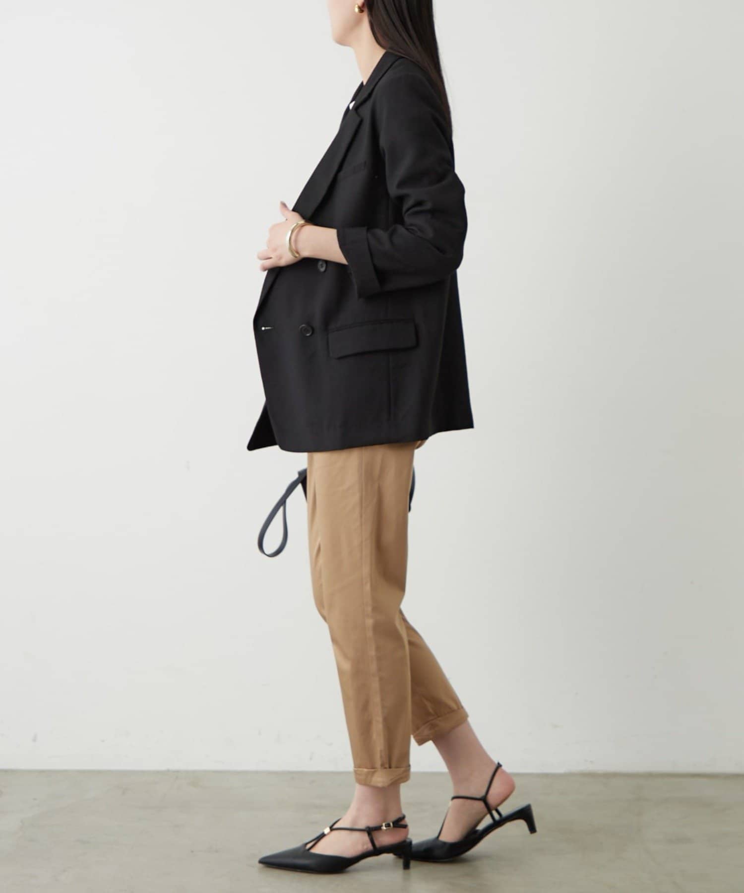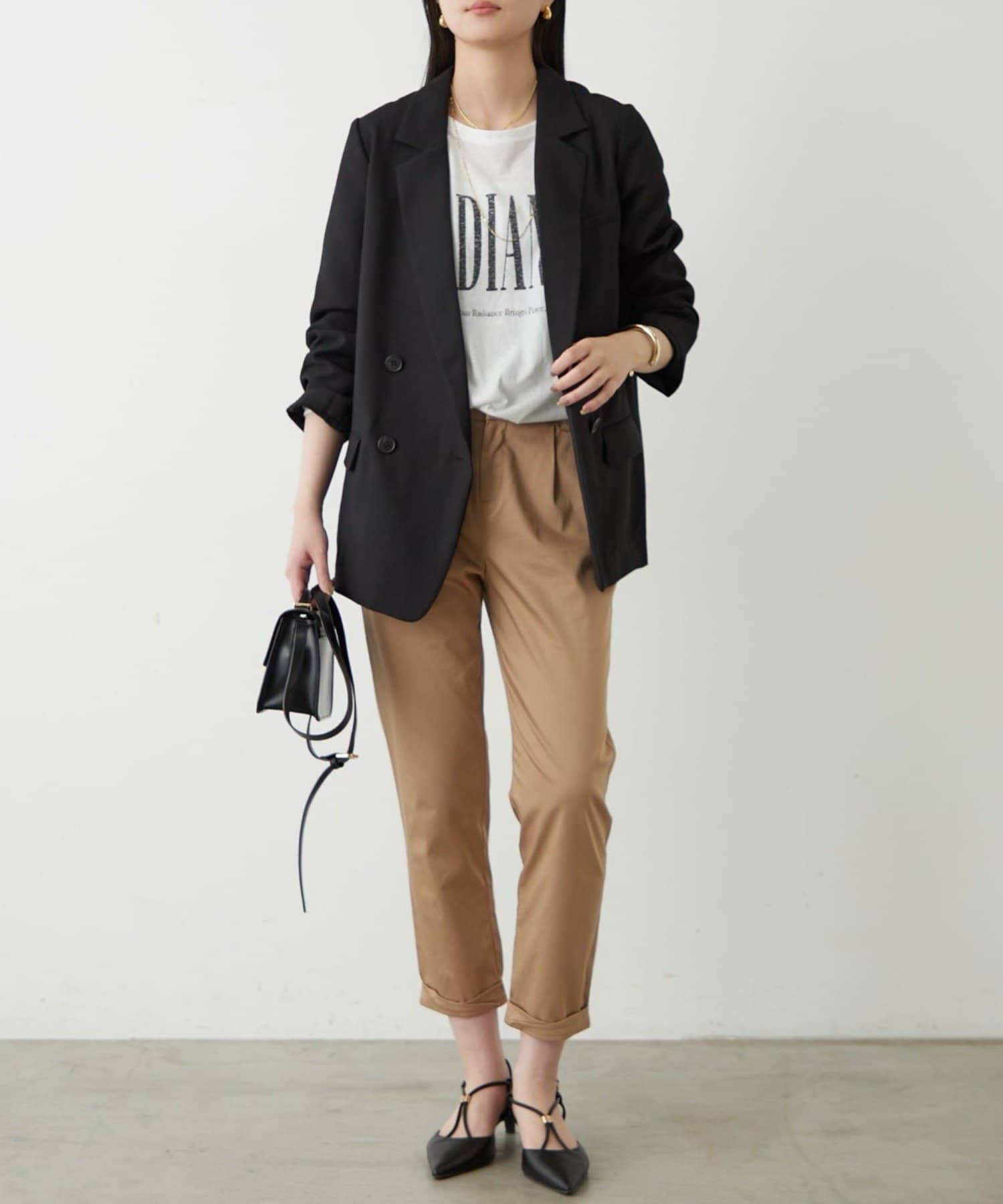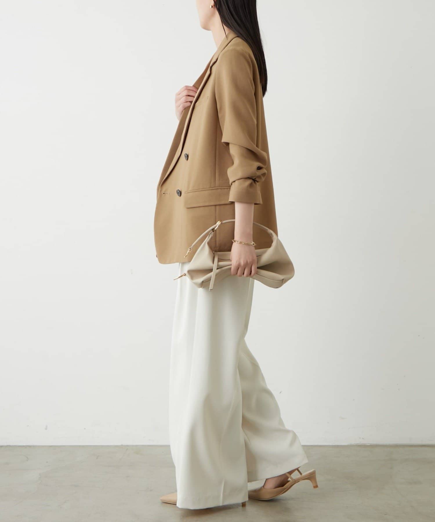 ややゆったりとしたシルエットで、カッチリしすぎず、程よい抜け感を演出します。
