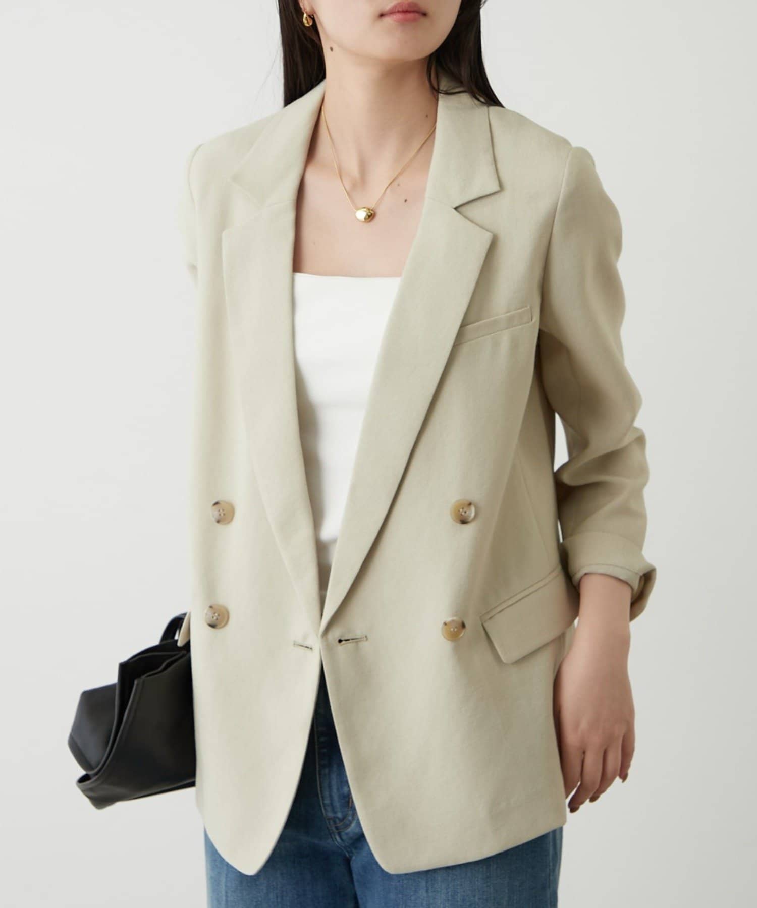 きちんと感のあるダブルブレストのデザイン。
