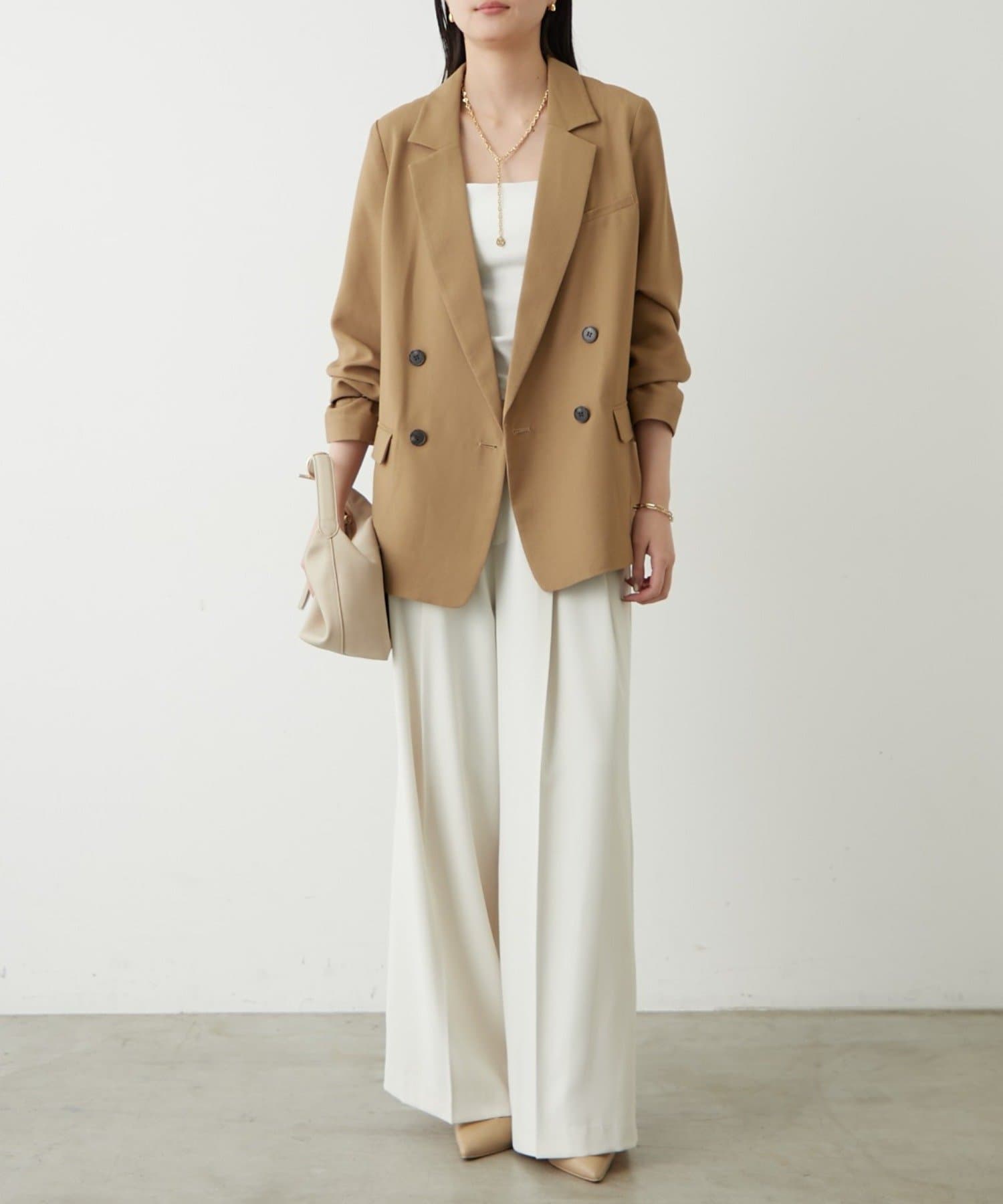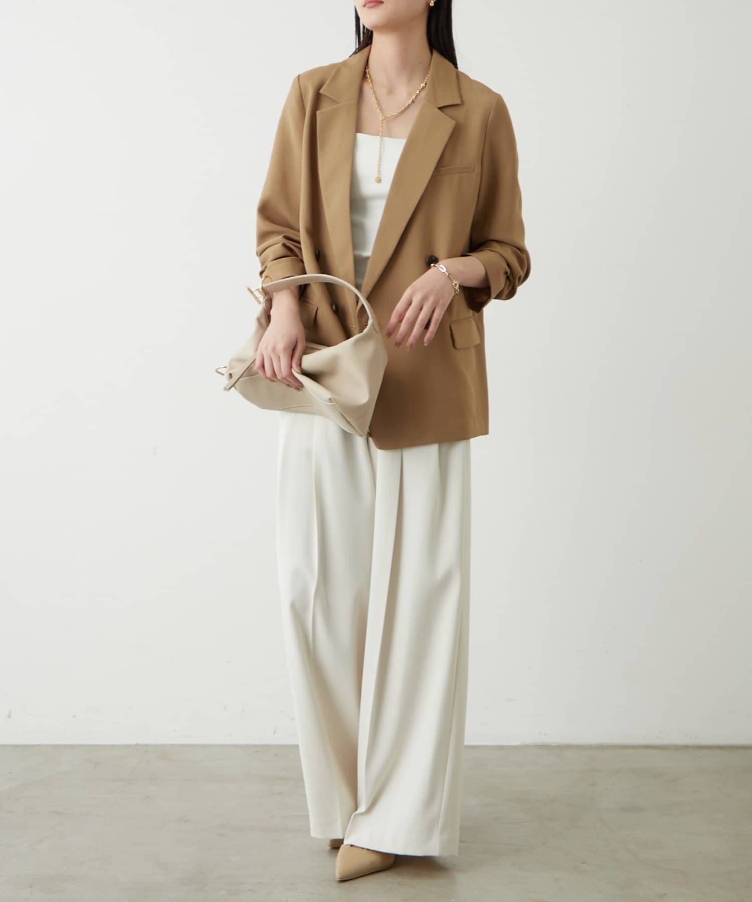 Tシャツやタンクトップの上からさらっと羽織ったり、ブラウスやニットと合わせてオフィススタイルにも。