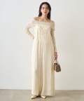 繊細なレースと上品な光沢を放つサテン生地が、女性らしさを引き立てるキャミオールインワン。