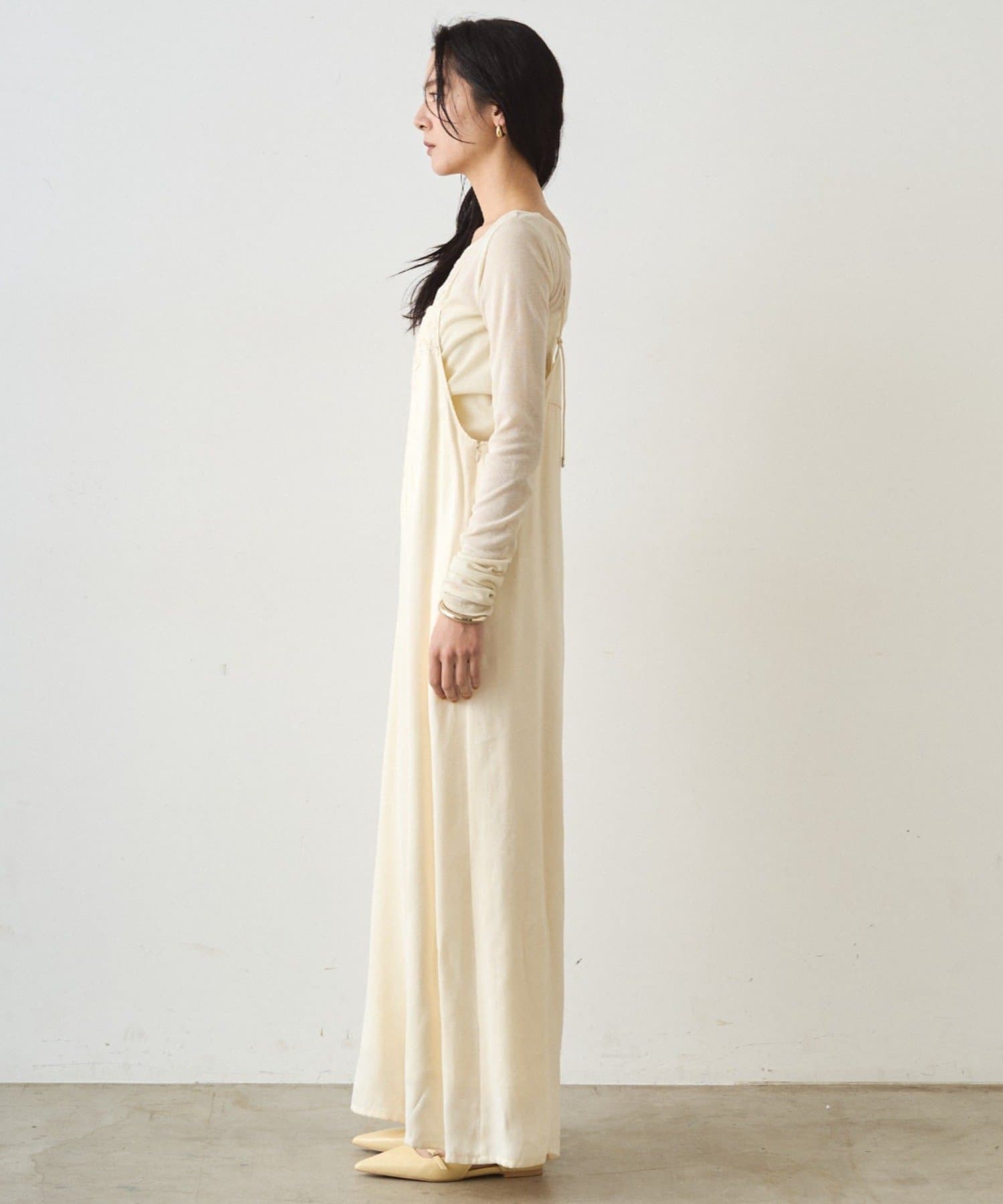 Tシャツやカットソーと合わせてカジュアルに着こなしたり、ブラウスやニットをレイヤードしてフェミニンに着こなしたりと、インナー次第で様々な表情を楽しめるのがポイント。