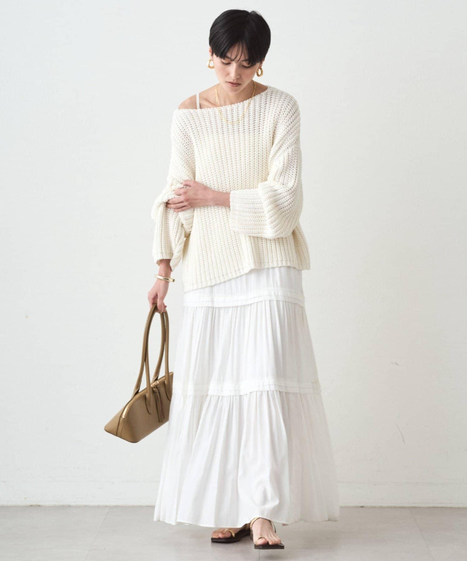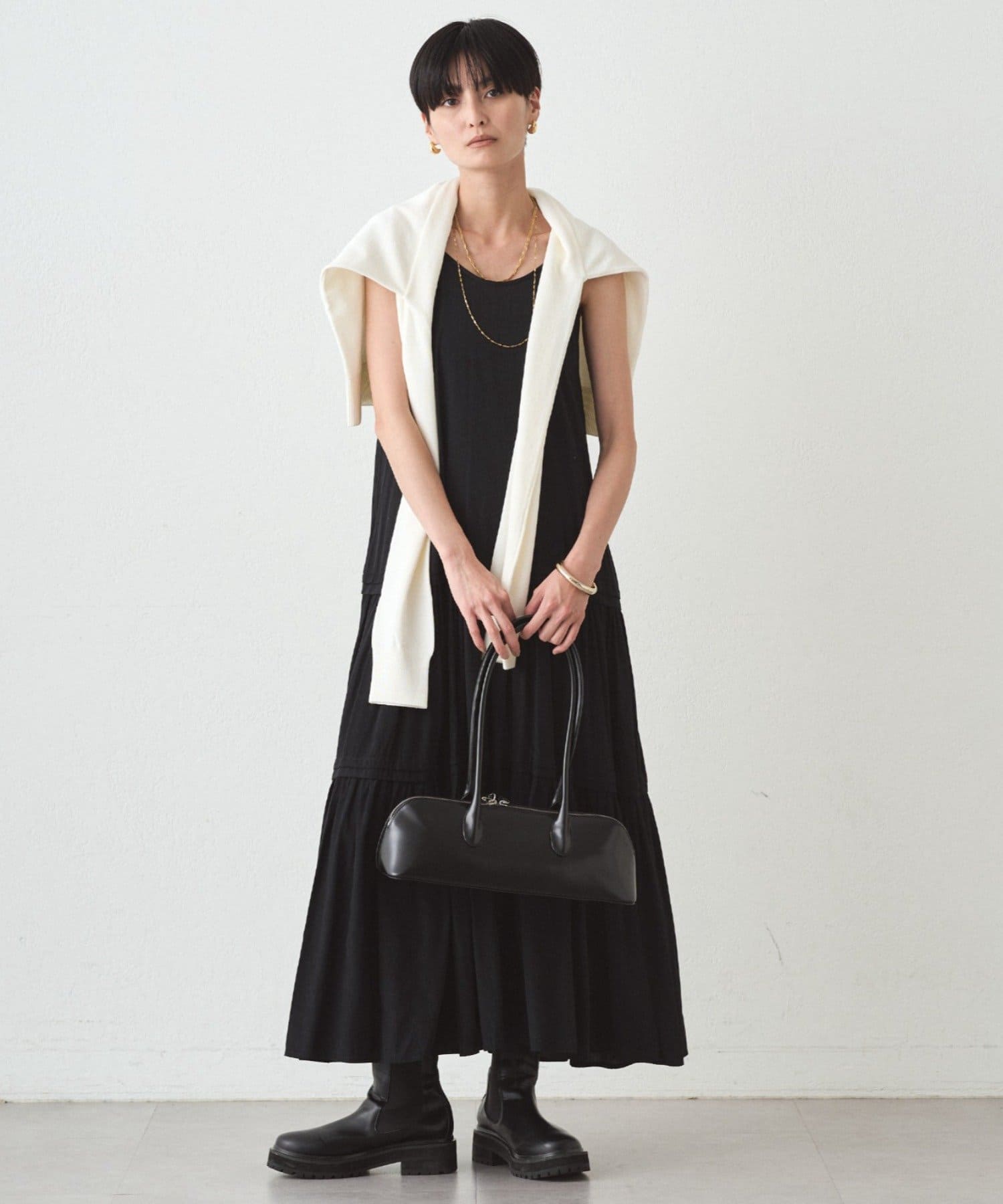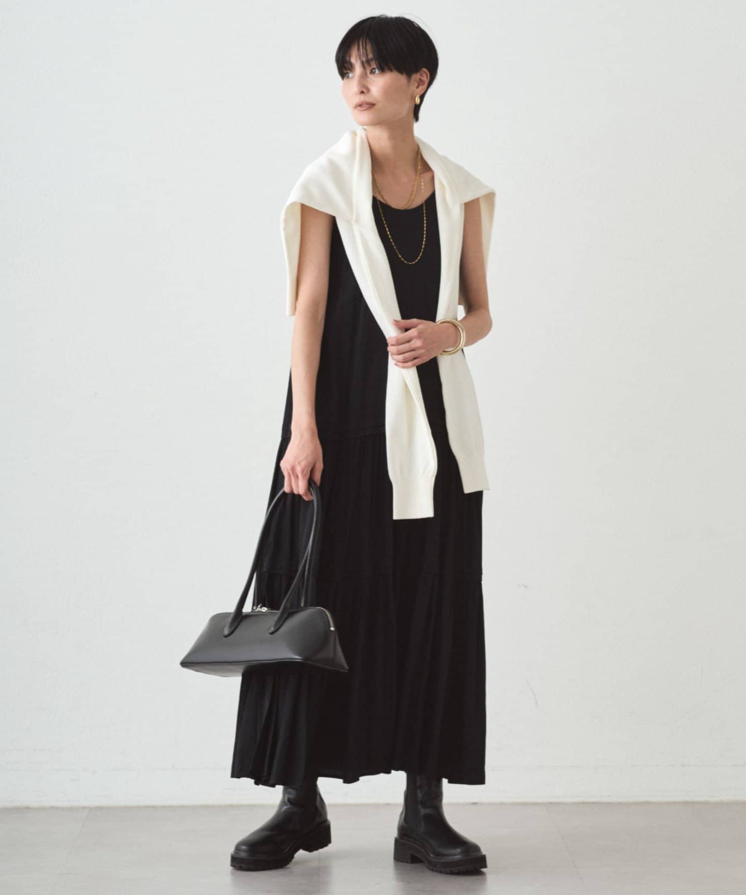 ワンピースの上にオーバーサイズのニットを重ねたり、FURカシミヤのカーディガンを合わせたりと通年着まわしをお楽しみいただけます。