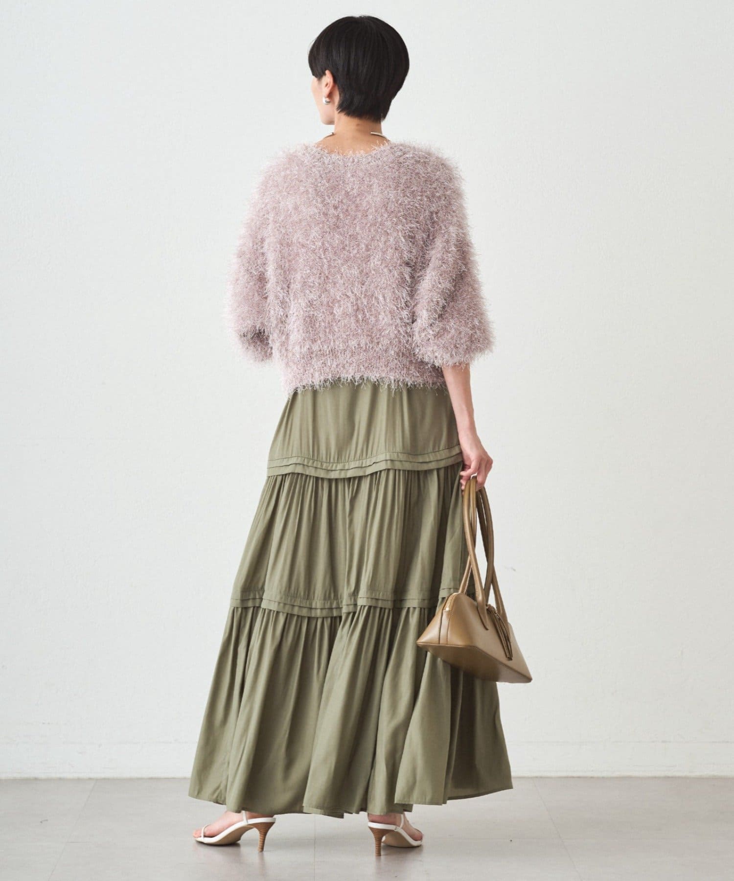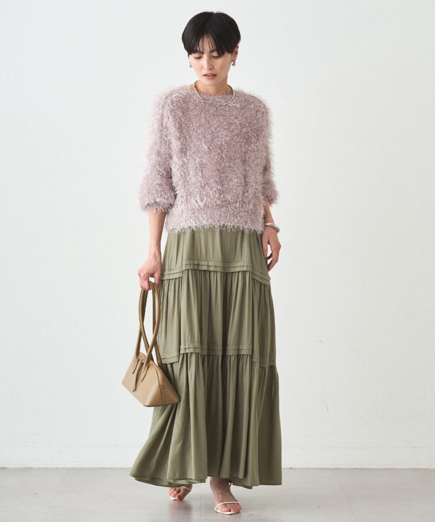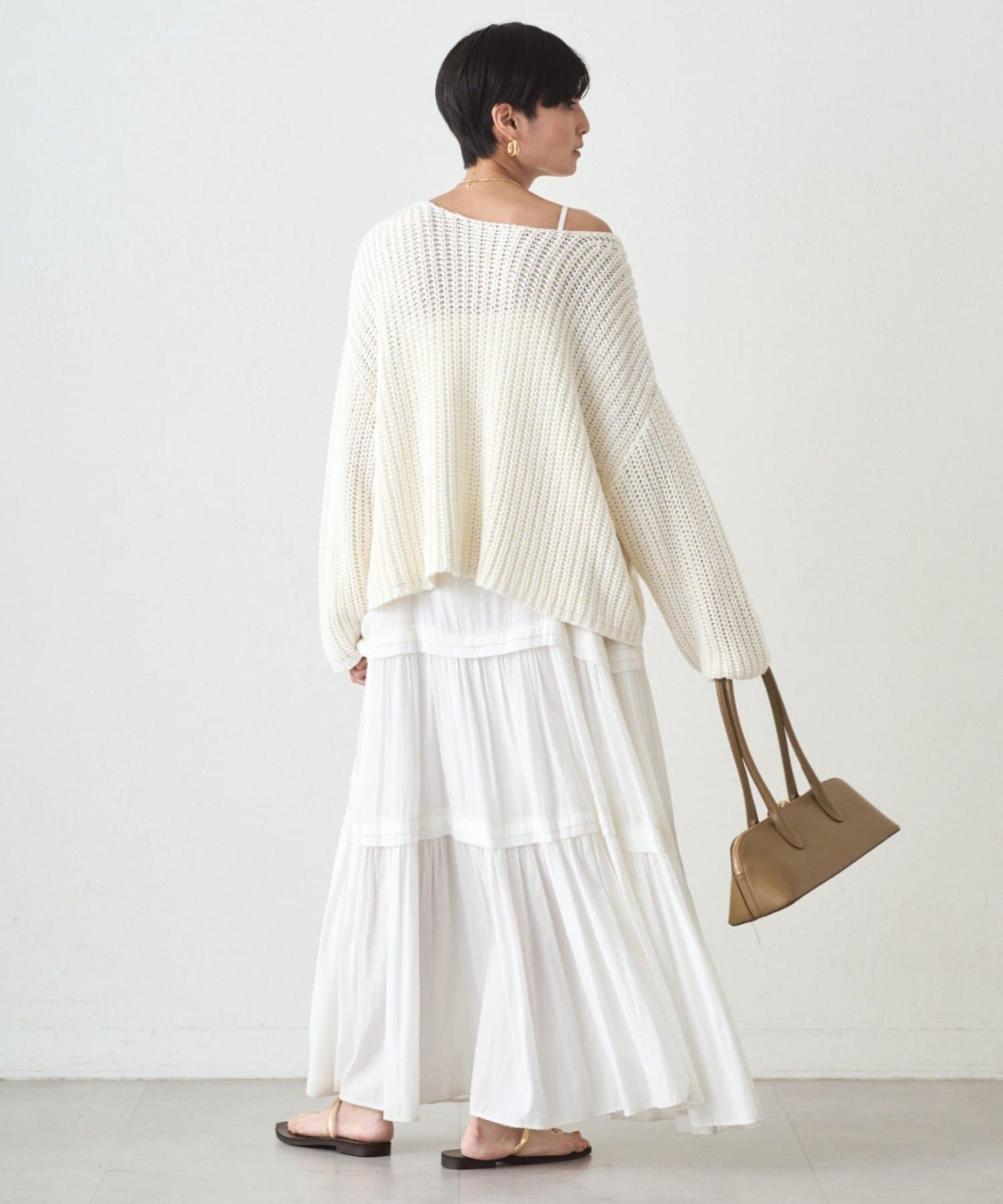 ワンピースの上にオーバーサイズのニットを重ねたり、FURカシミヤのカーディガンを合わせたりと通年着まわしをお楽しみいただけます。