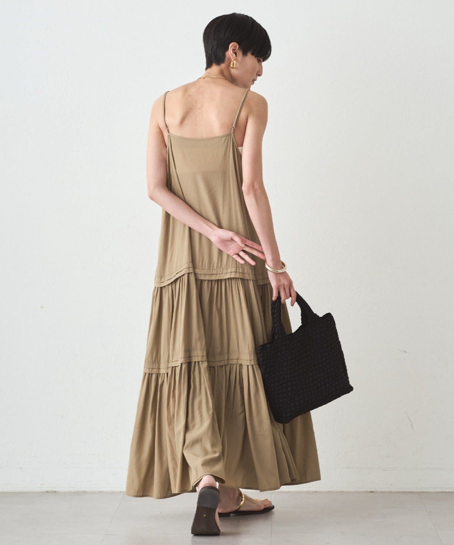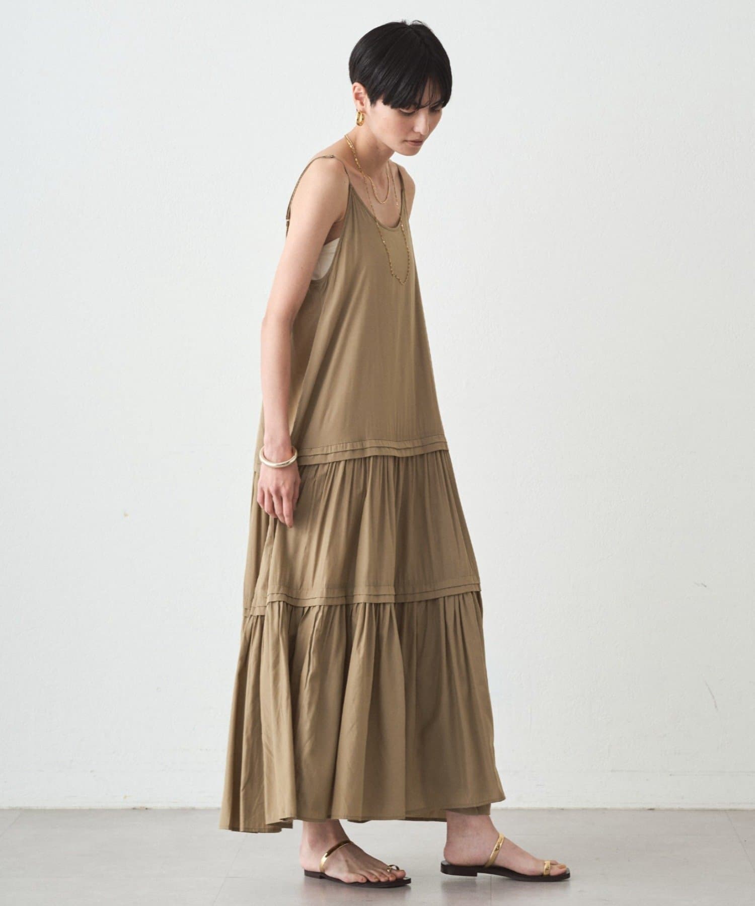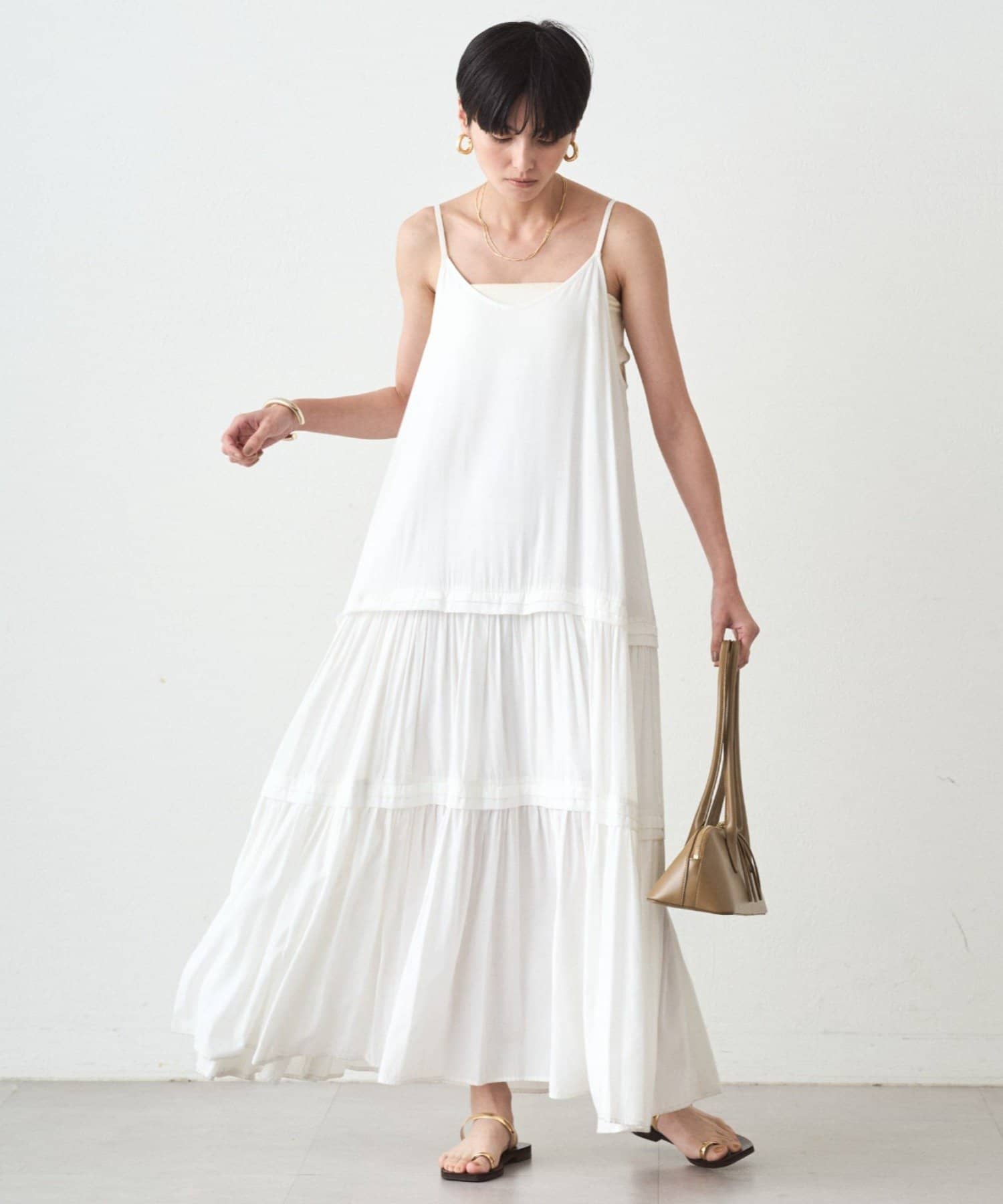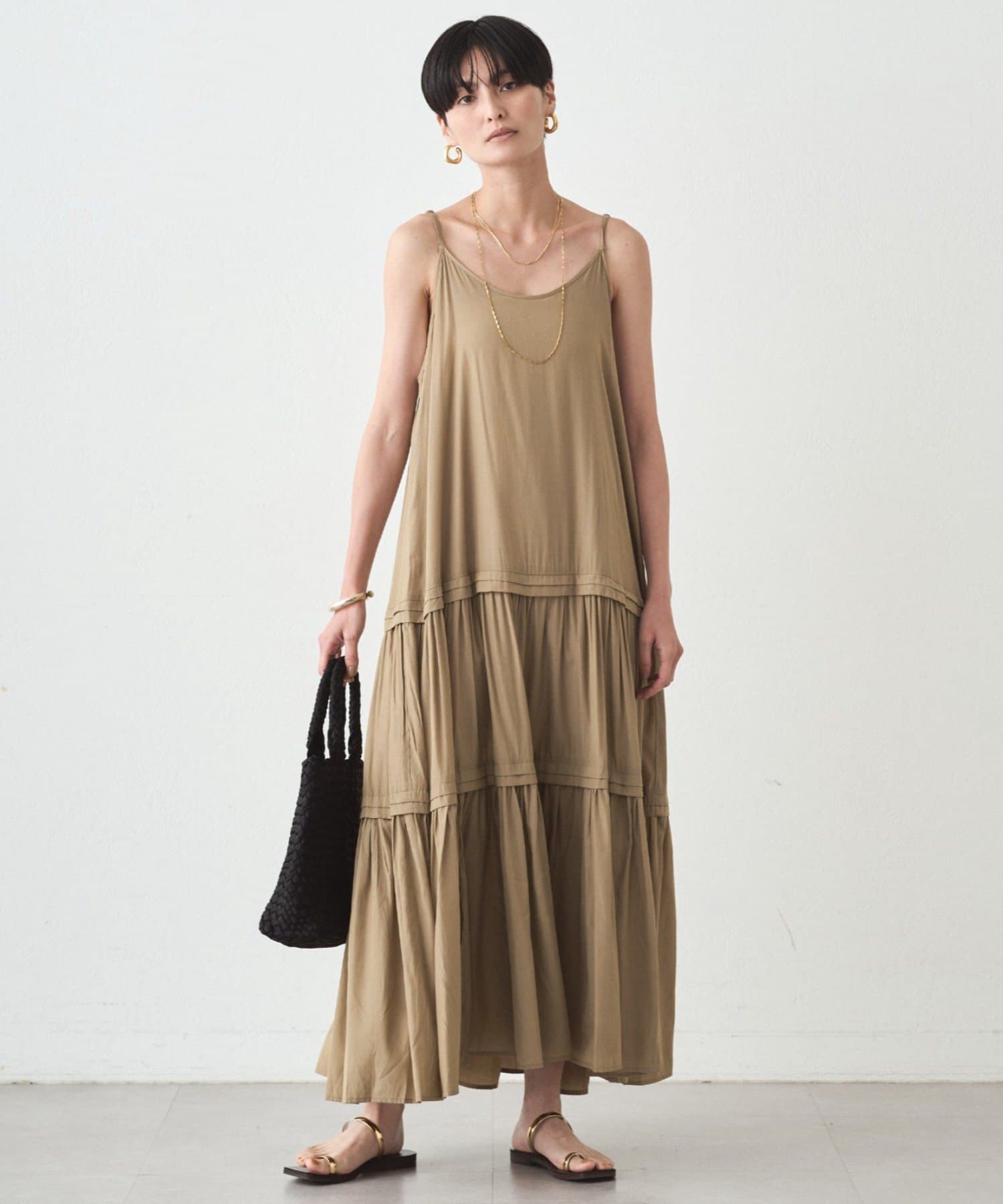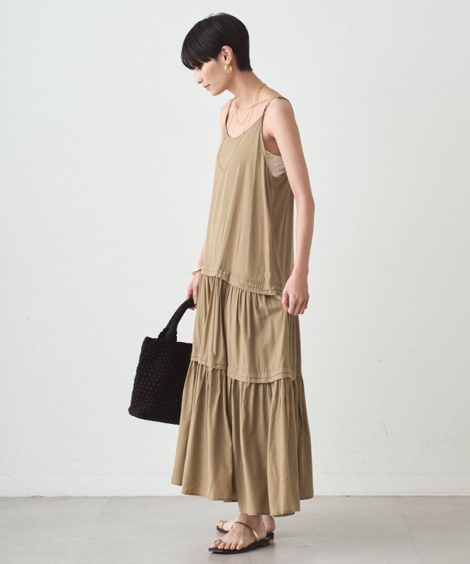 裾に向かってナチュラルな揺れ感を楽しめるキャミソールタイプのワンピース。