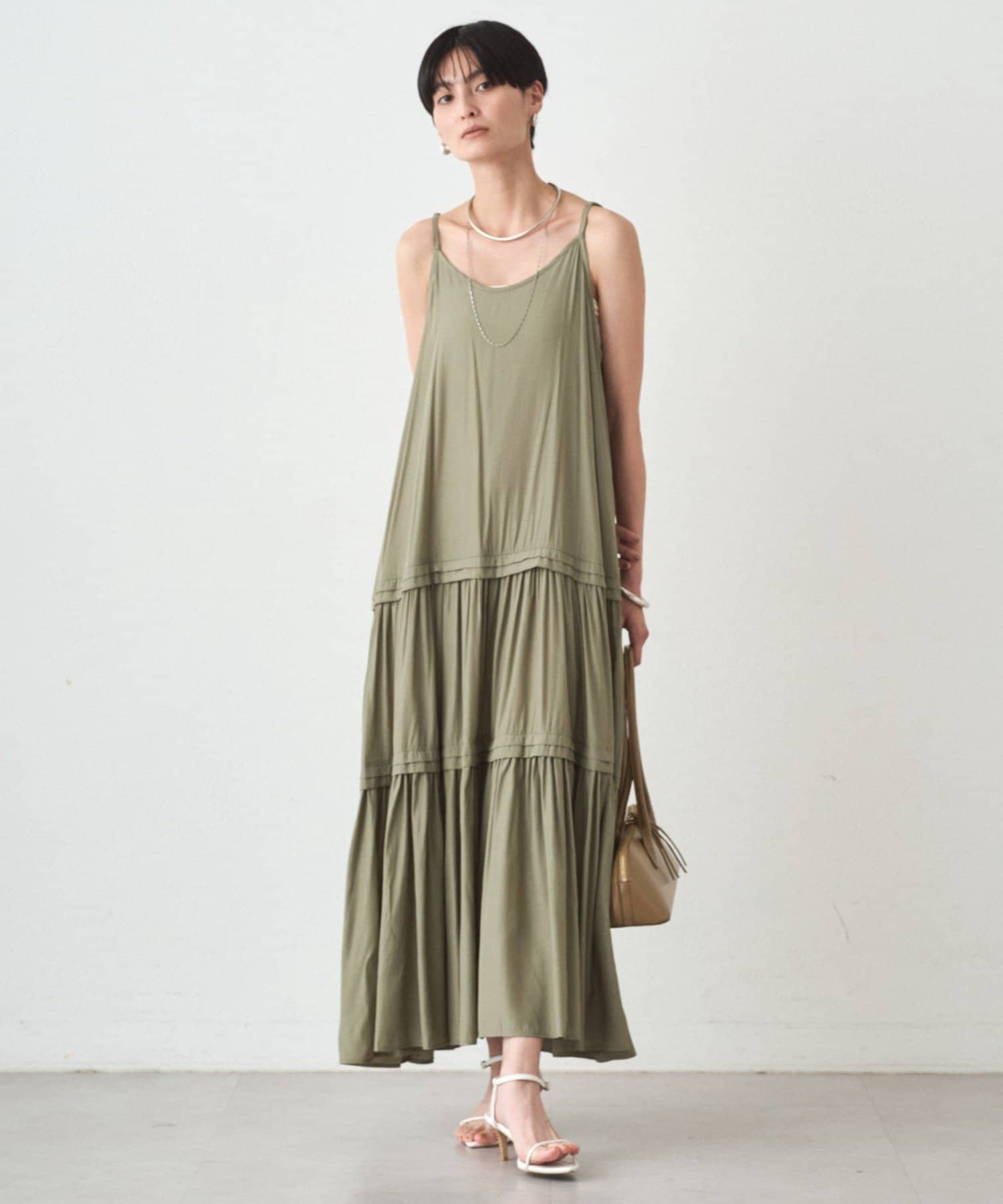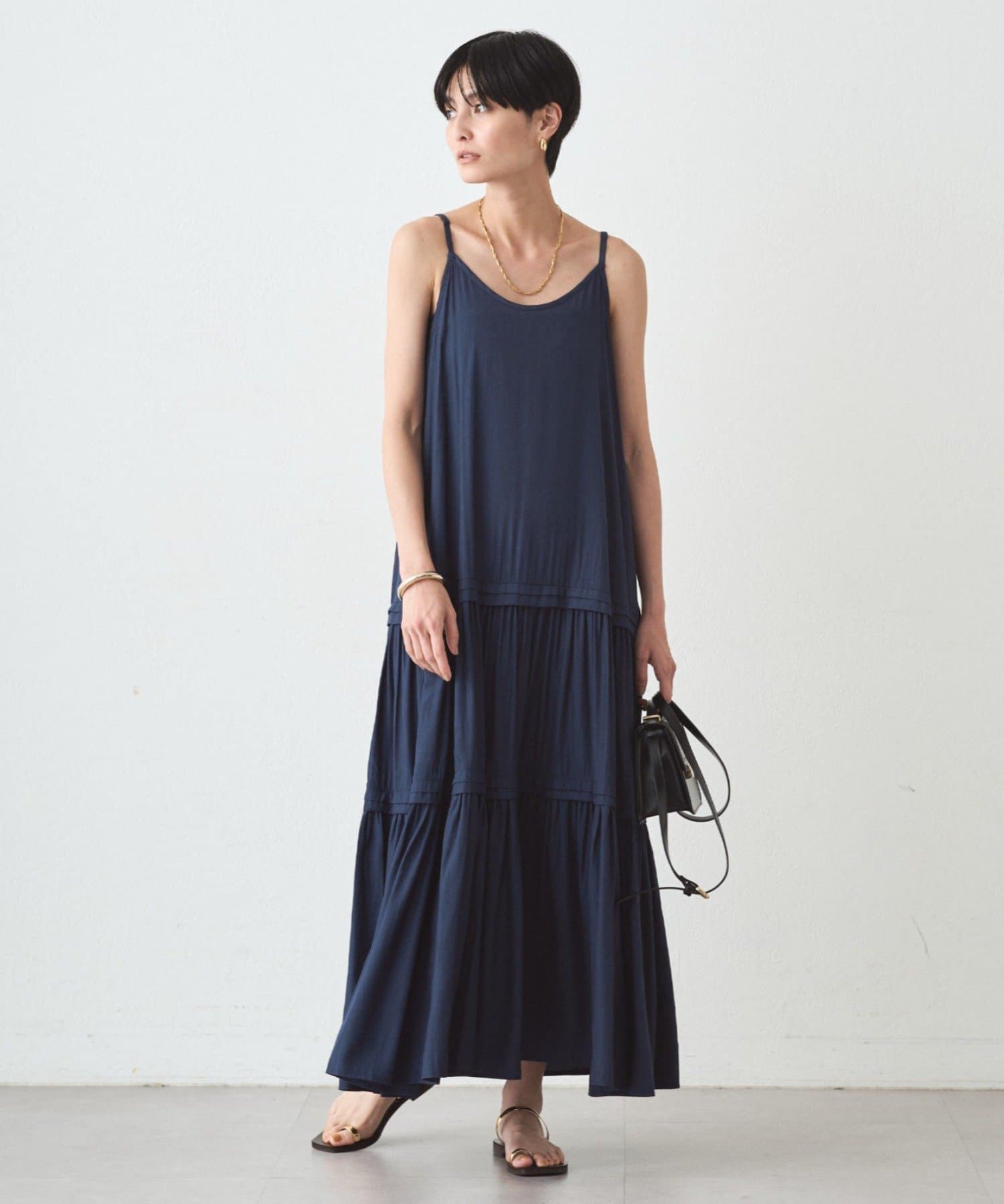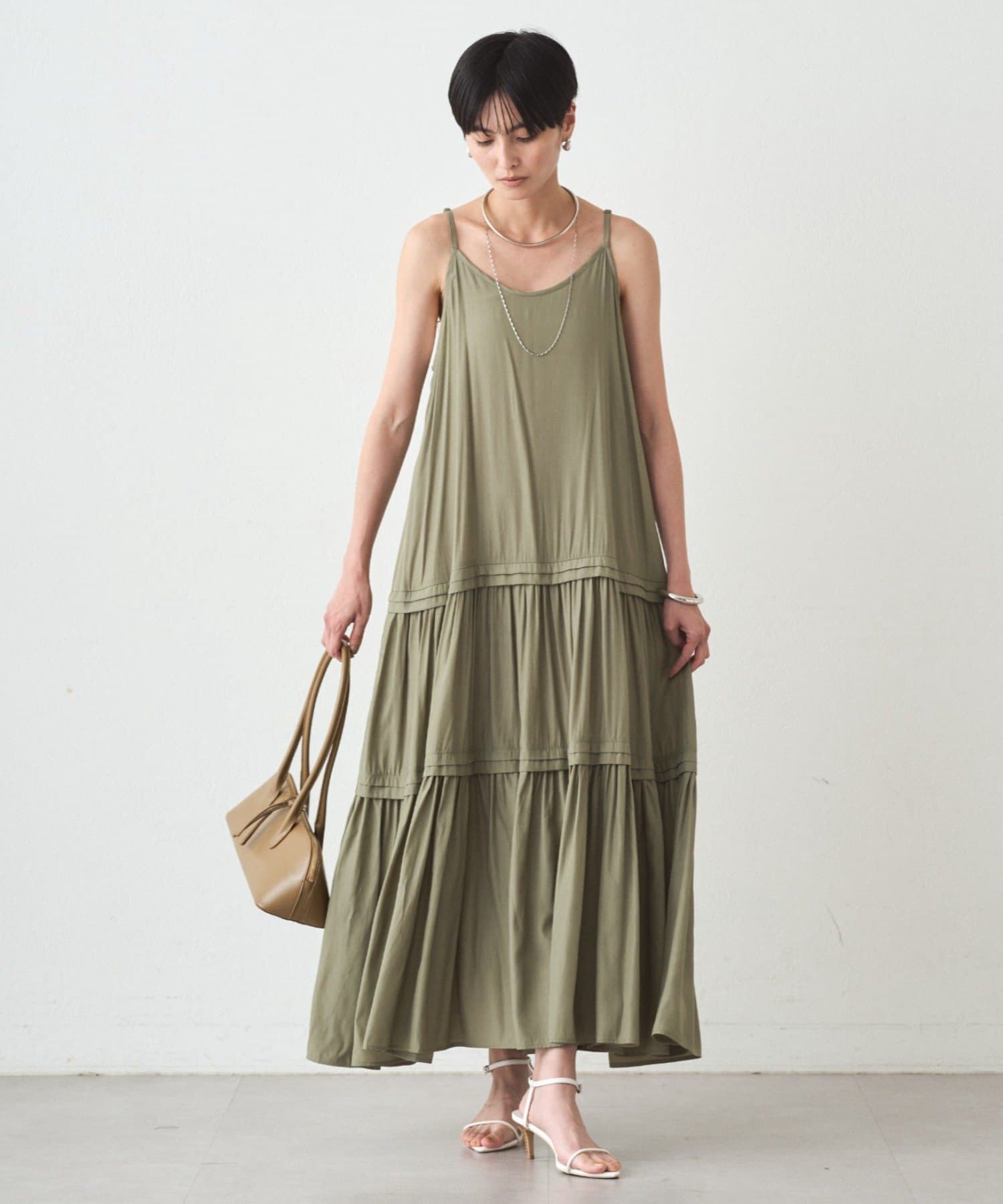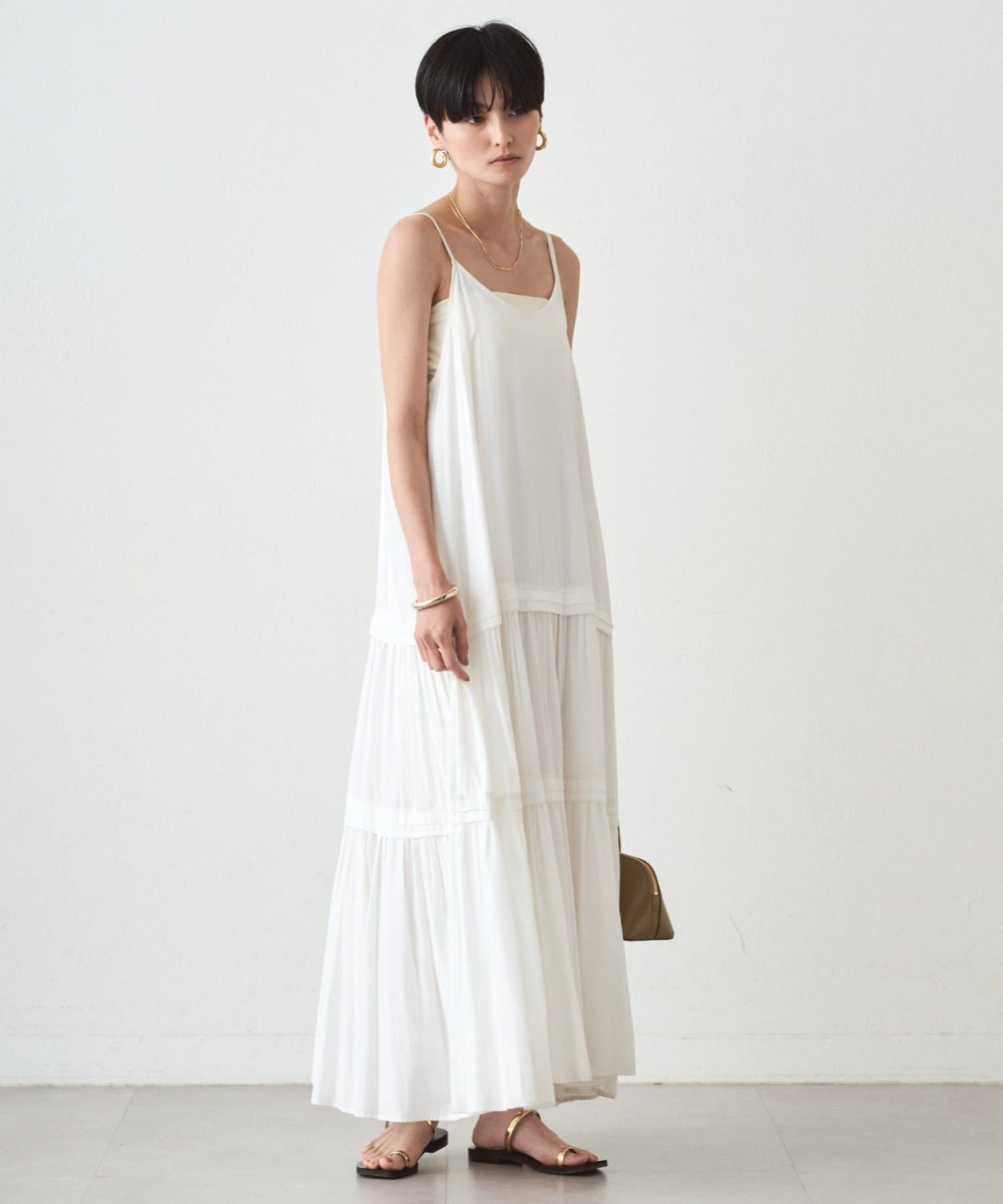裾に向かってナチュラルな揺れ感を楽しめるキャミソールタイプのワンピース。