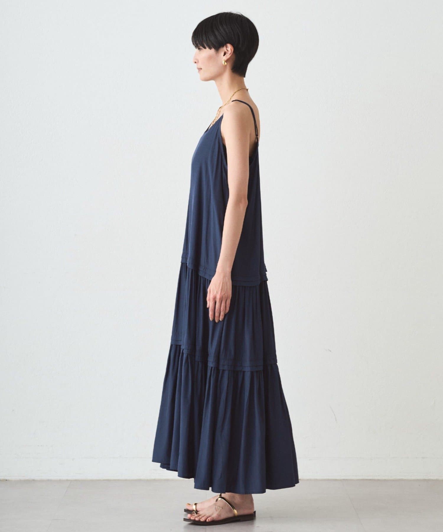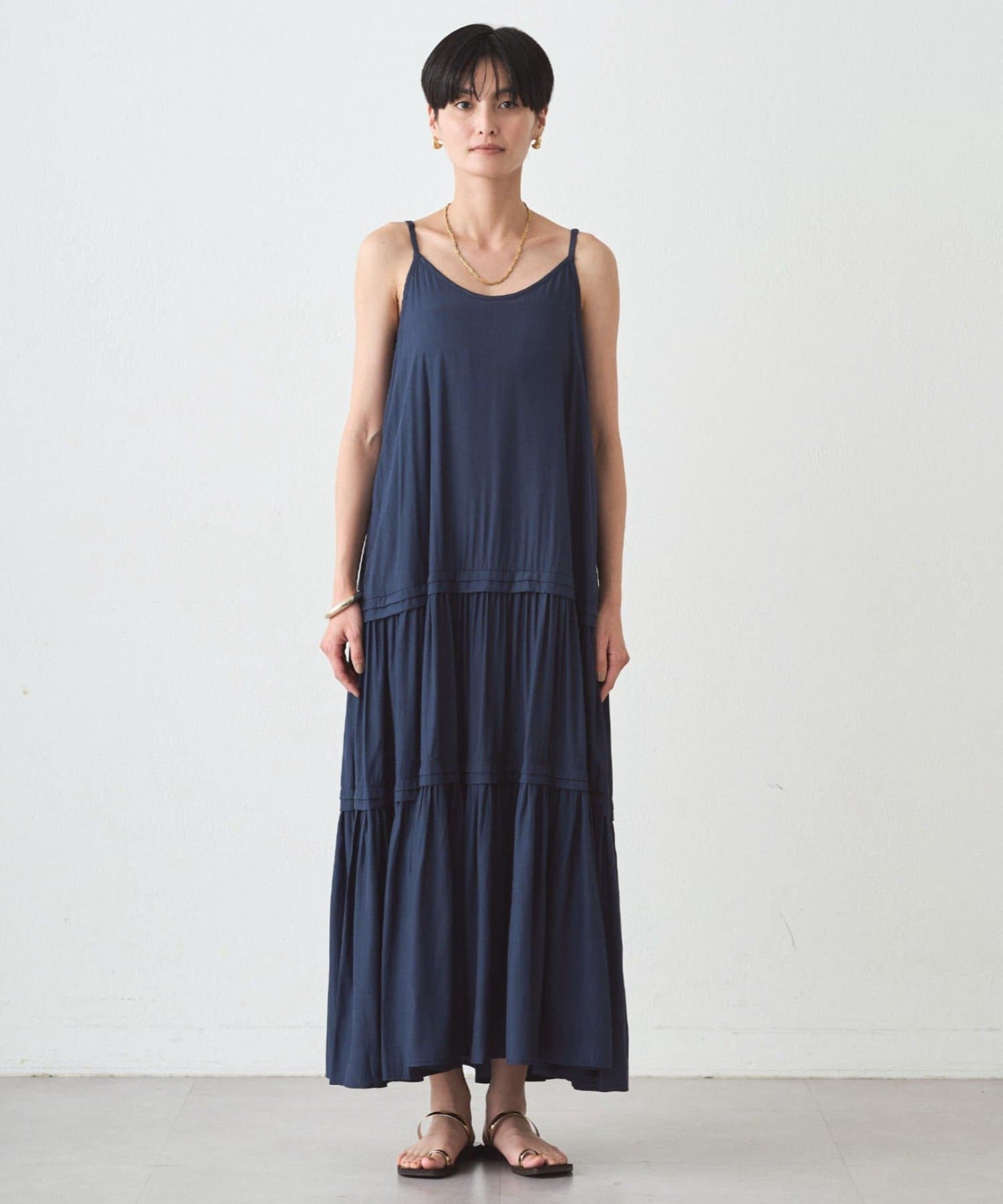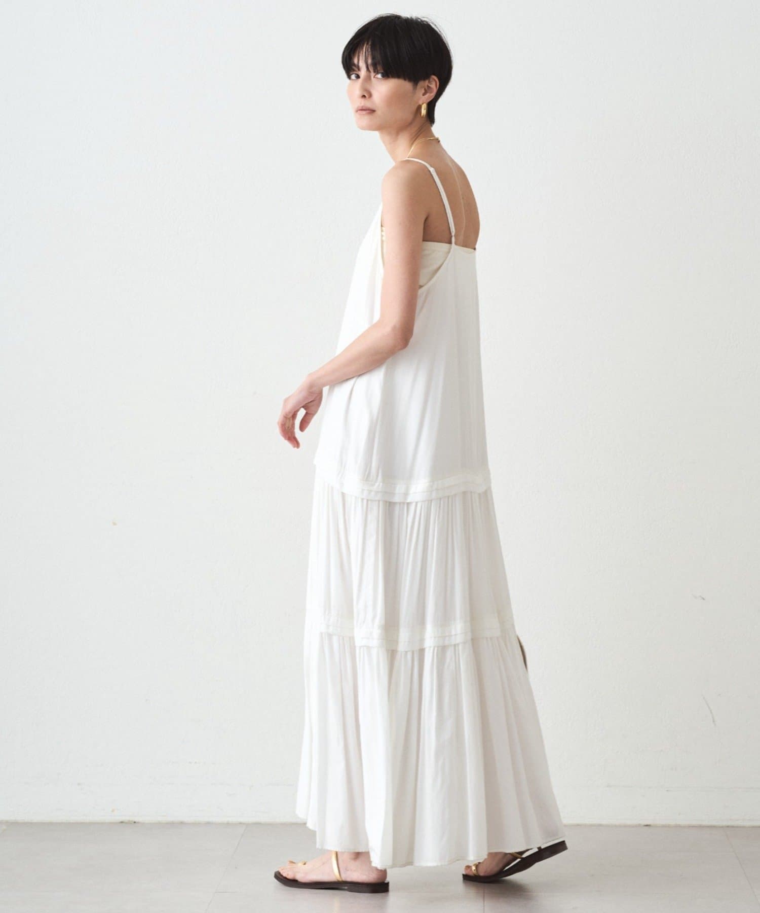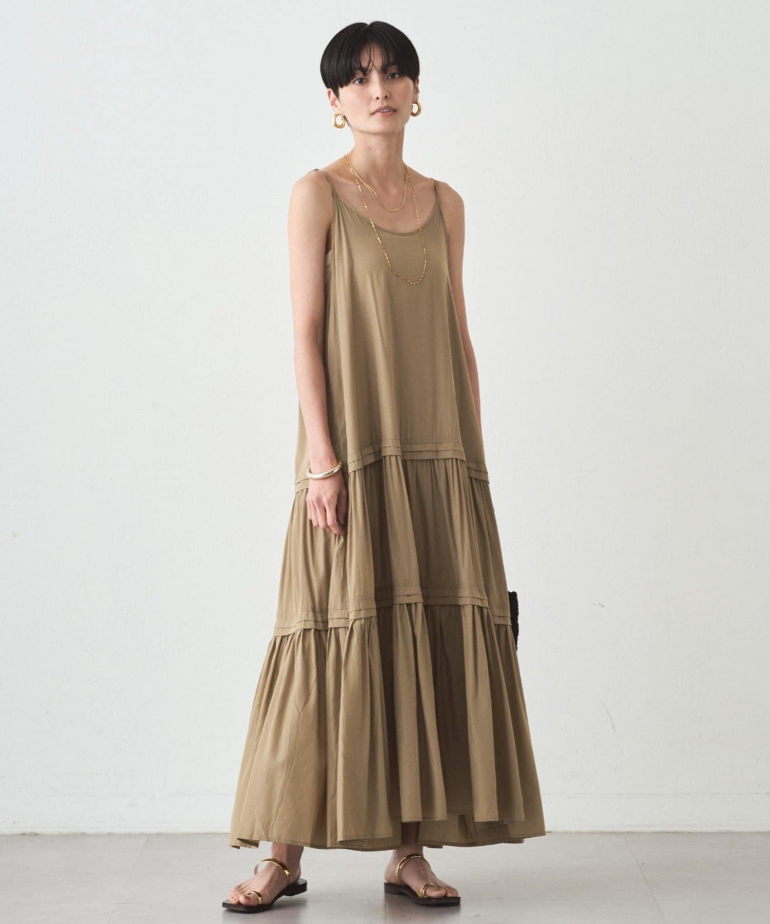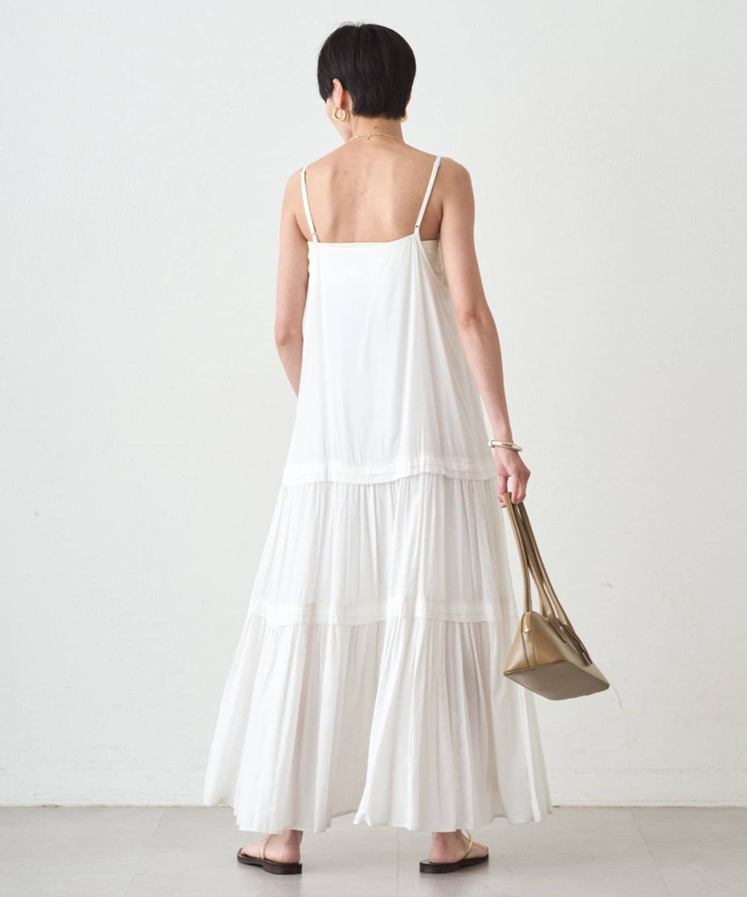 裾に向かってナチュラルな揺れ感を楽しめるキャミソールタイプのワンピース。
