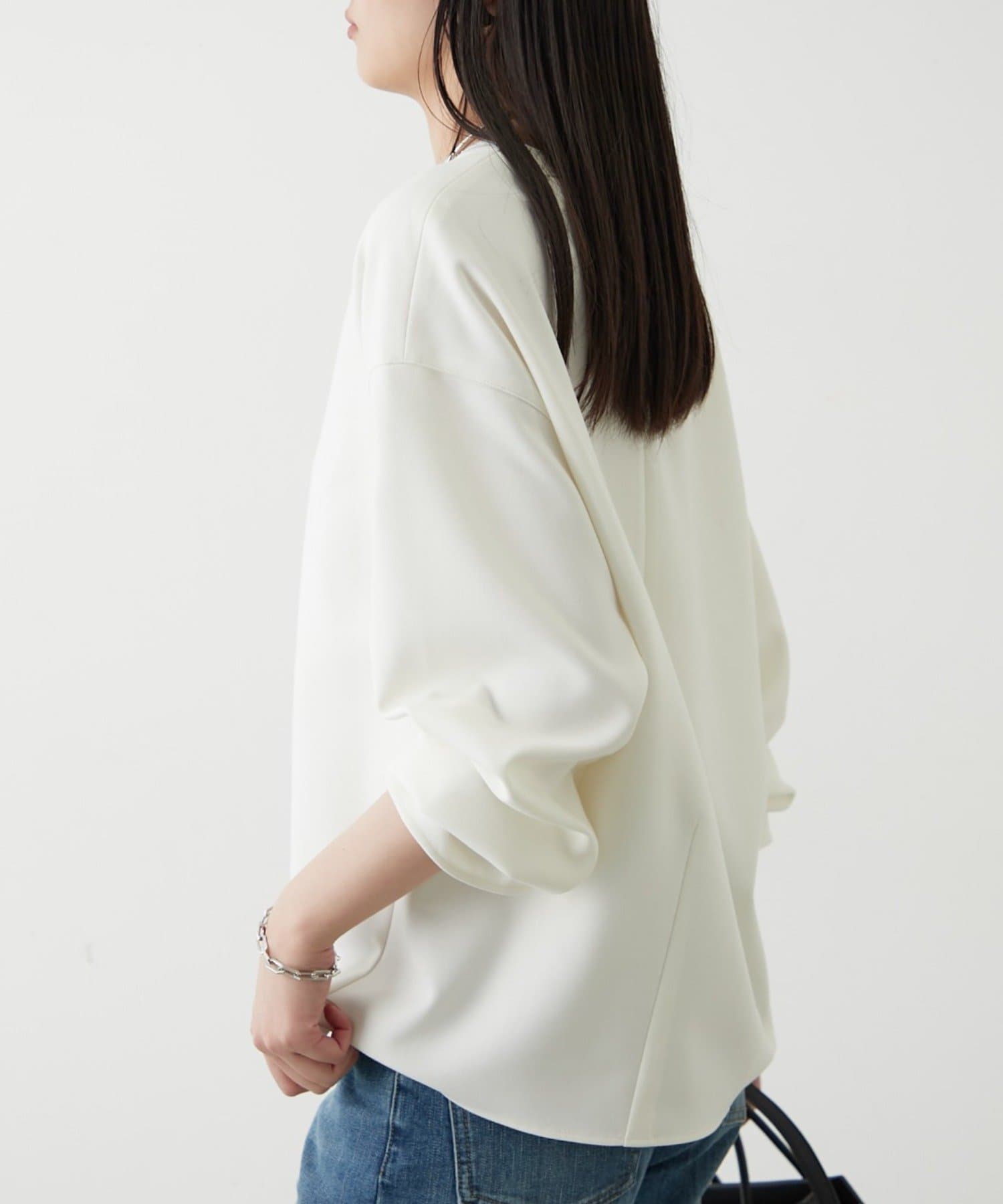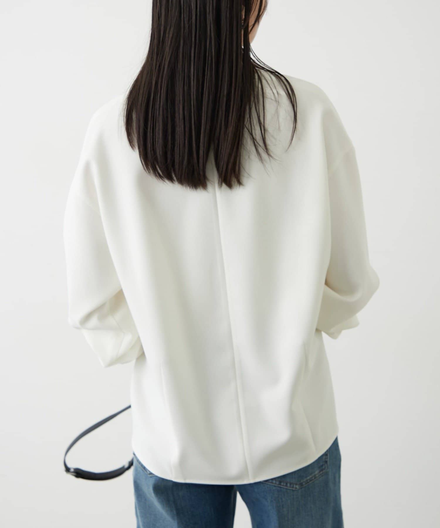 後ろ見頃は丸みを持たせたコクーンシルエットで、立体感のあるバックスタイルに。