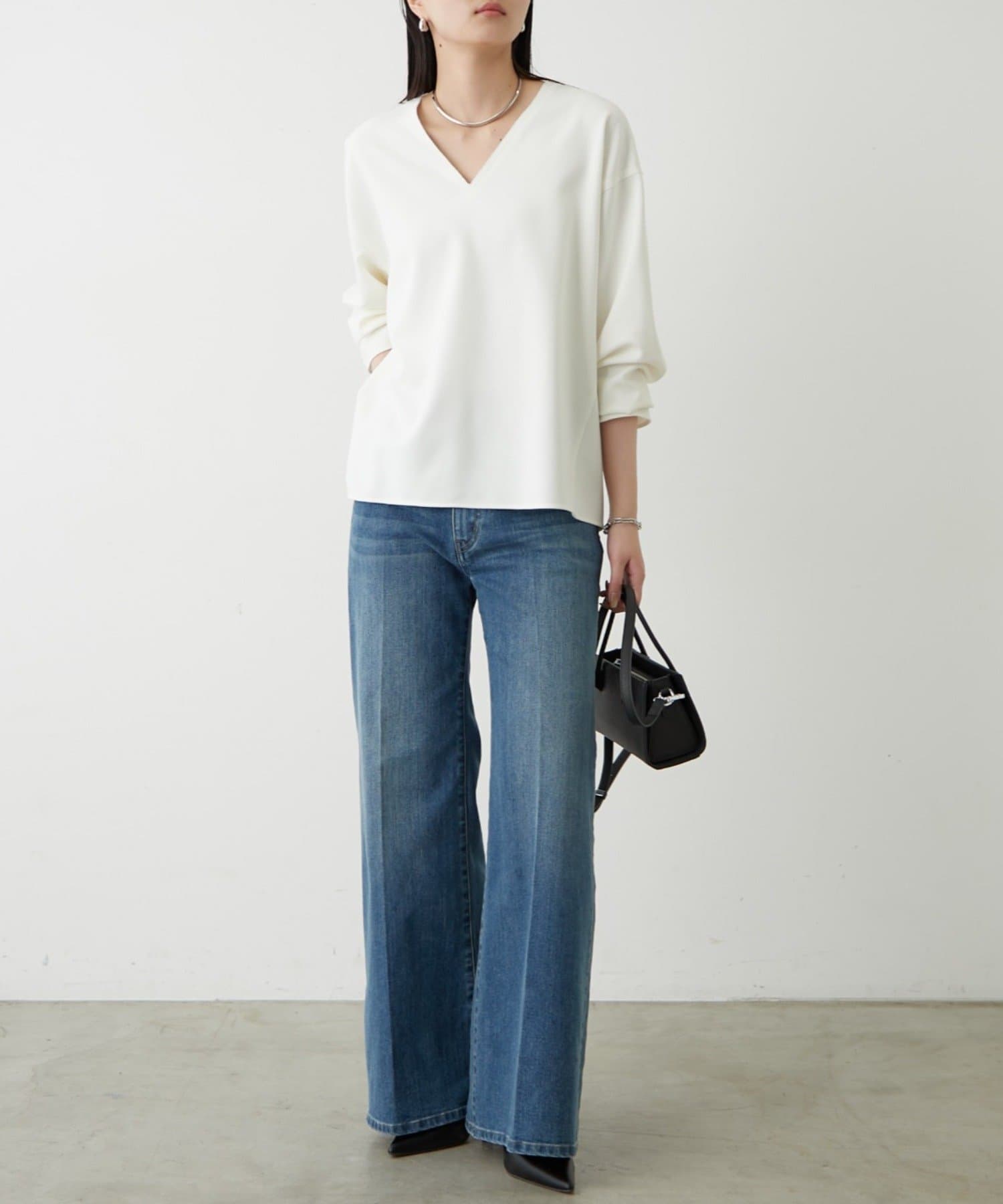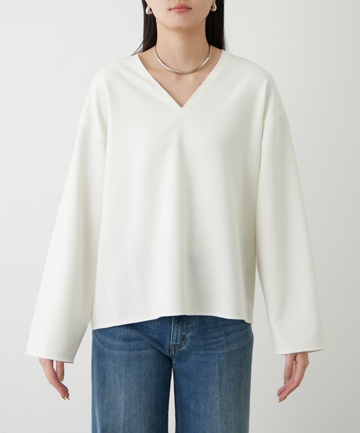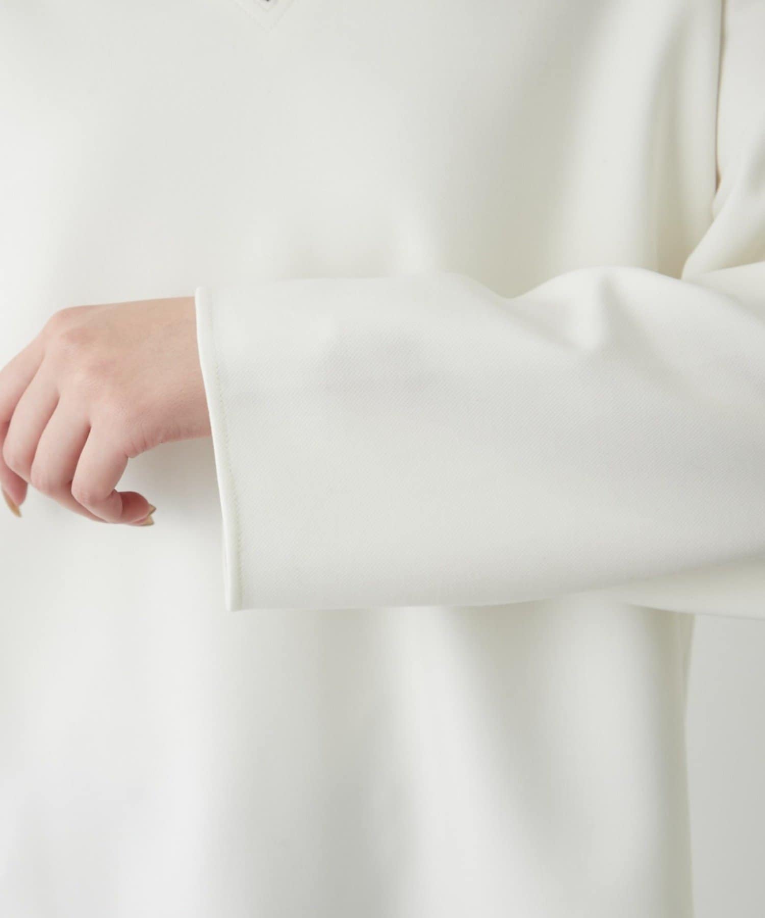 デコルテを美しく見せる、少し深めに設計したVネックデザイン。