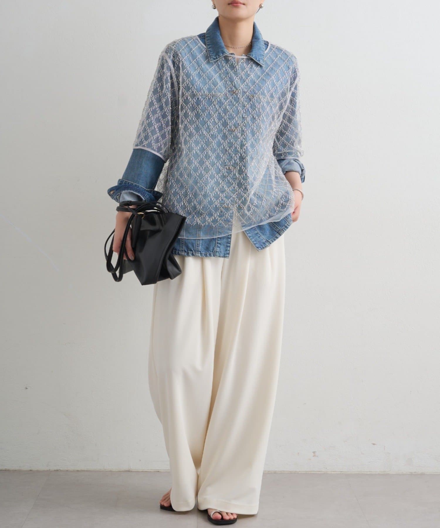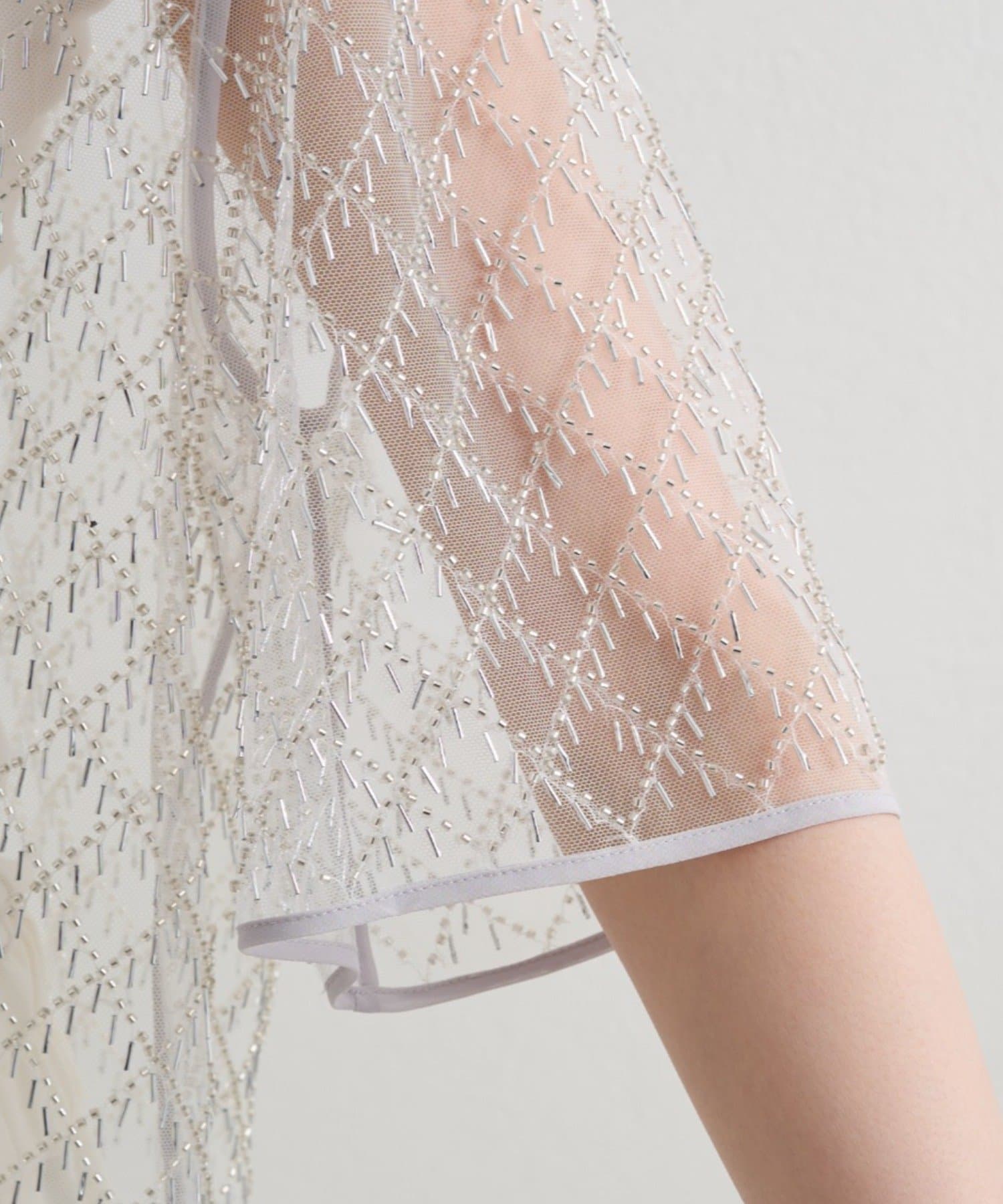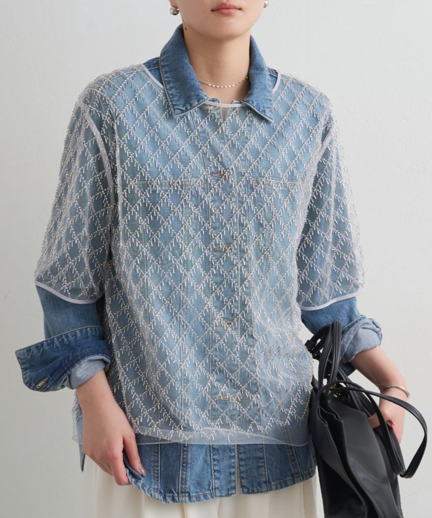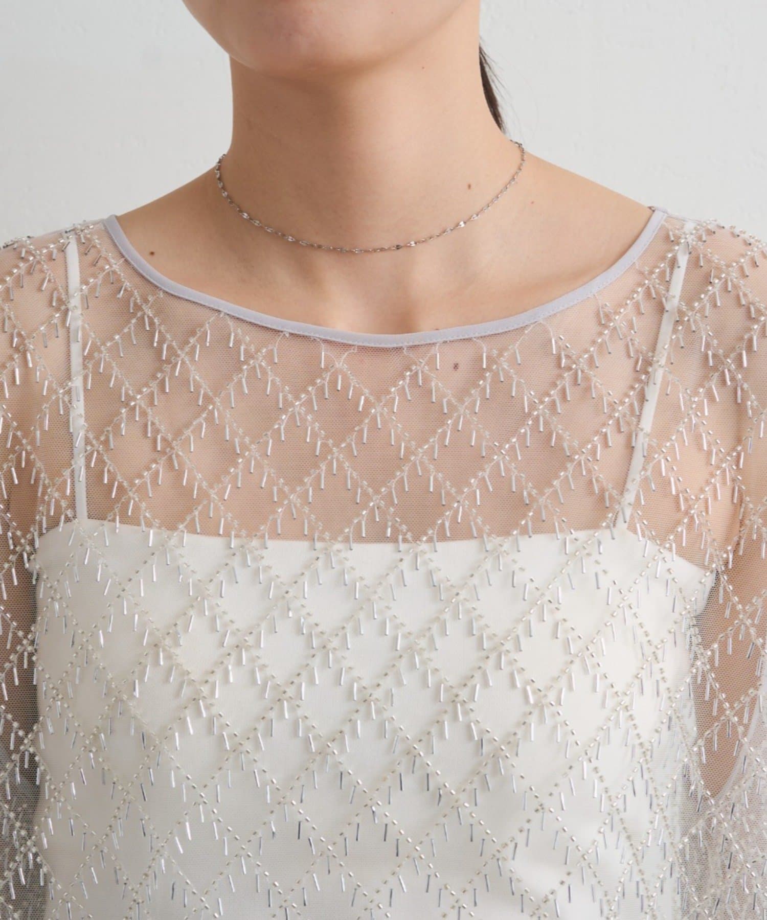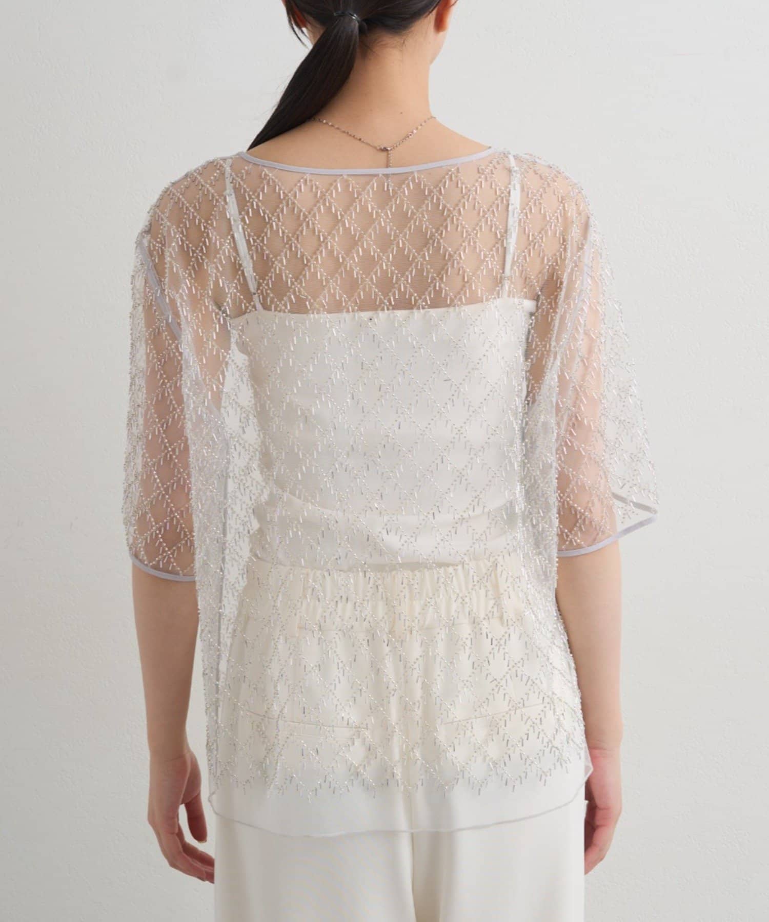 繊細なチュール生地にビーズ刺繍を施した華やかなブラウス。