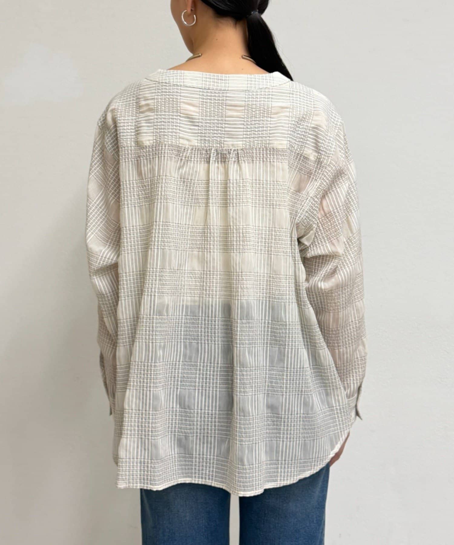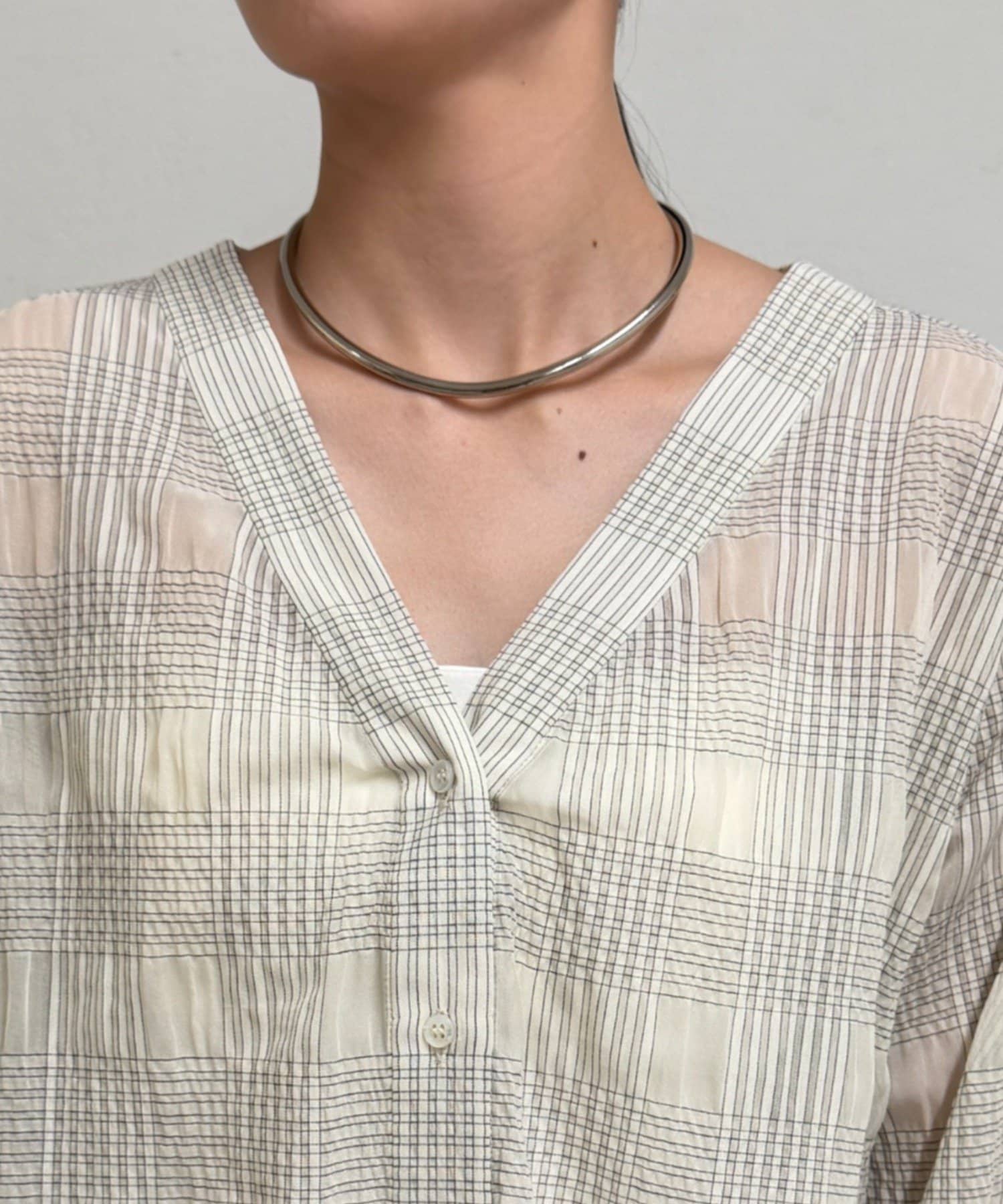 抜け感とこなれ感を演出。シアーチェックVネックブラウス