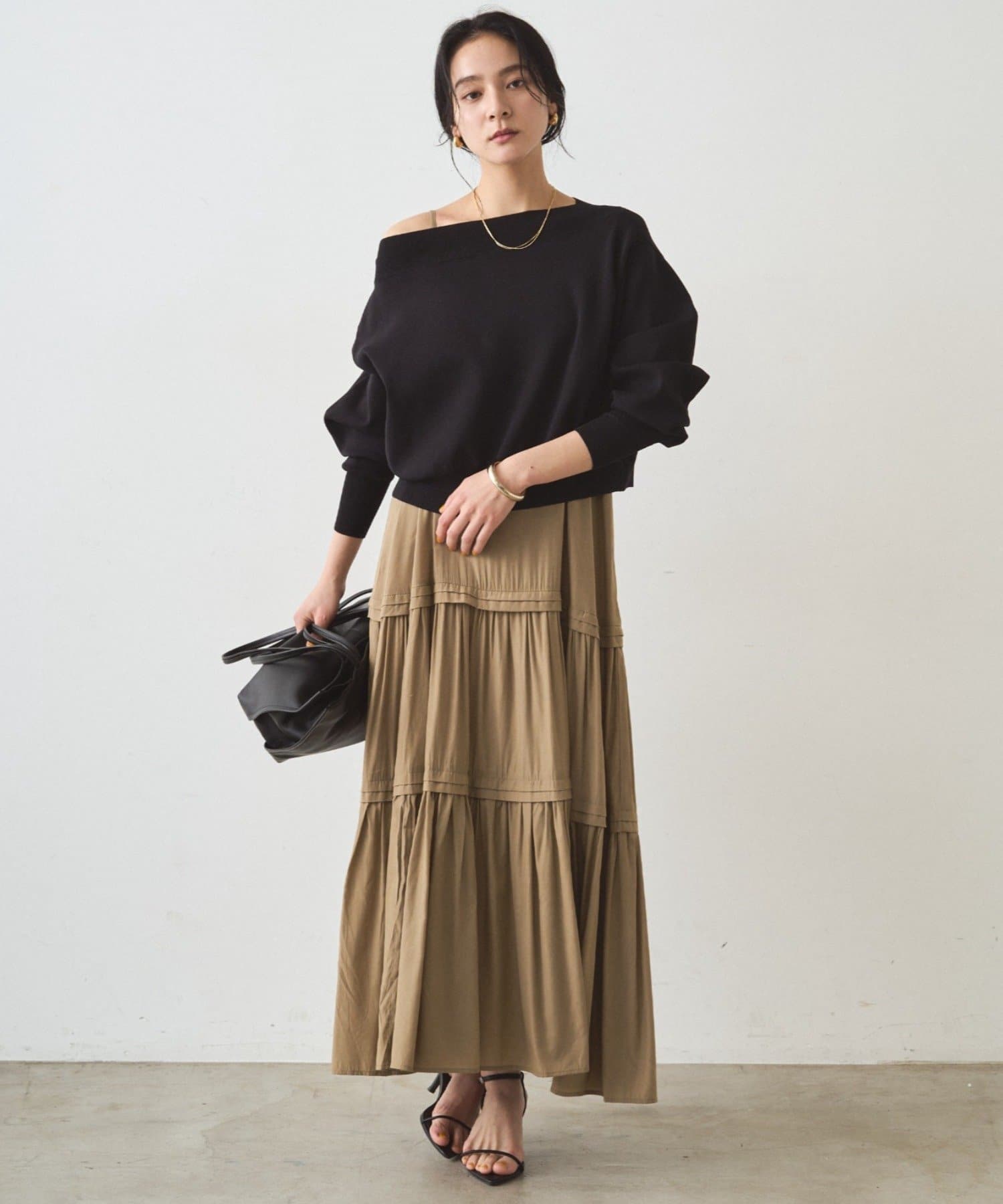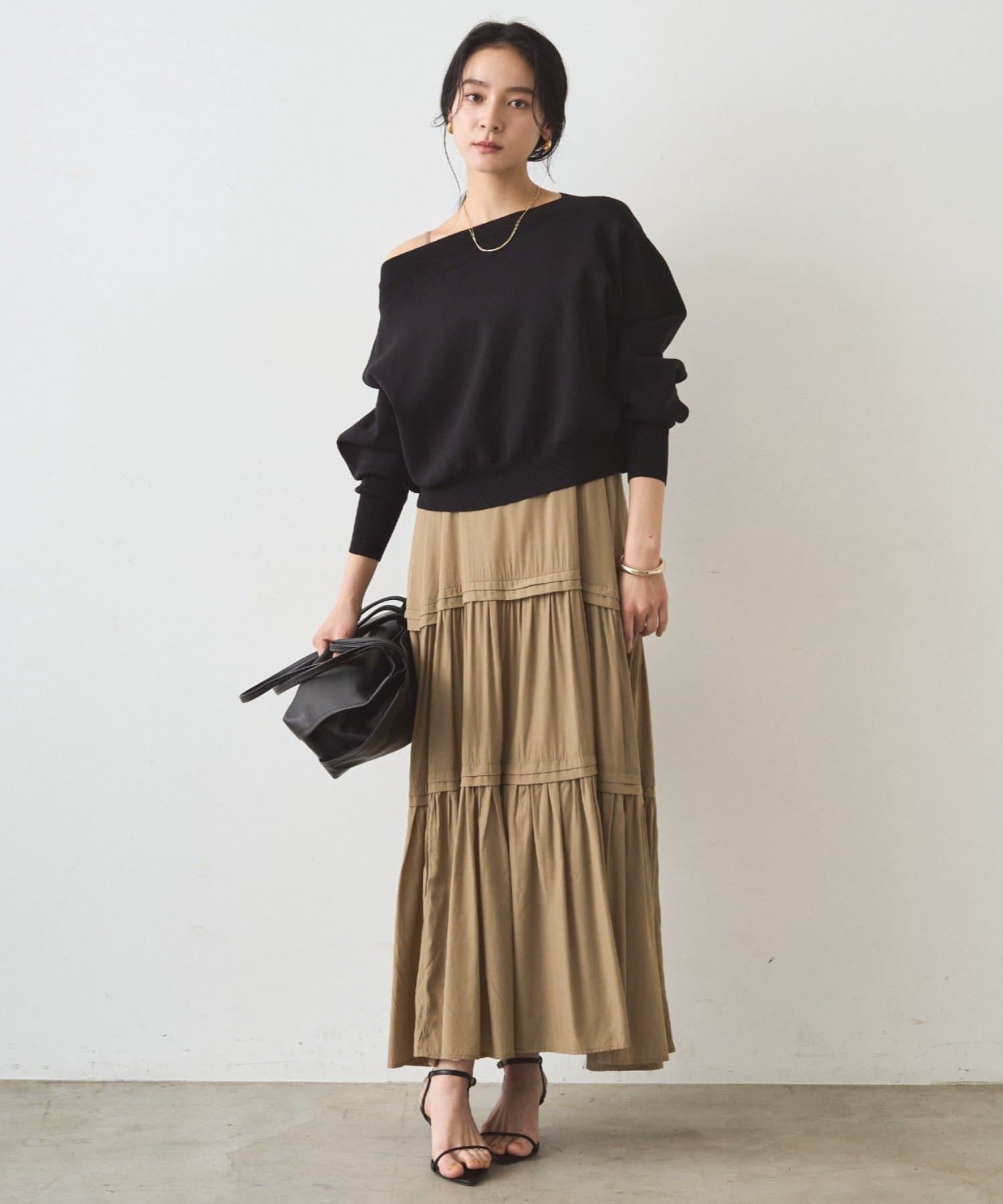 カジュアルながらも上品な印象を与えてくれるから、普段使いはもちろん、オフィスシーンにも活躍します。