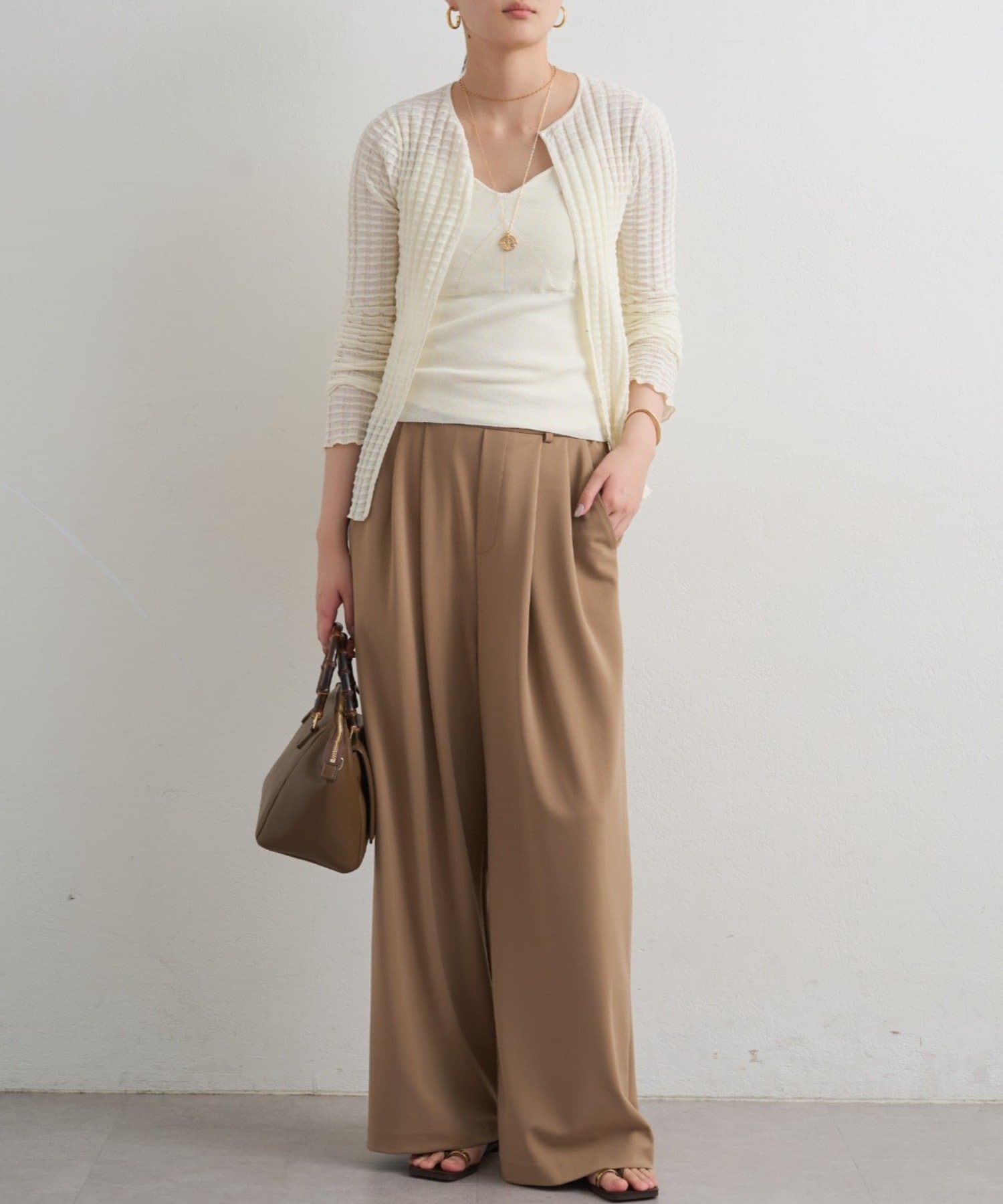 ジャケットやカーディガンを羽織れば、オフィススタイルにも対応可能。