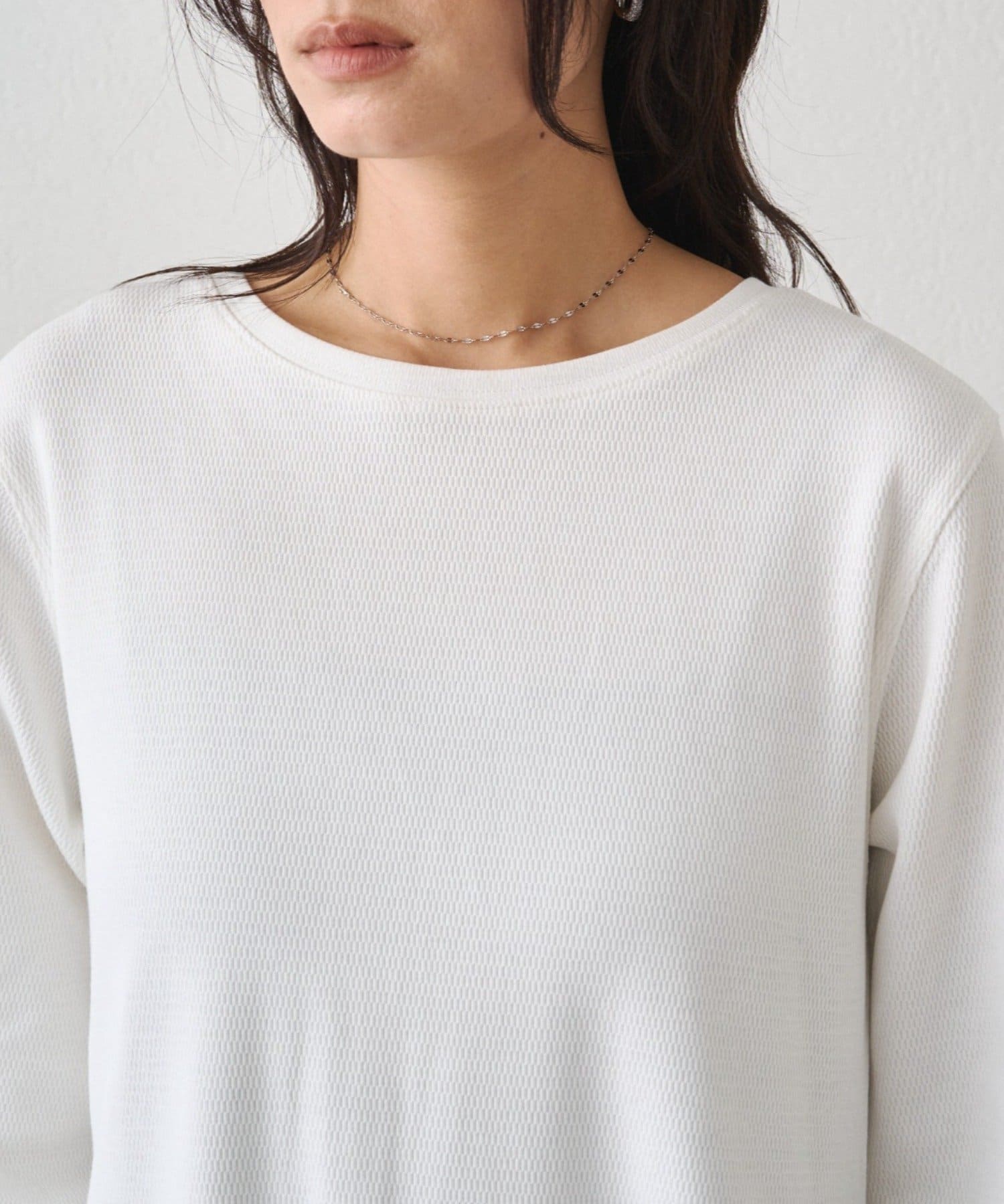 表情豊かなハニカム編みのカットソー素材を使用しており、シンプルながらも立体感のある仕上がり。