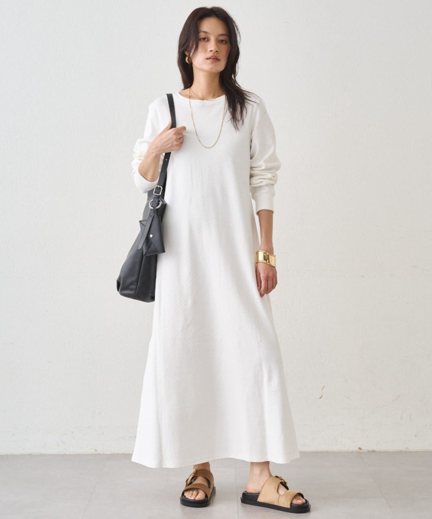 ジャケットやカーディガンを羽織ればオフィススタイルにも対応し、アクセサリーや小物で個性をプラスして、自分らしい着こなしを楽しめます。