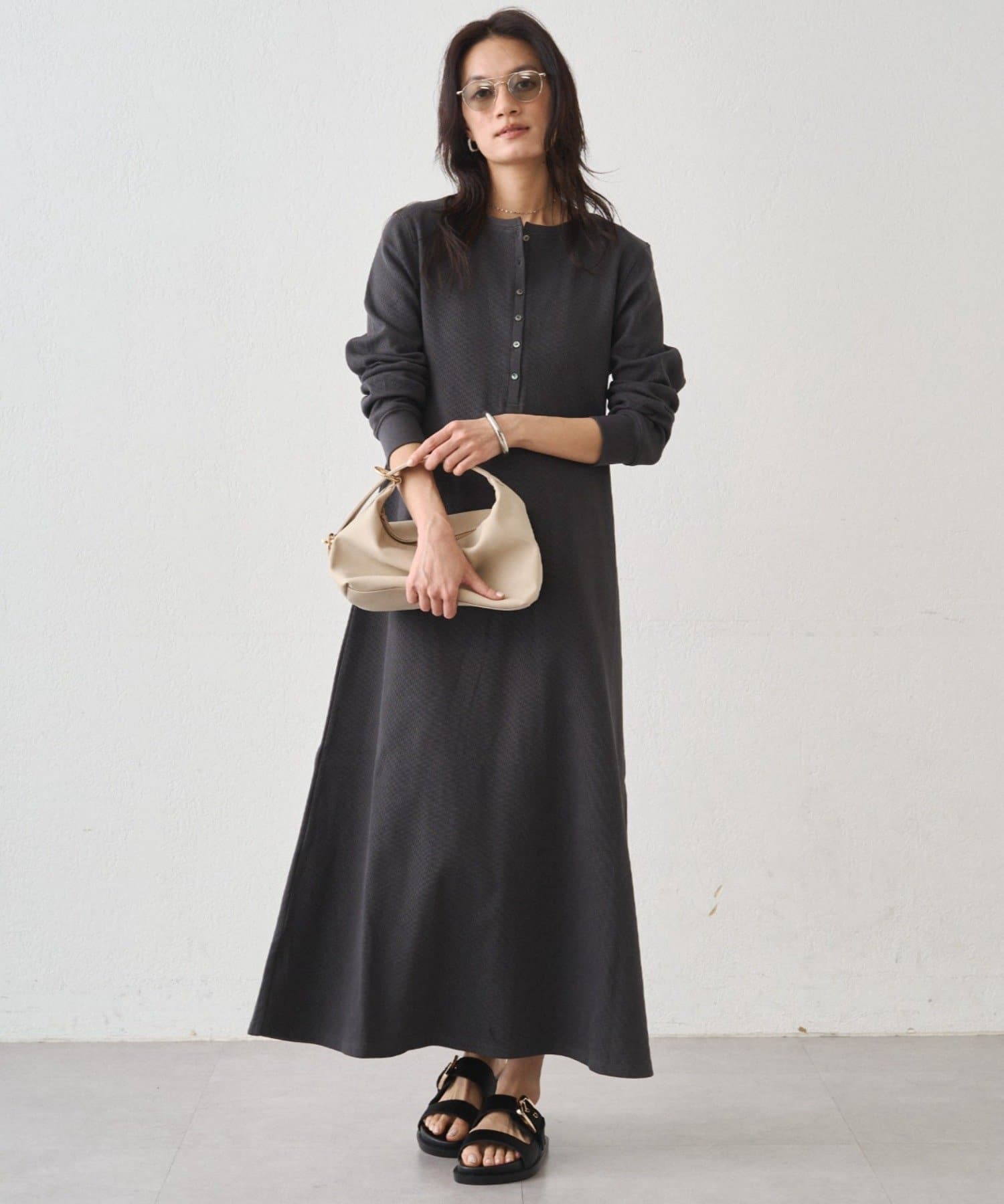 リラックス感漂う、大人のためのカットヘンリーワンピース