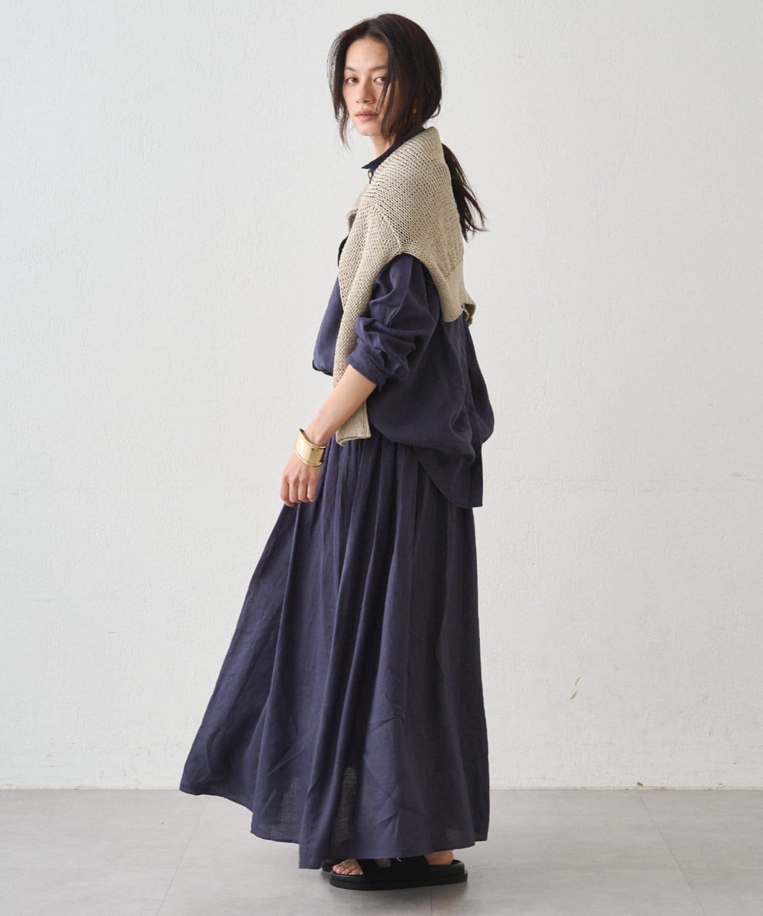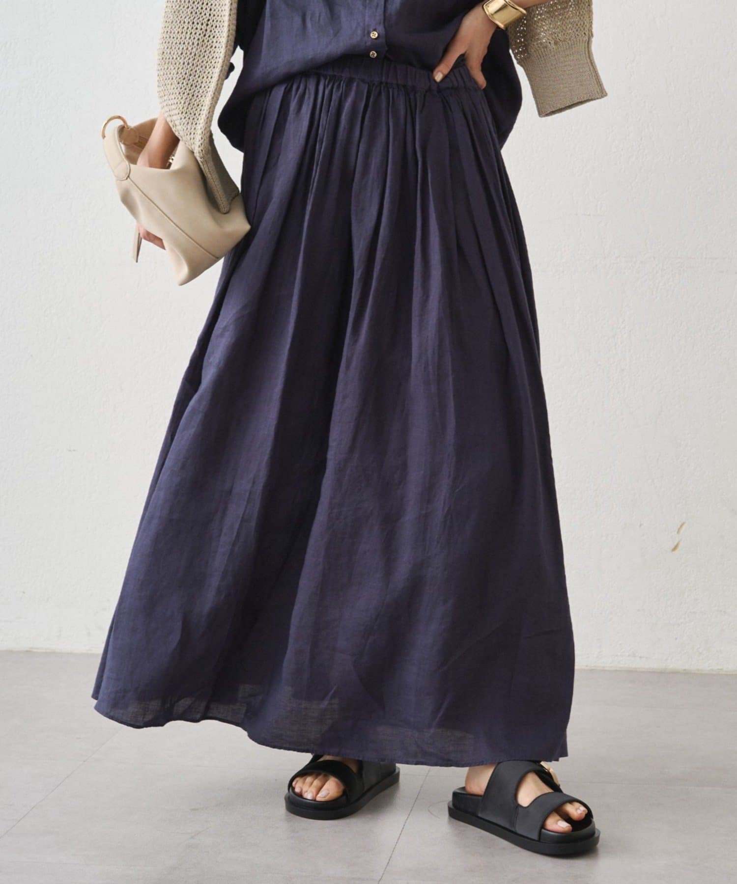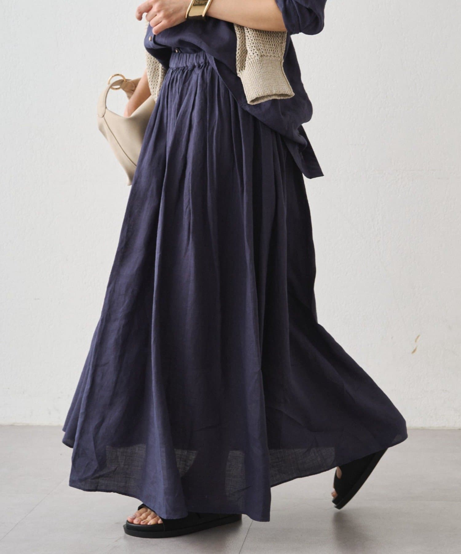 風をまとう、リネンタックギャザースカート