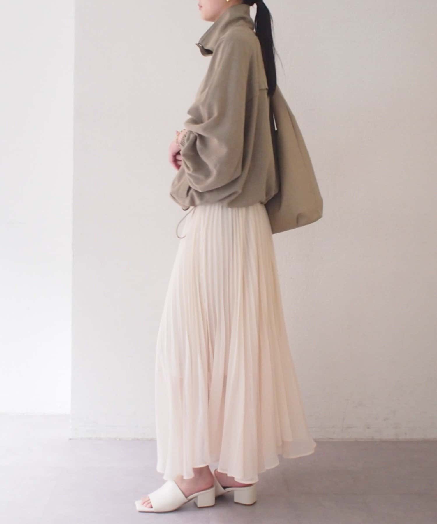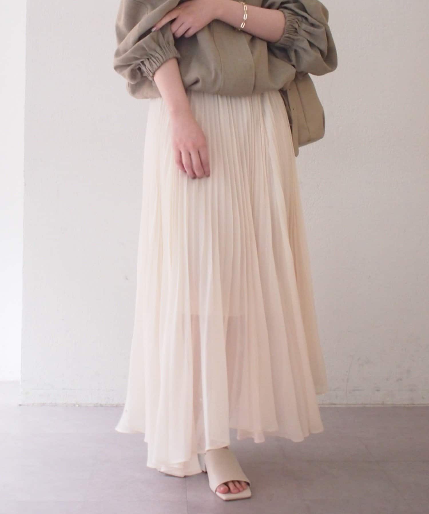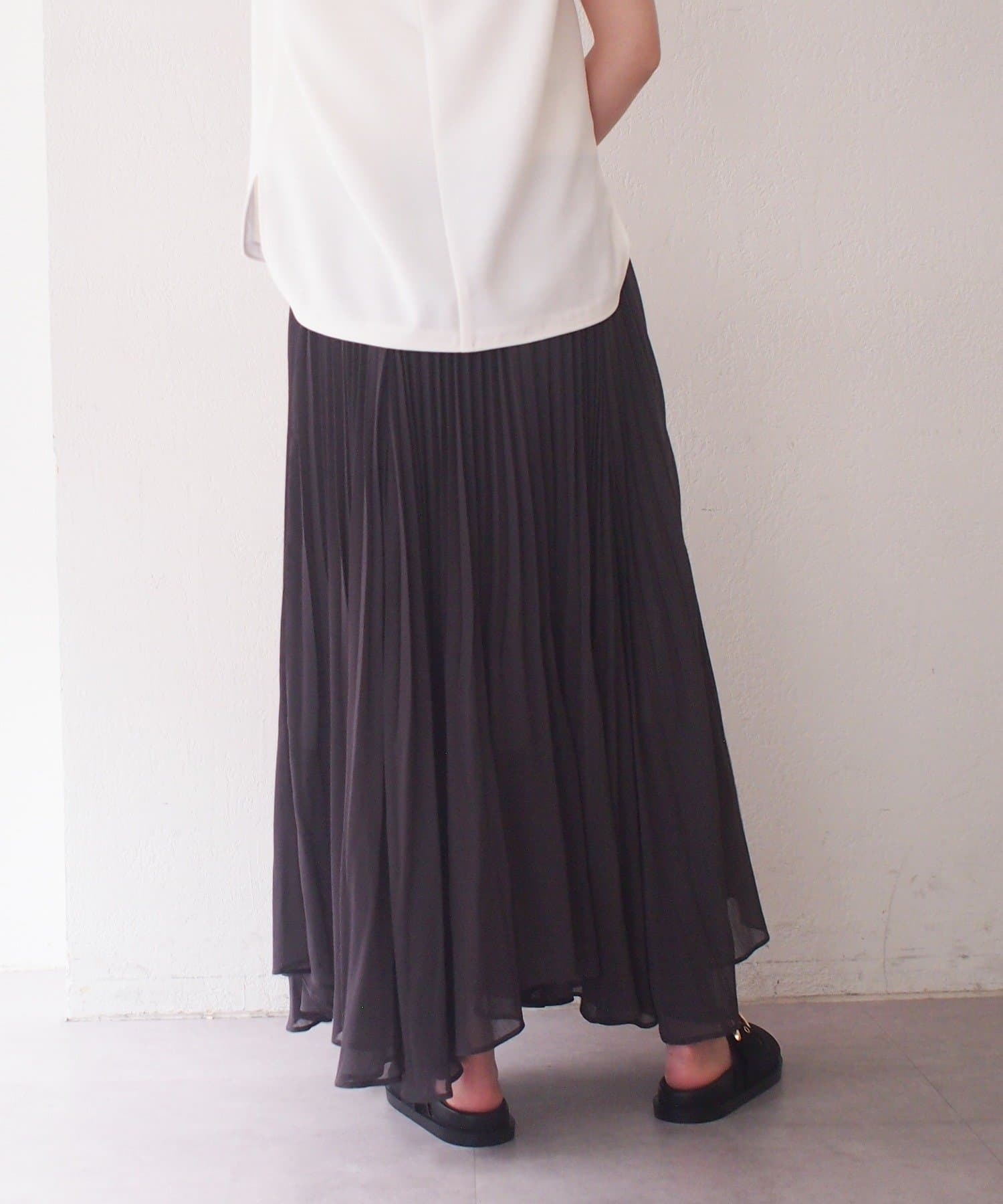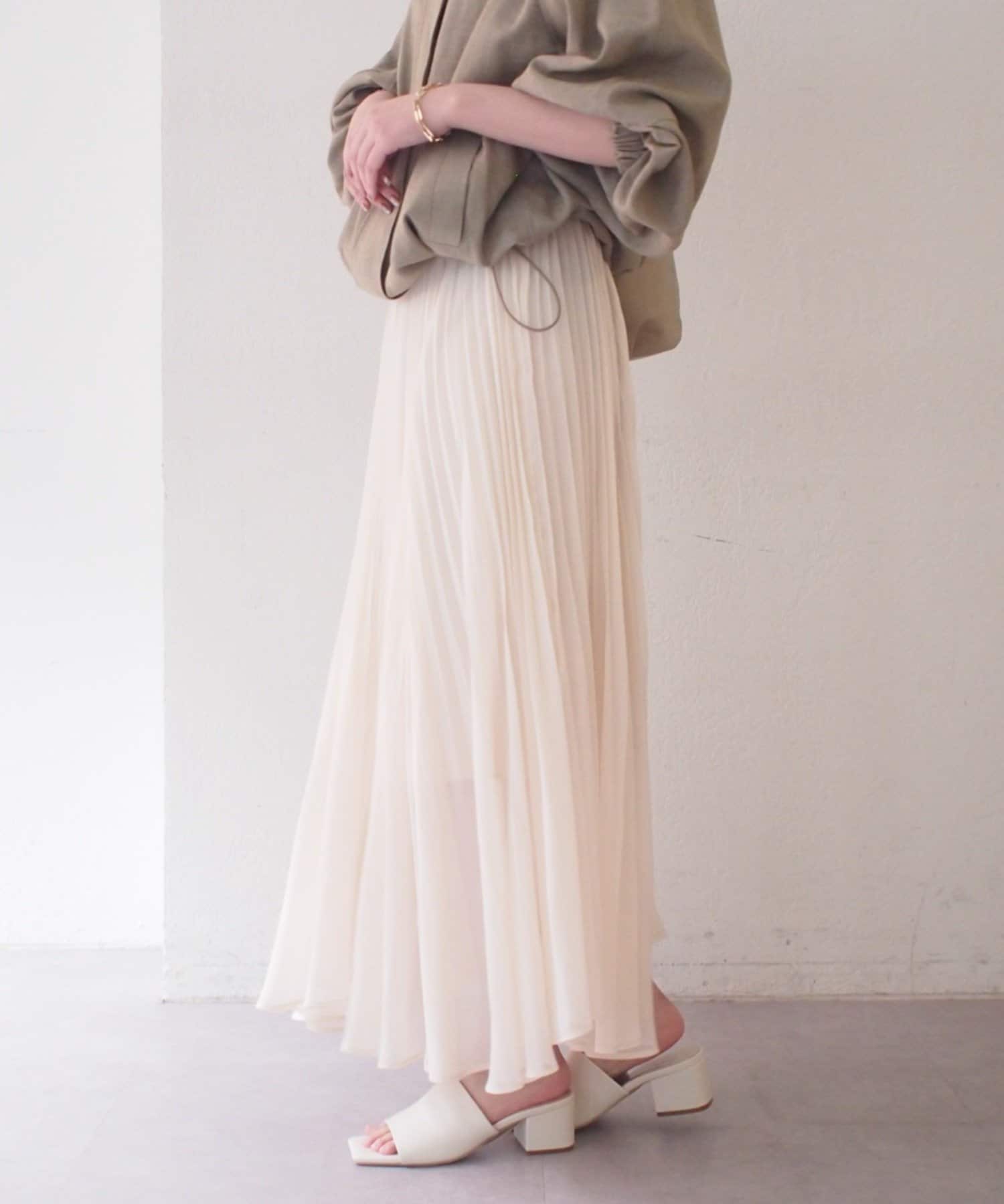 エアリーな素材がロング丈でも軽やかな印象を与え、繊細なプリーツが歩くたびに美しく揺れます。
