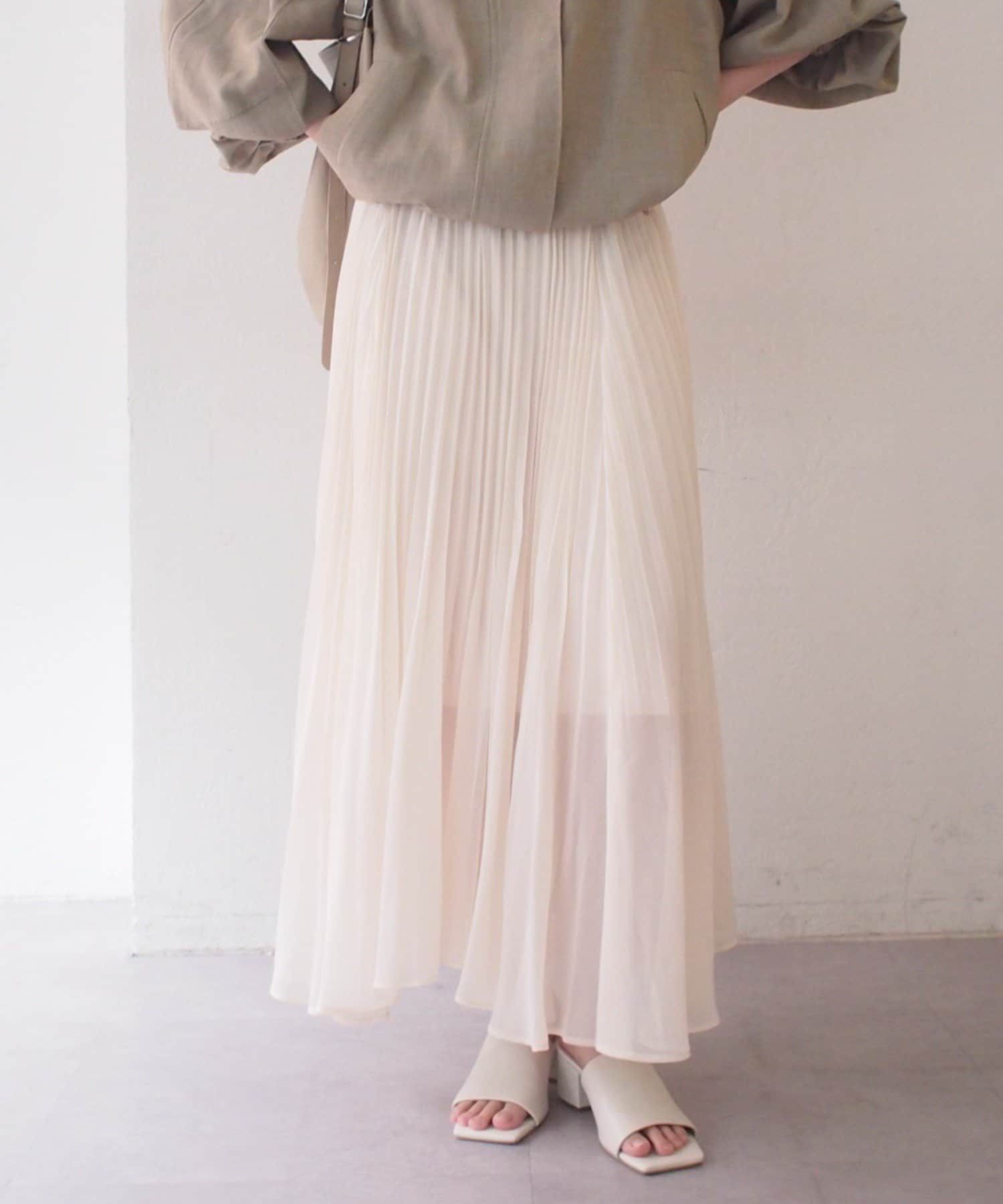 透け感と上品な光沢が魅力のシアープリーツスカート。