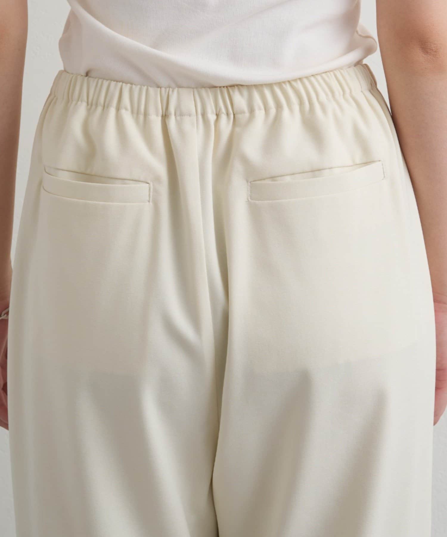 ウエスト一周ゴムで楽な着心地なのに、だらしなく見えないのが嬉しいポイント。