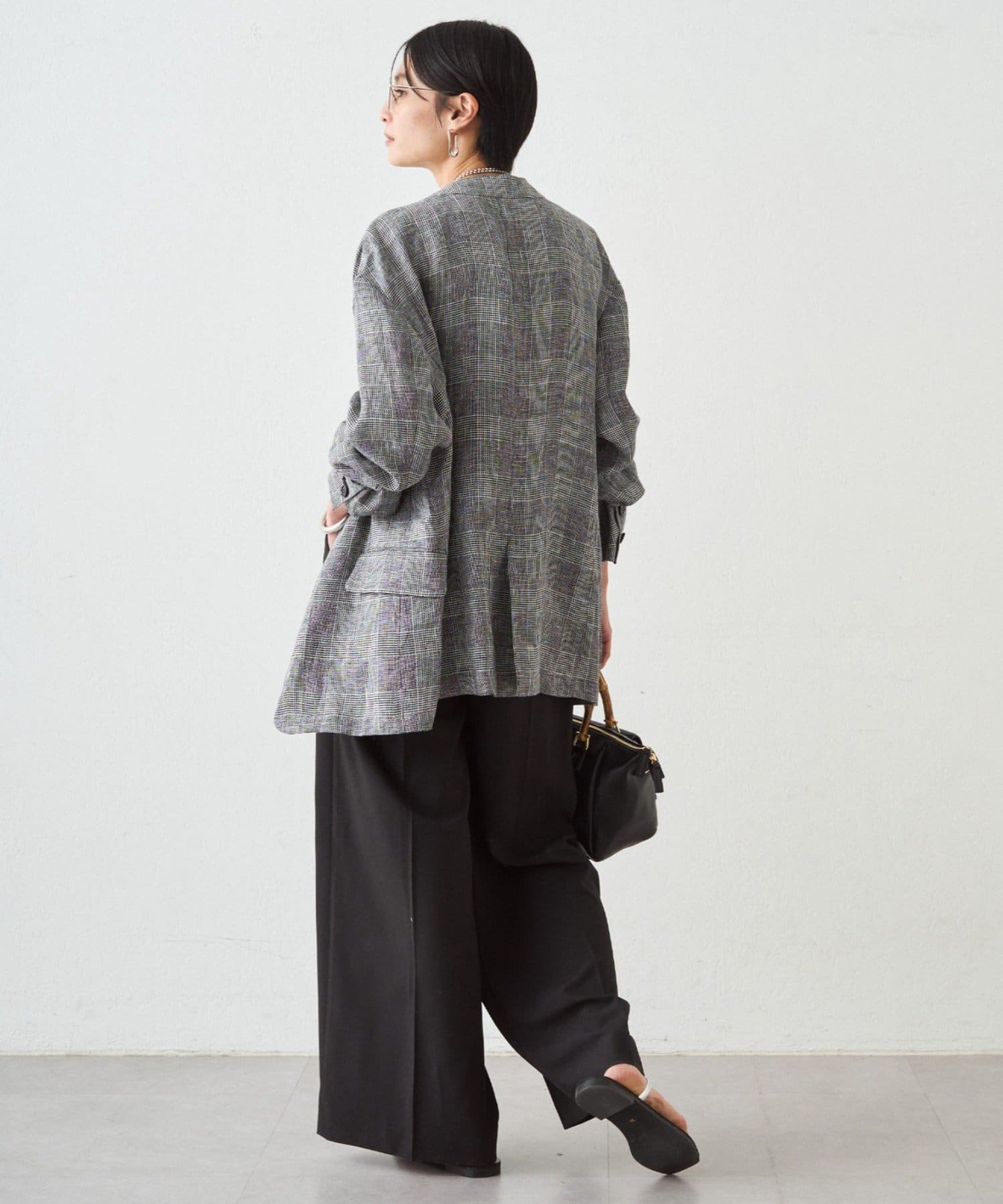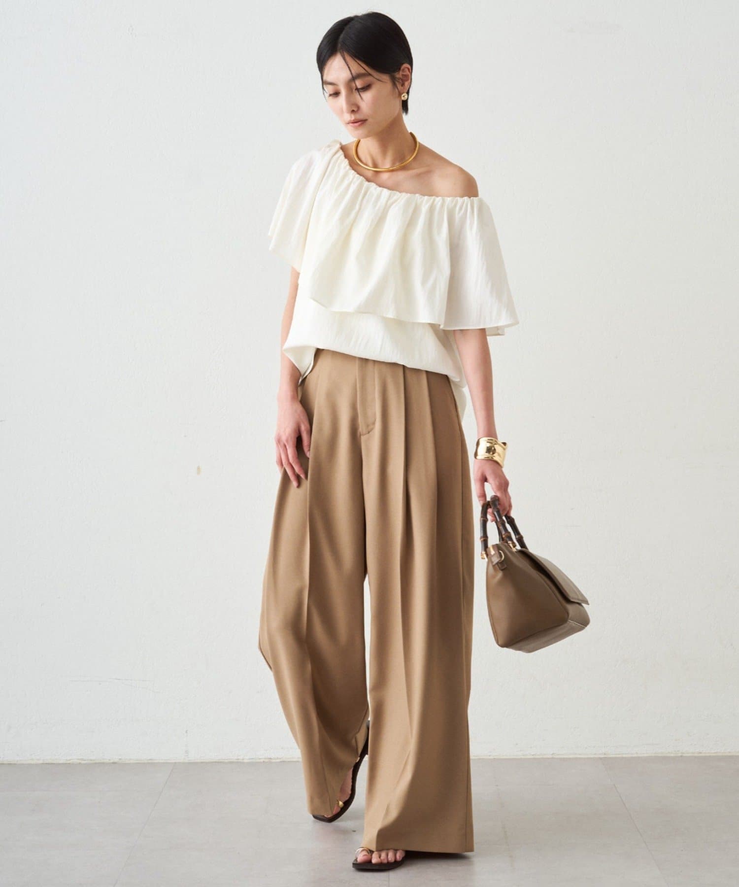 腰周りをカバーしながらすっきり見せてくれるワイドパンツ。