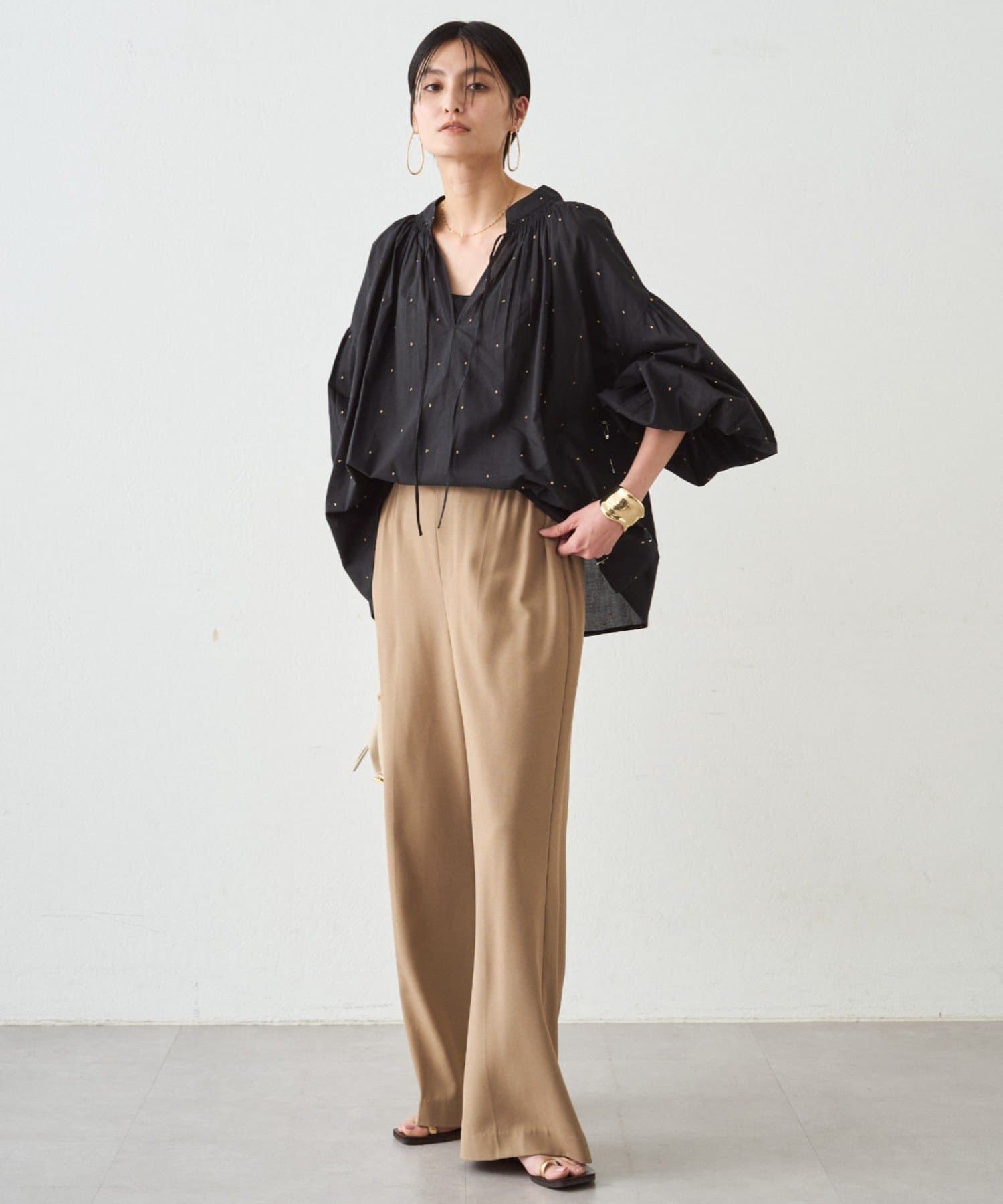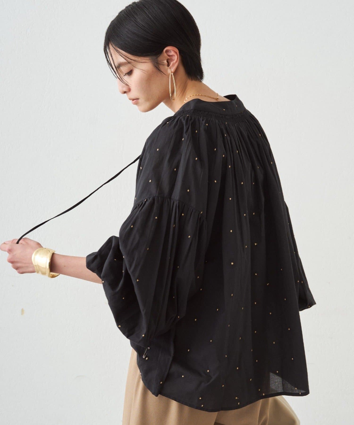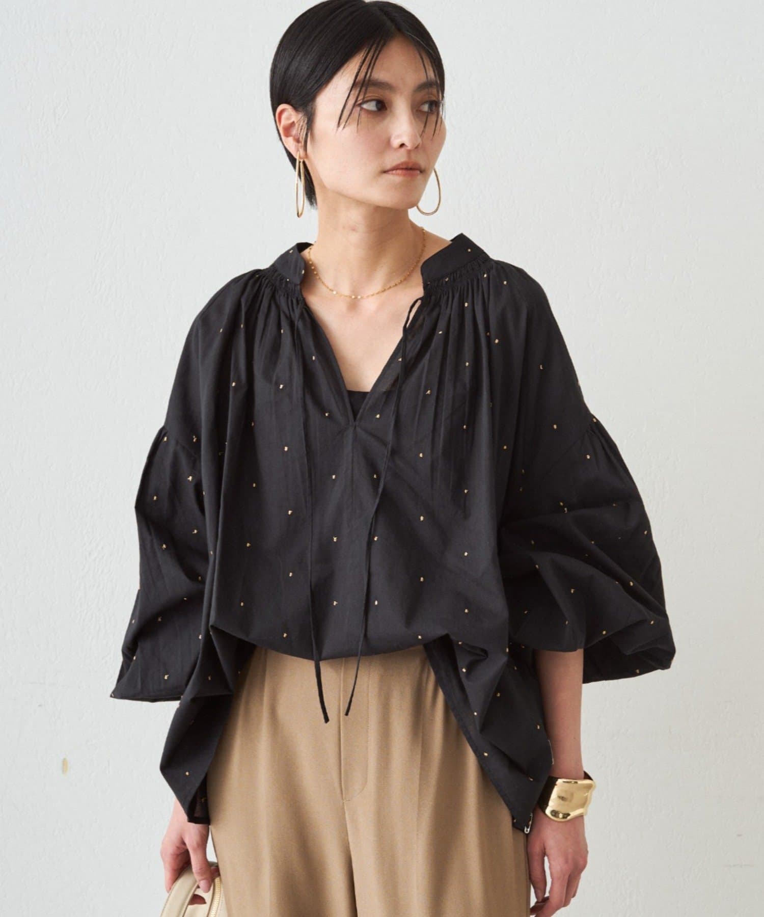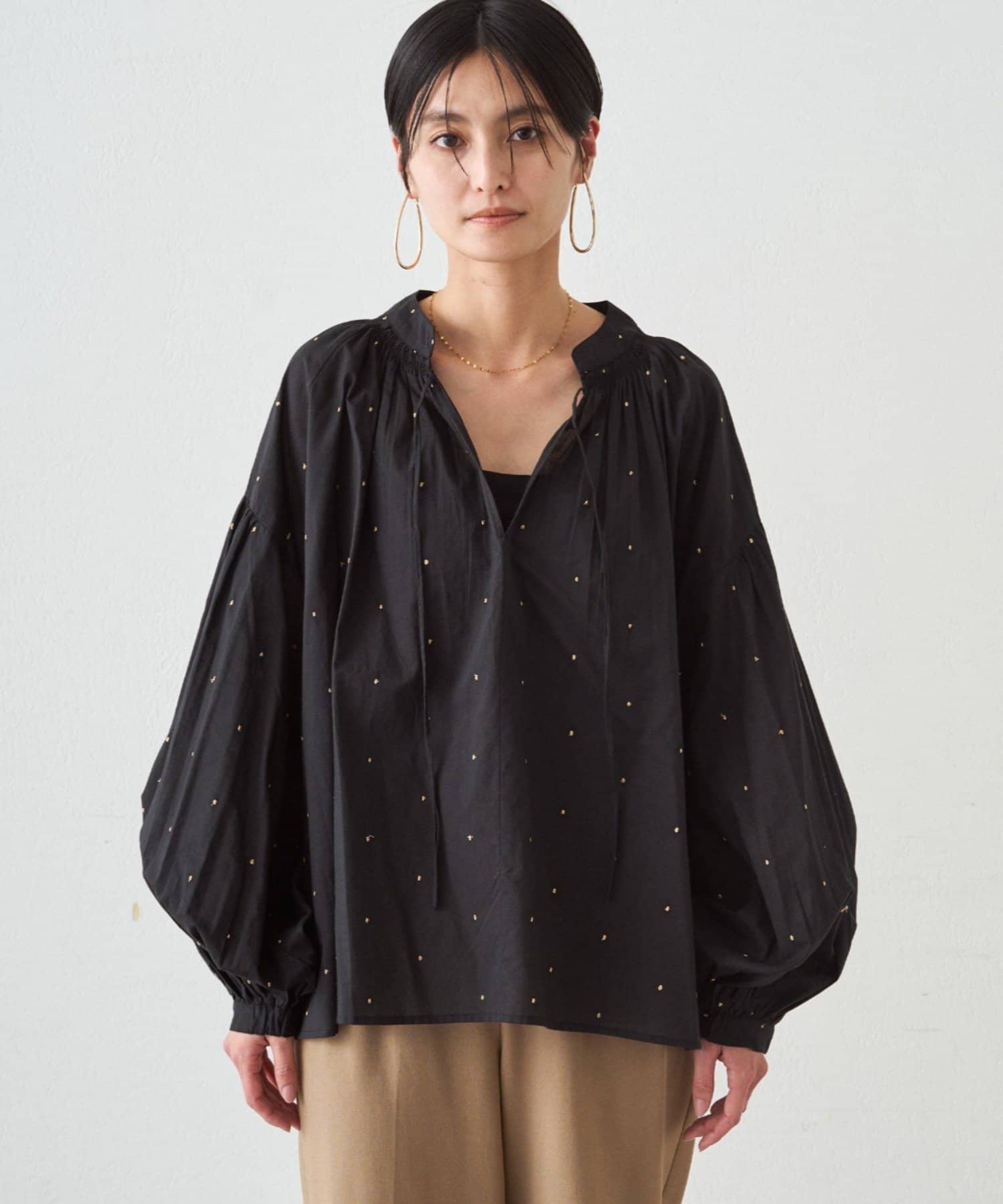 キラッとした甘すぎないドット刺繍が、大人でも取り入れやすい上品なアクセントに