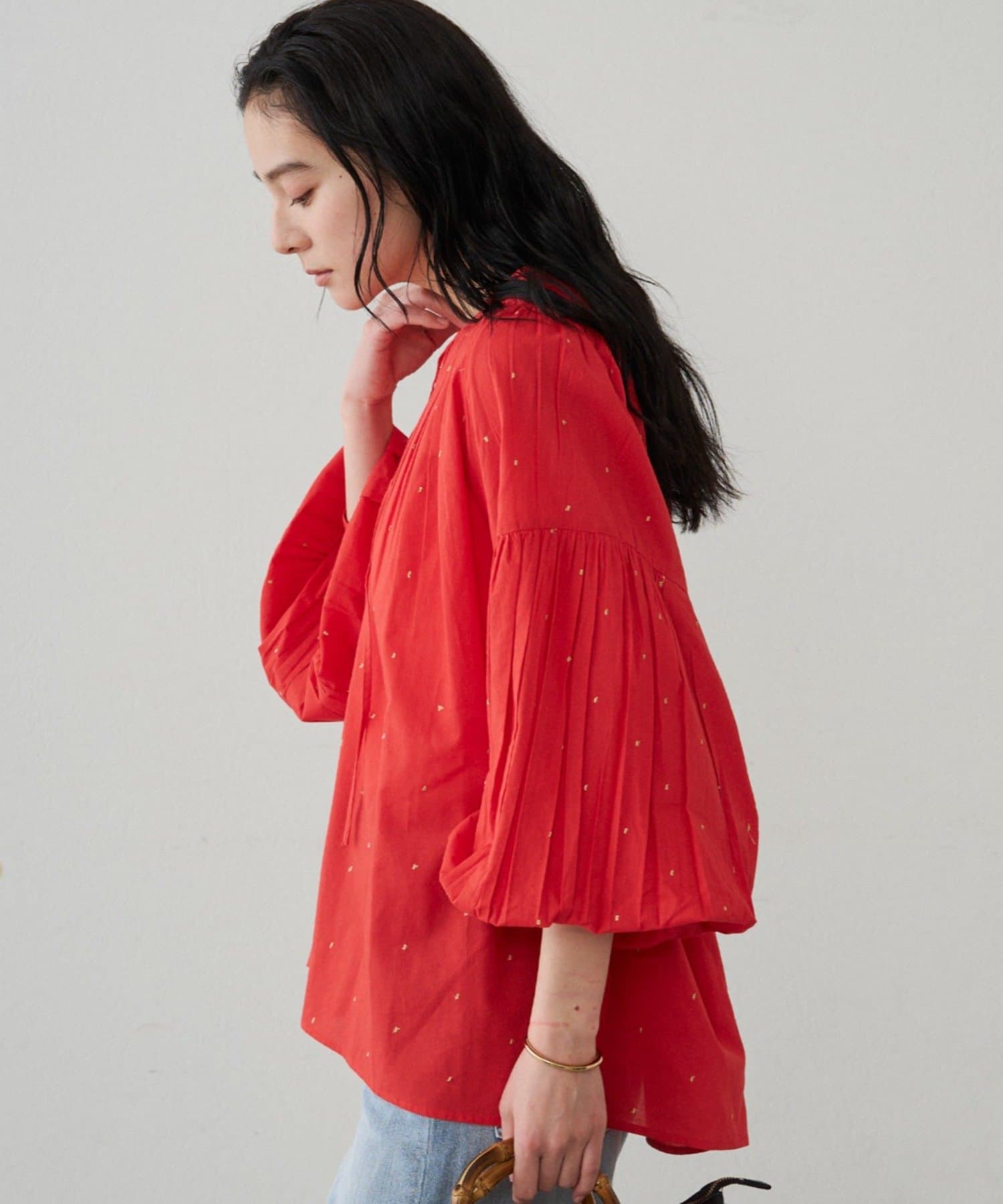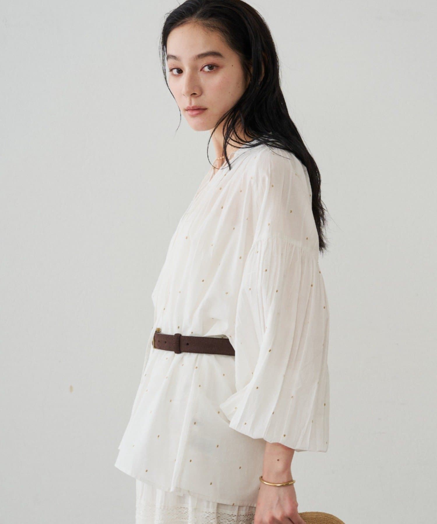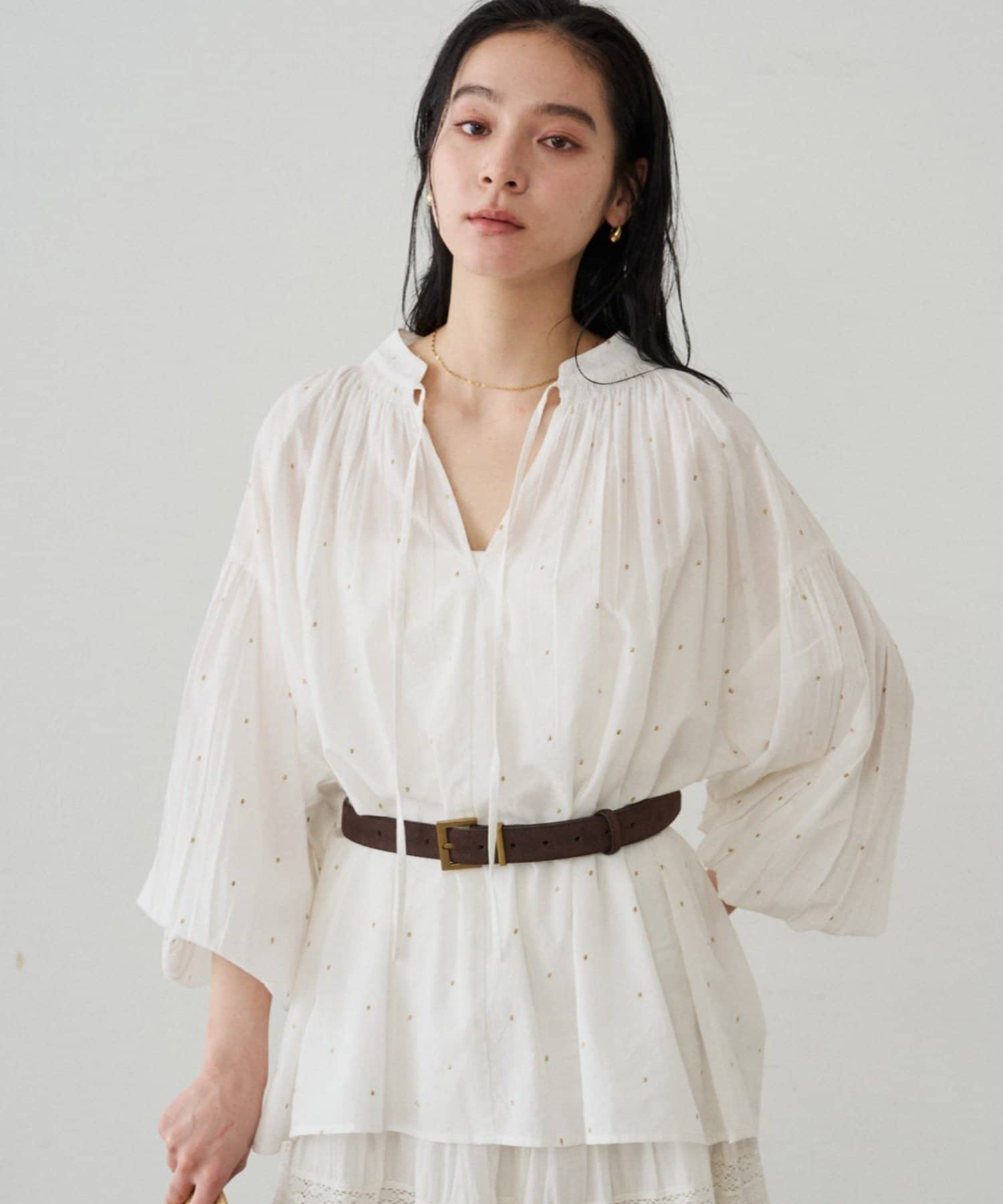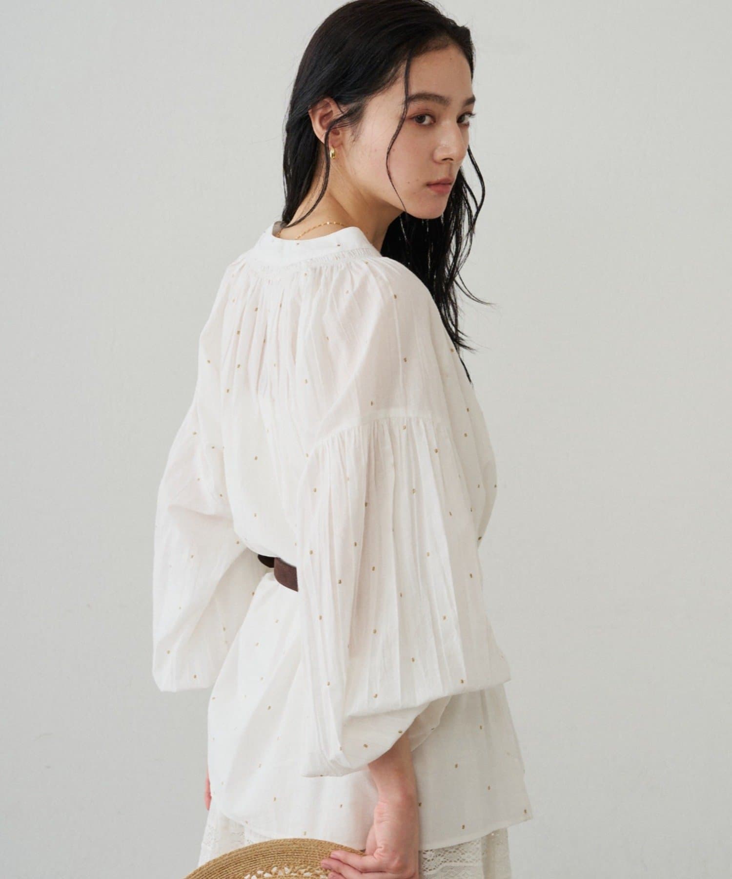 軽やかな素材に繊細なギャザーをプラスし、ふんわりと空気を含む立体的なシルエットです。