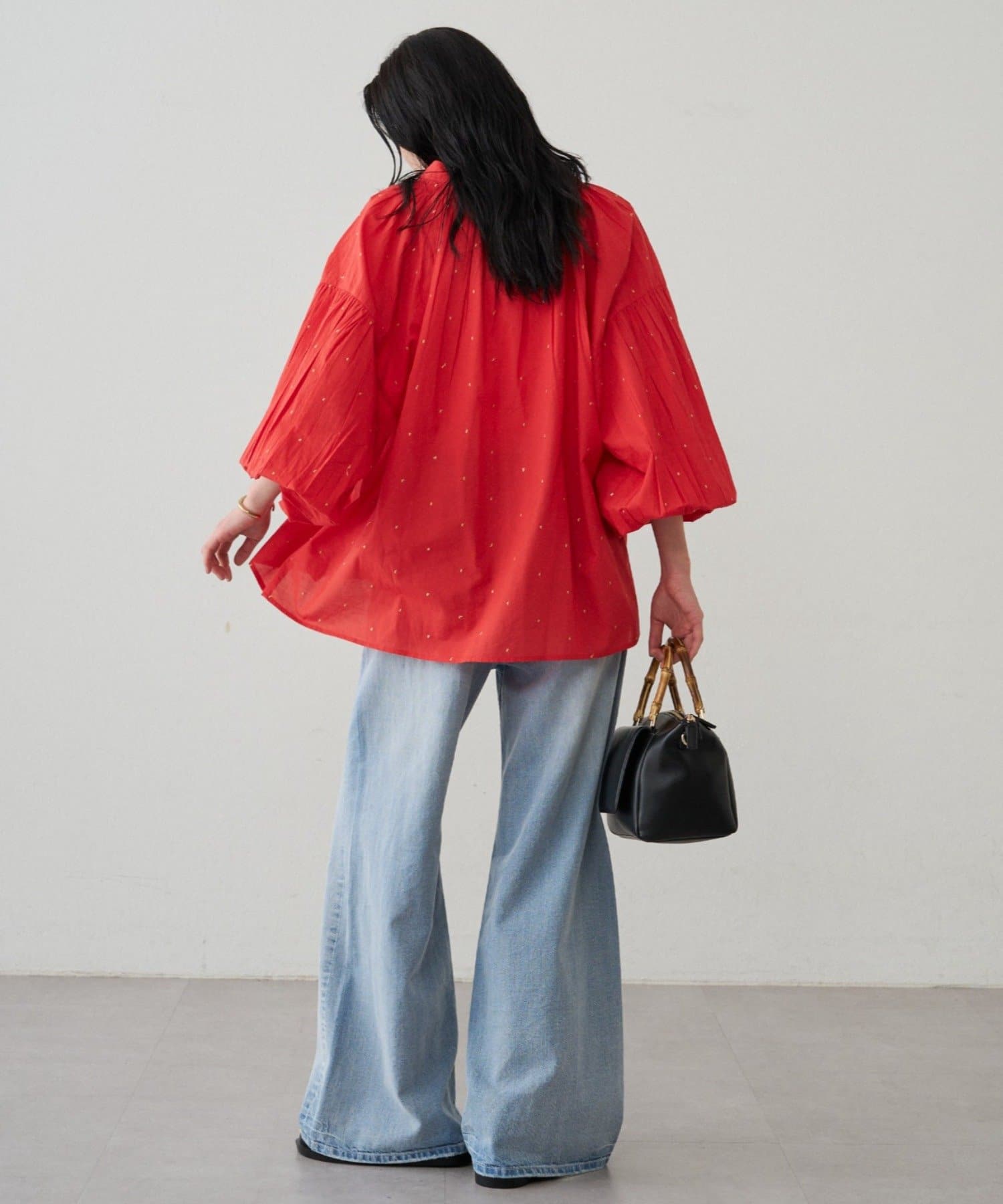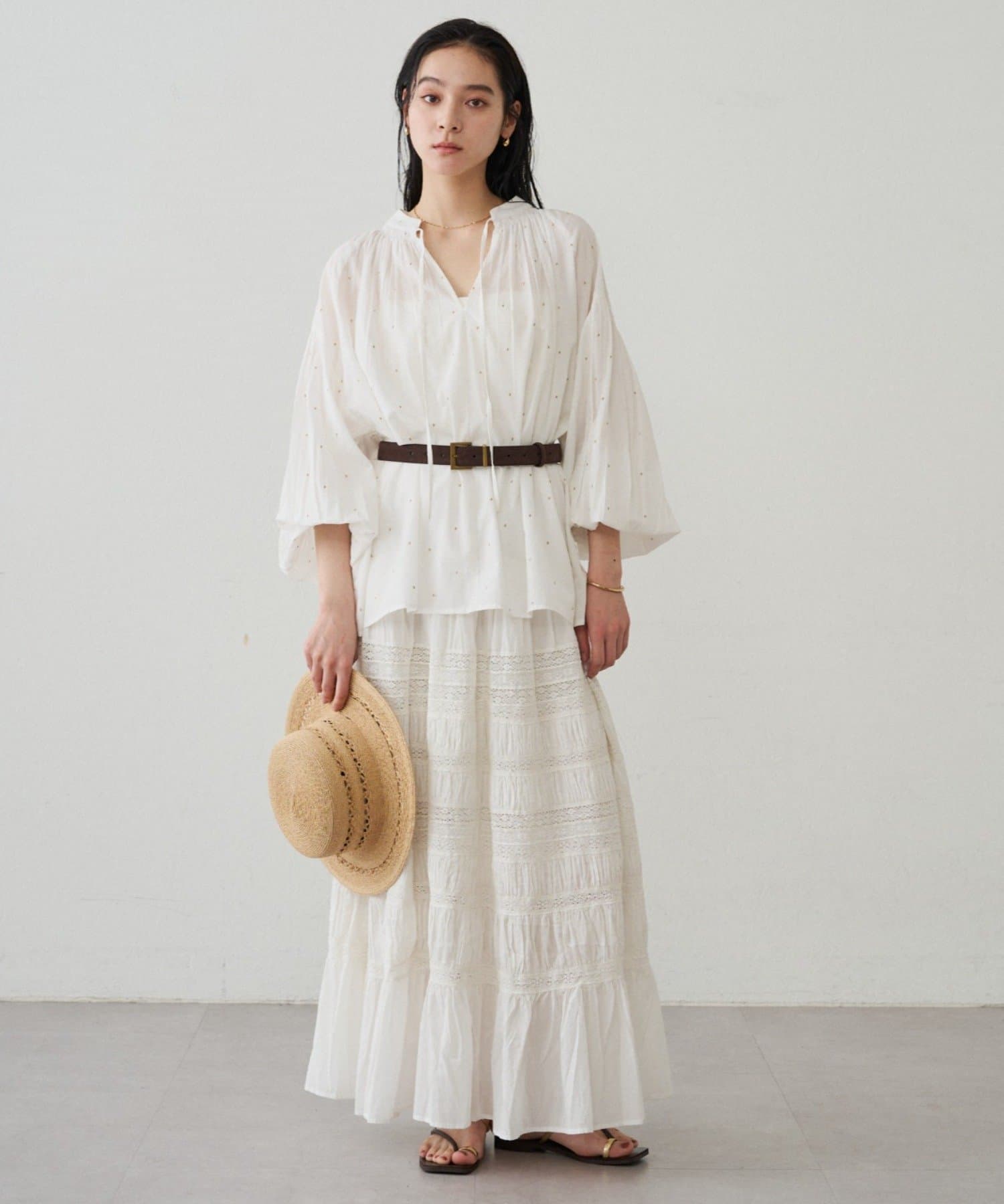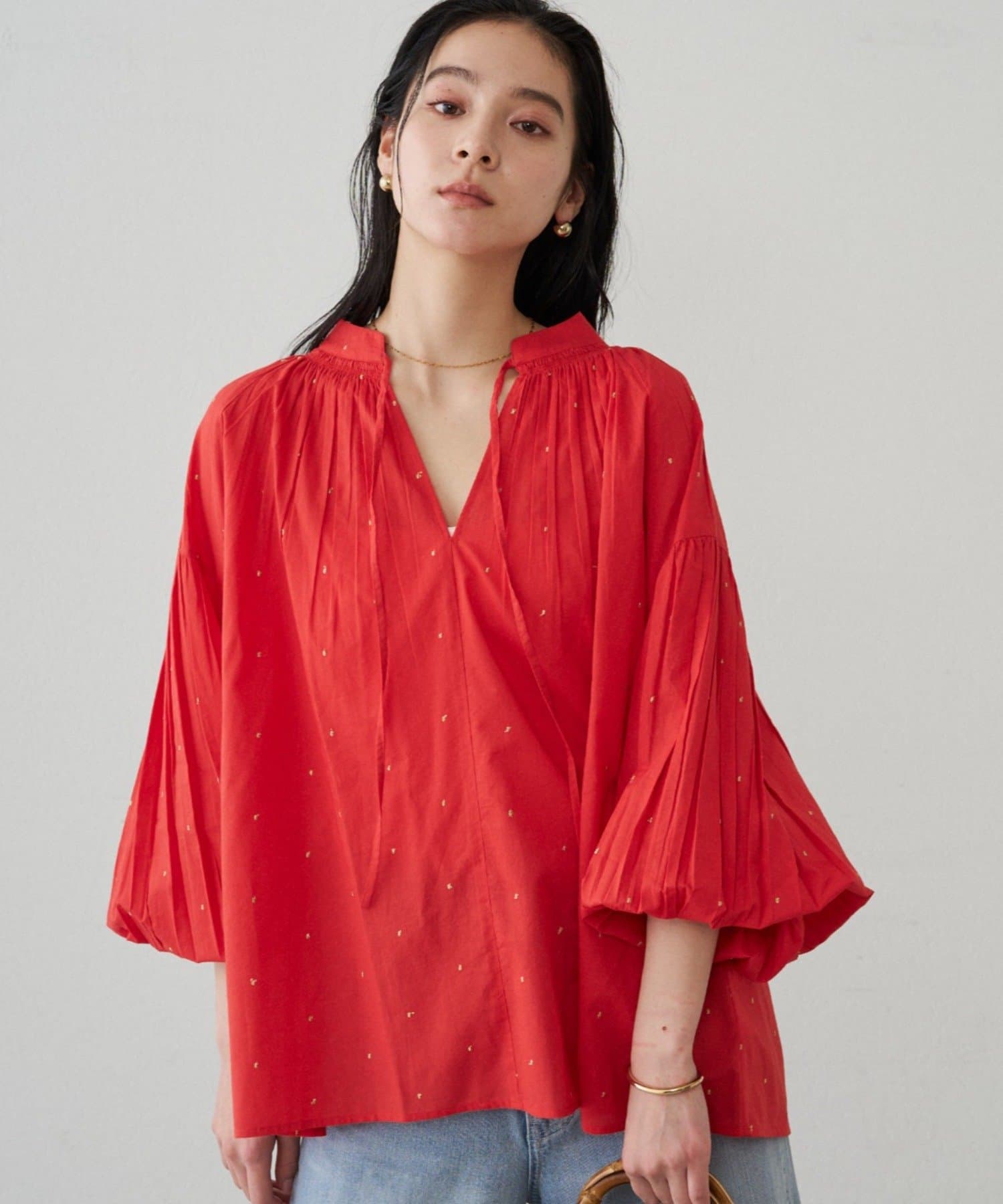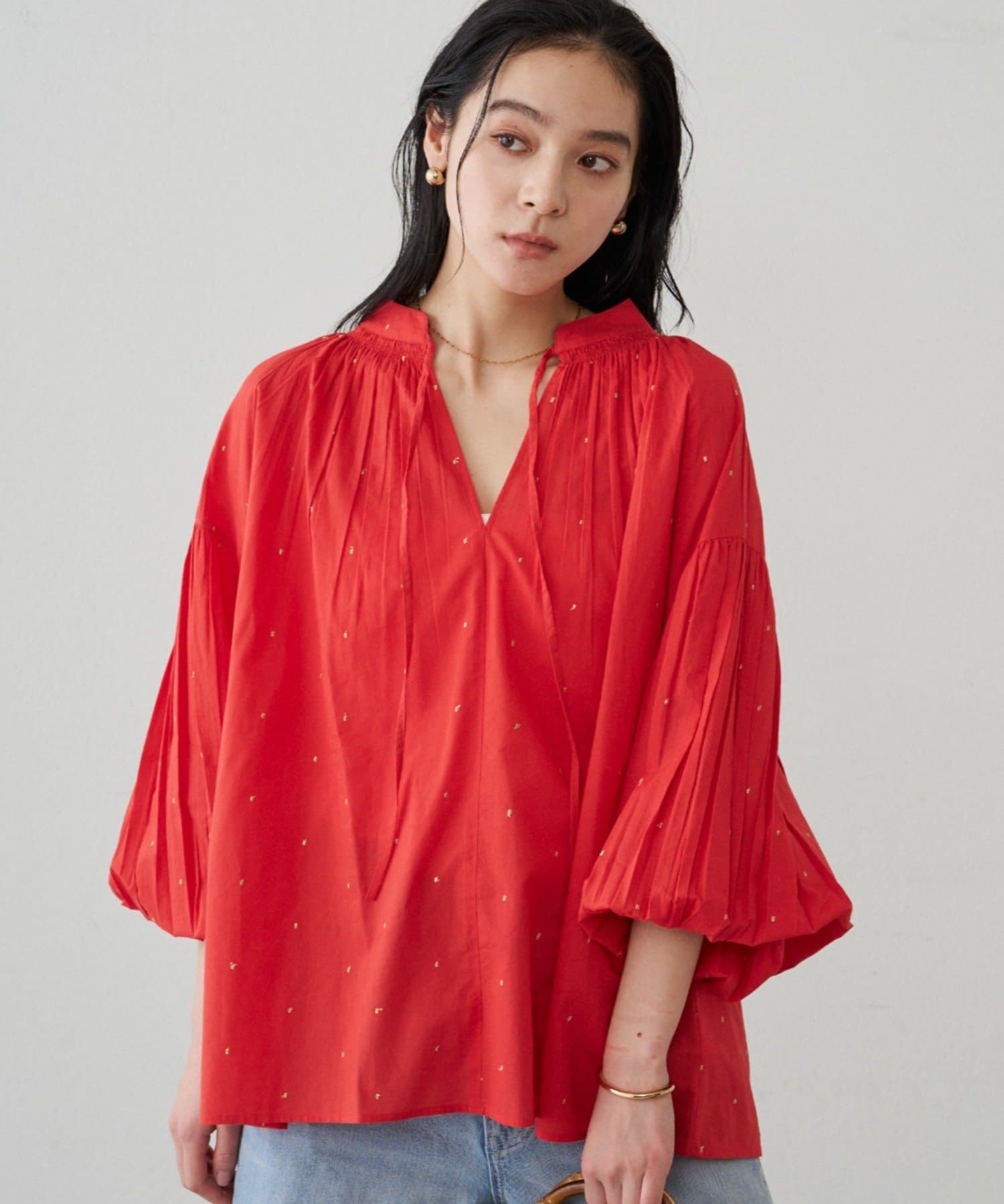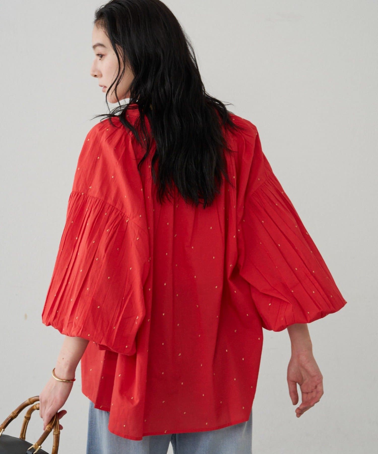 軽やかな素材に繊細なギャザーをプラスし、ふんわりと空気を含む立体的なシルエットです。