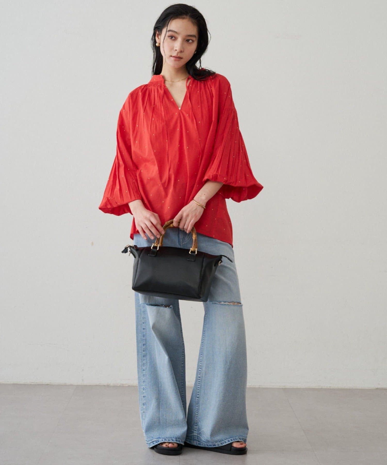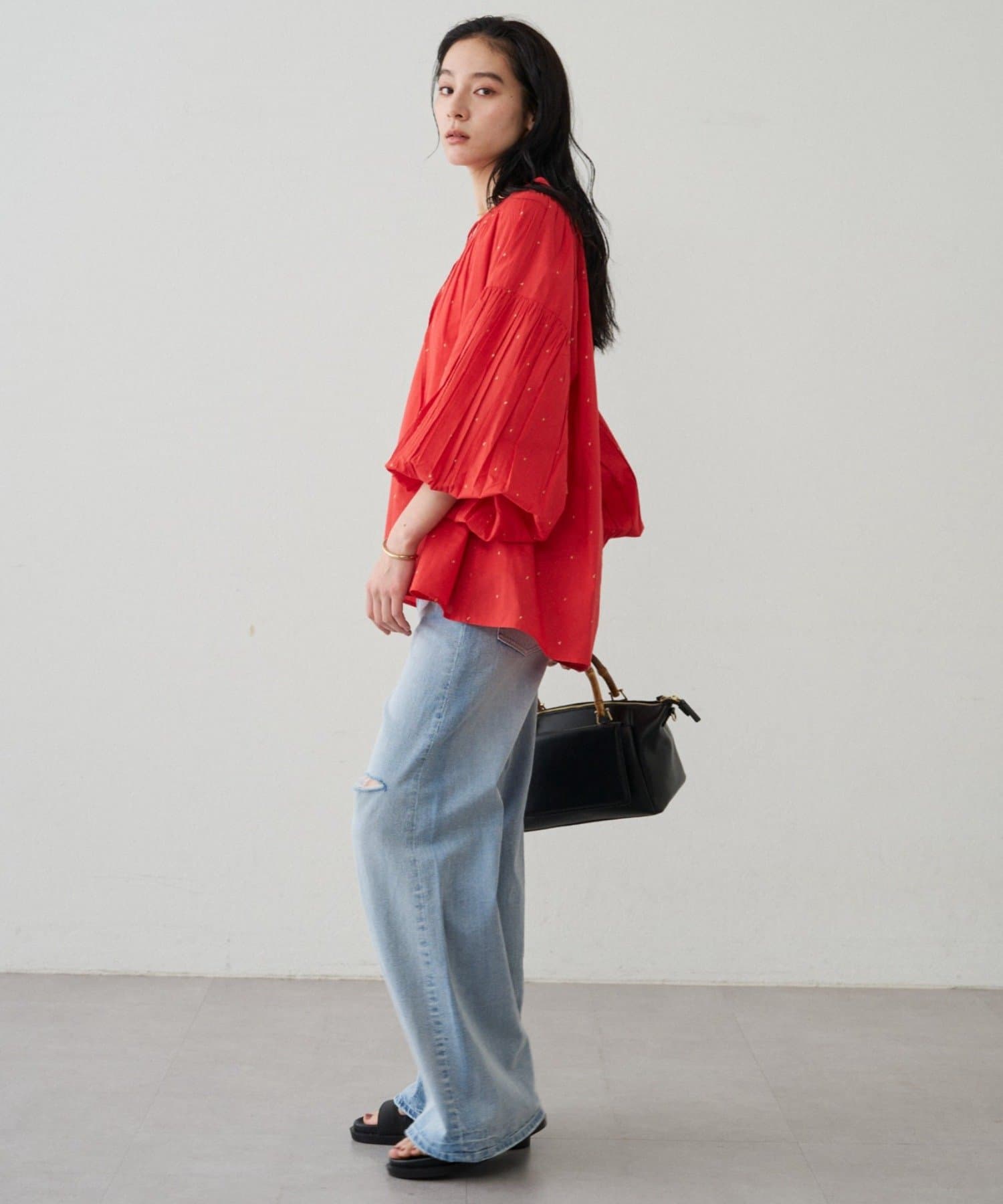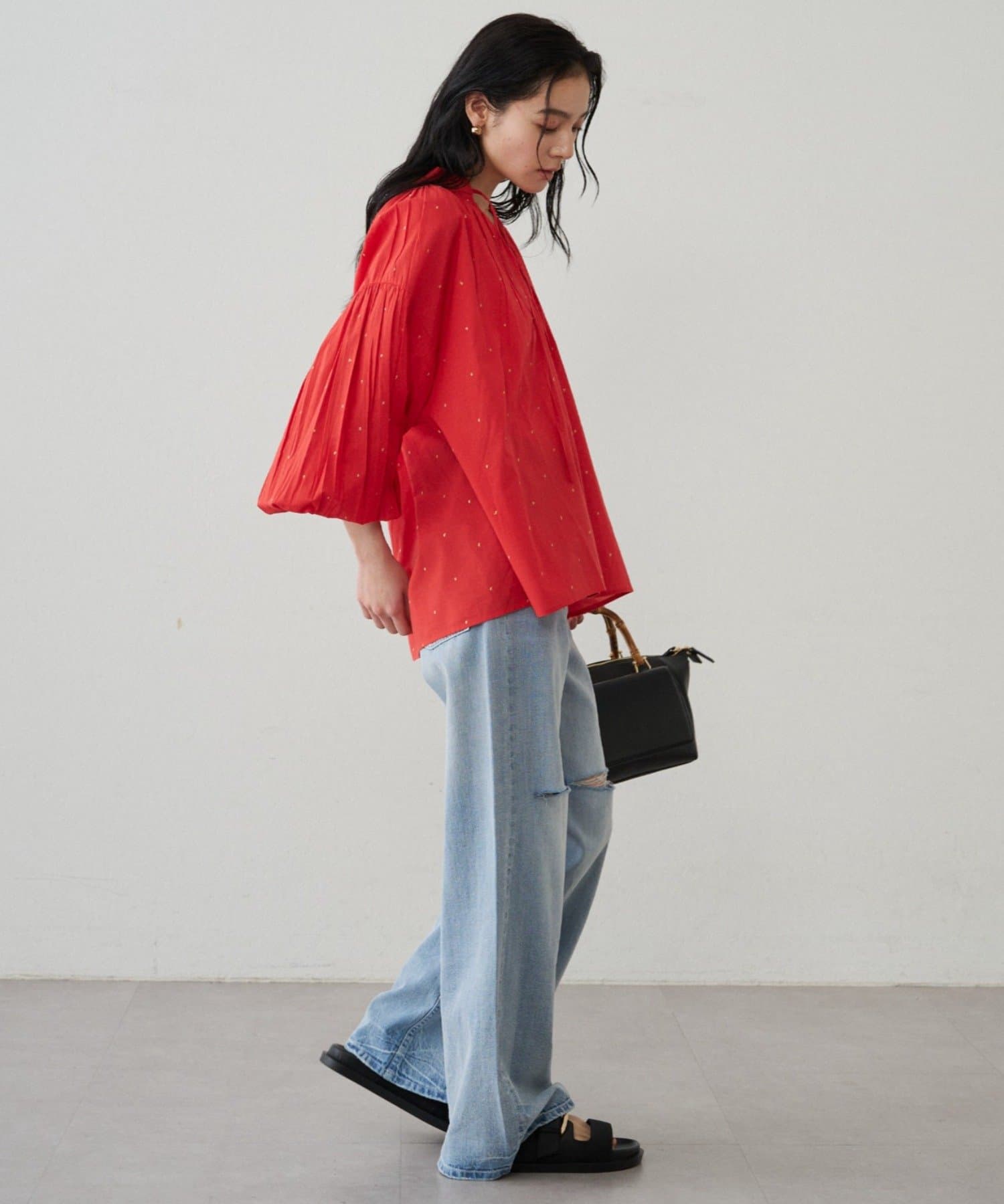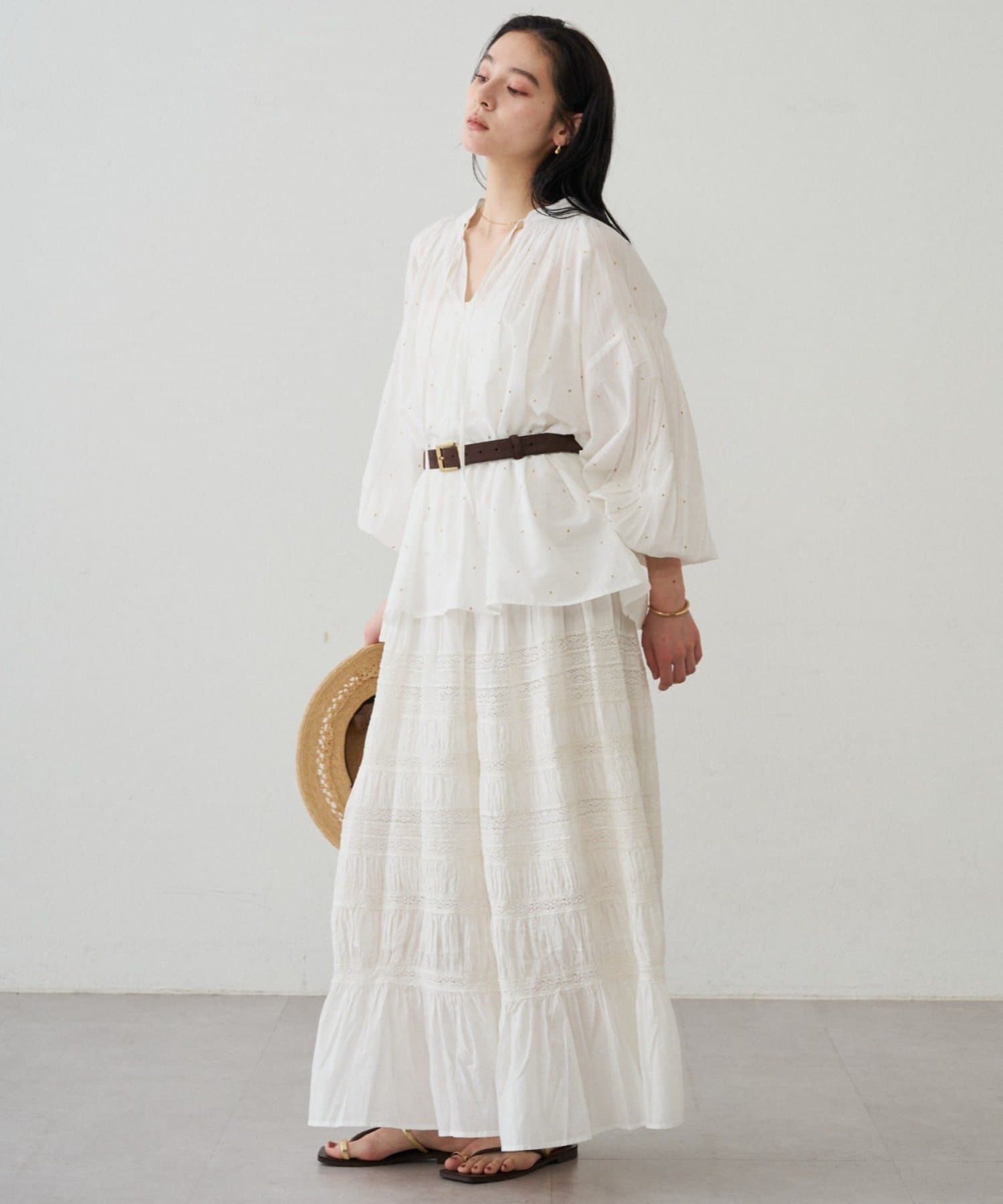 軽やかな素材に繊細なギャザーをプラスし、ふんわりと空気を含む立体的なシルエットです。