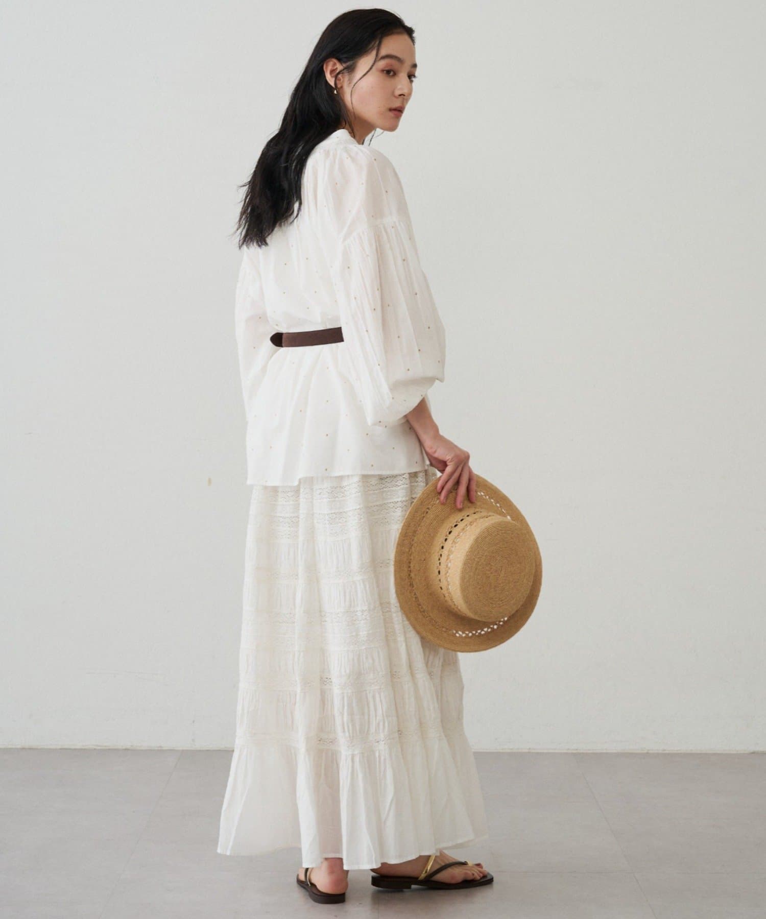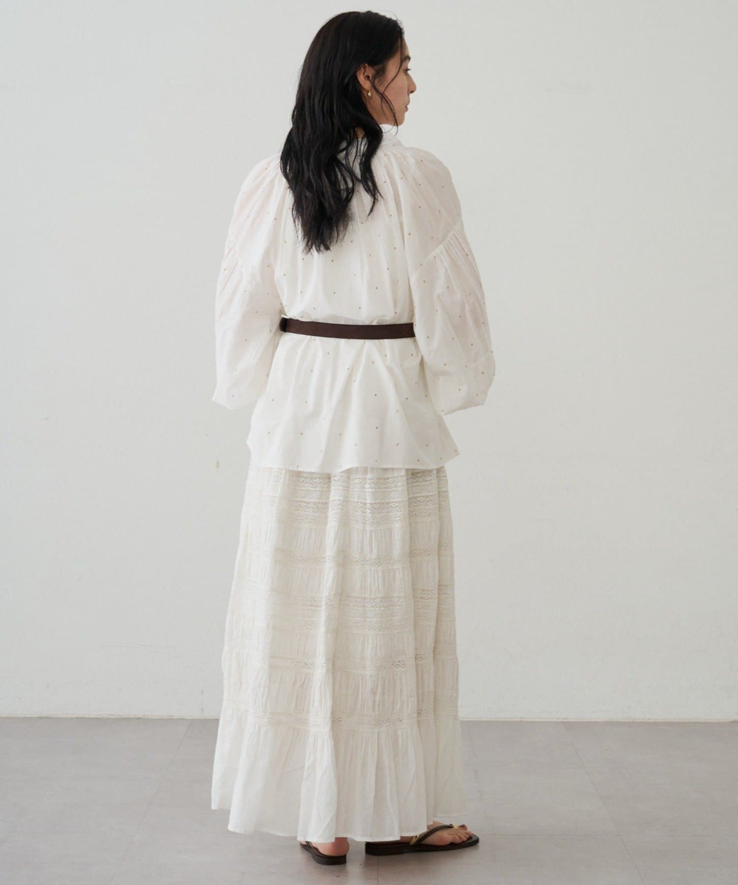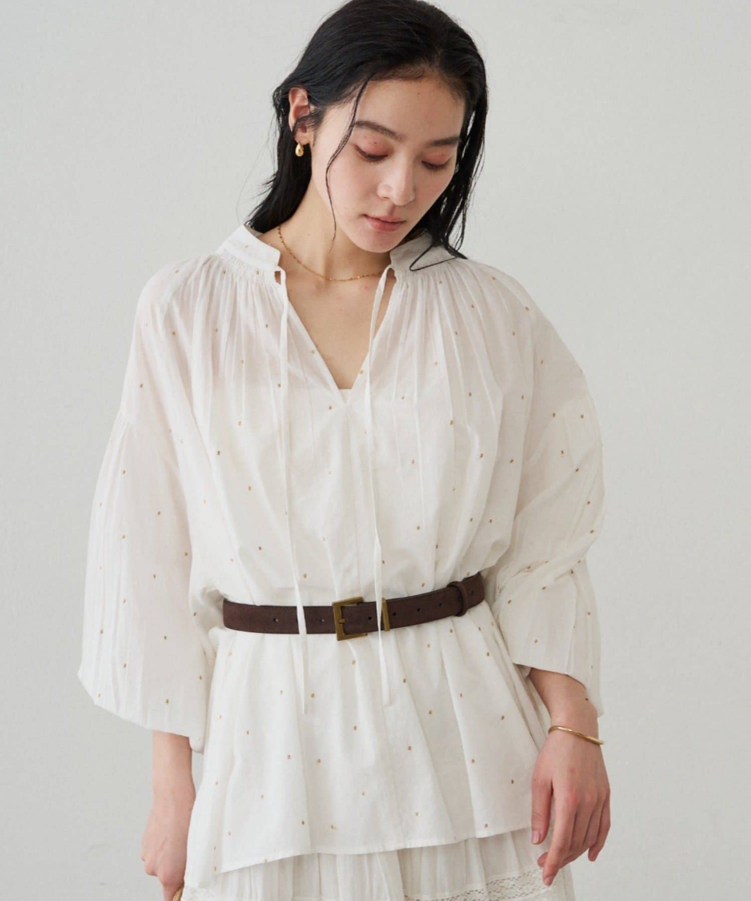 キラッとした甘すぎないドット刺繍が、大人でも取り入れやすい上品なアクセントに