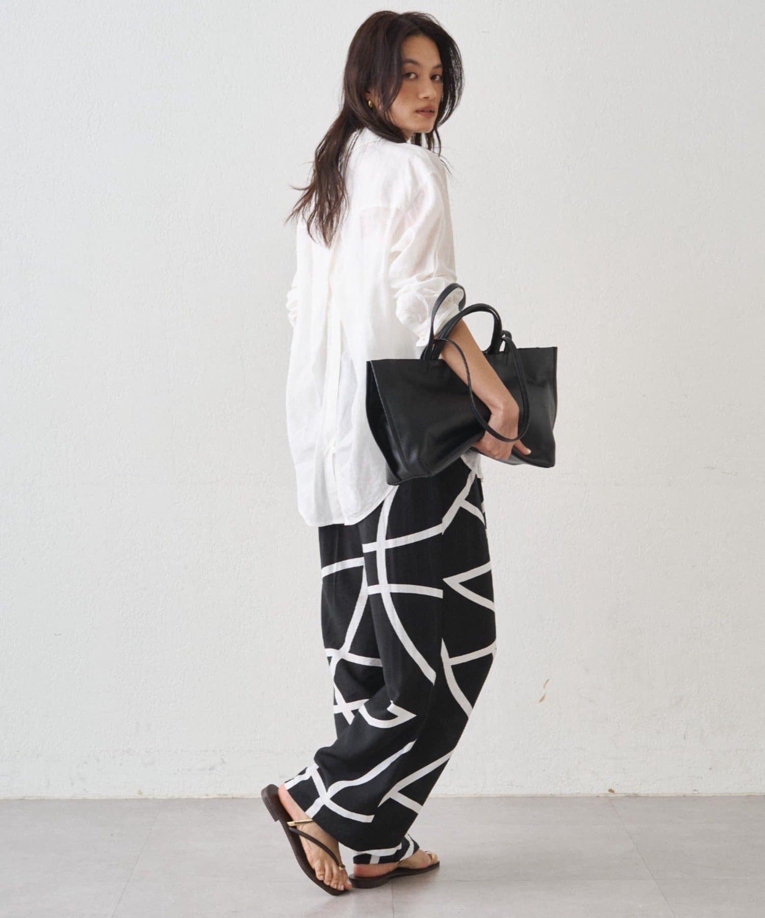 背中にボタンがついていて、着用シルエットを気分で変えていただけます。