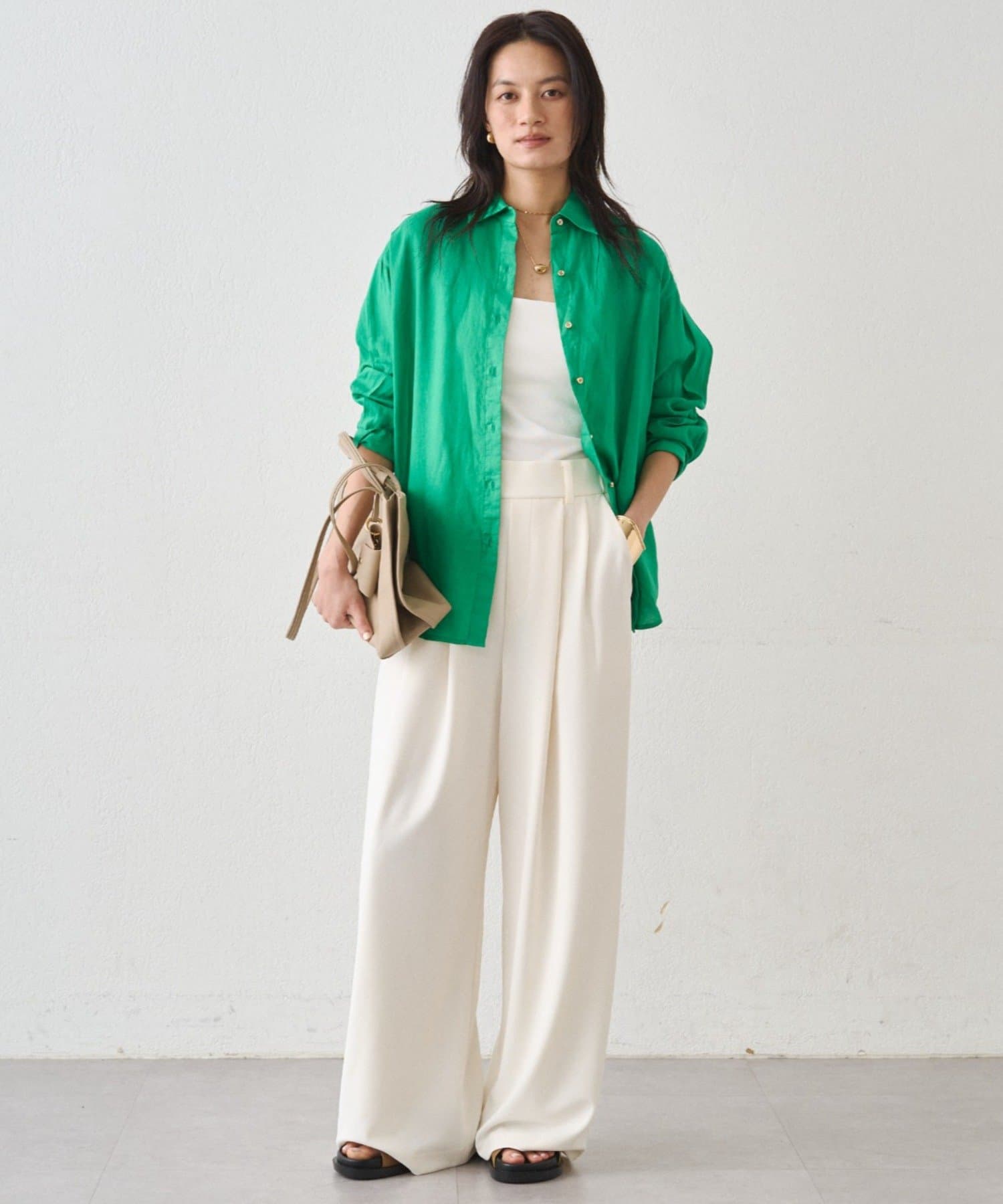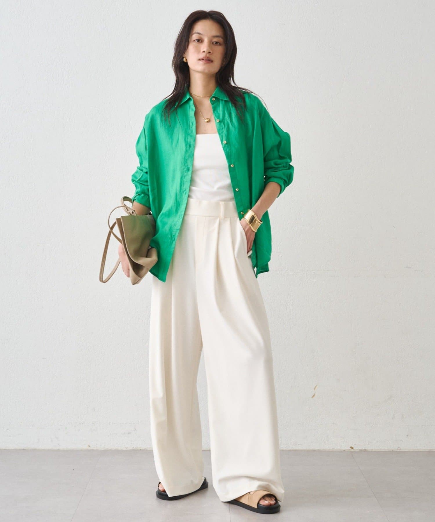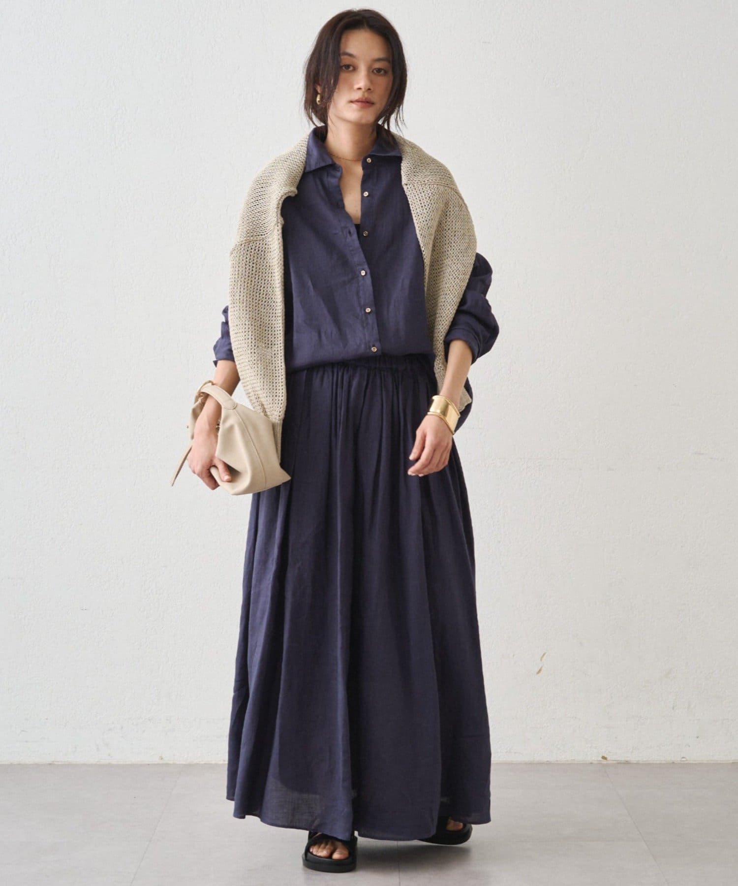デニムを合わせた大人カジュアルやタイトスカートを合わせた女性らしいコーデにも。