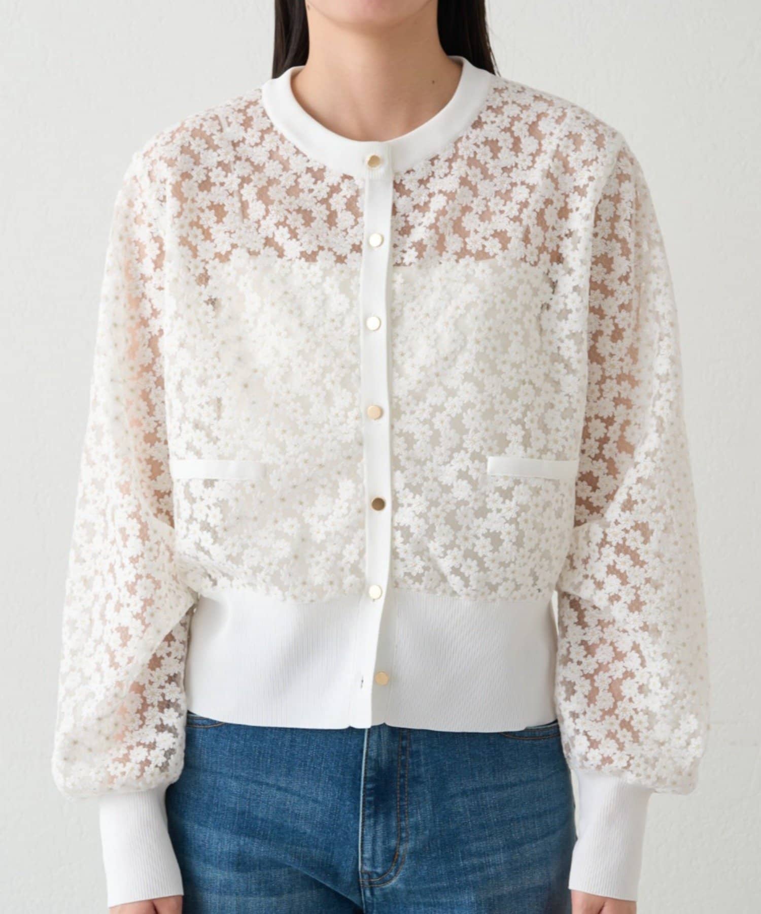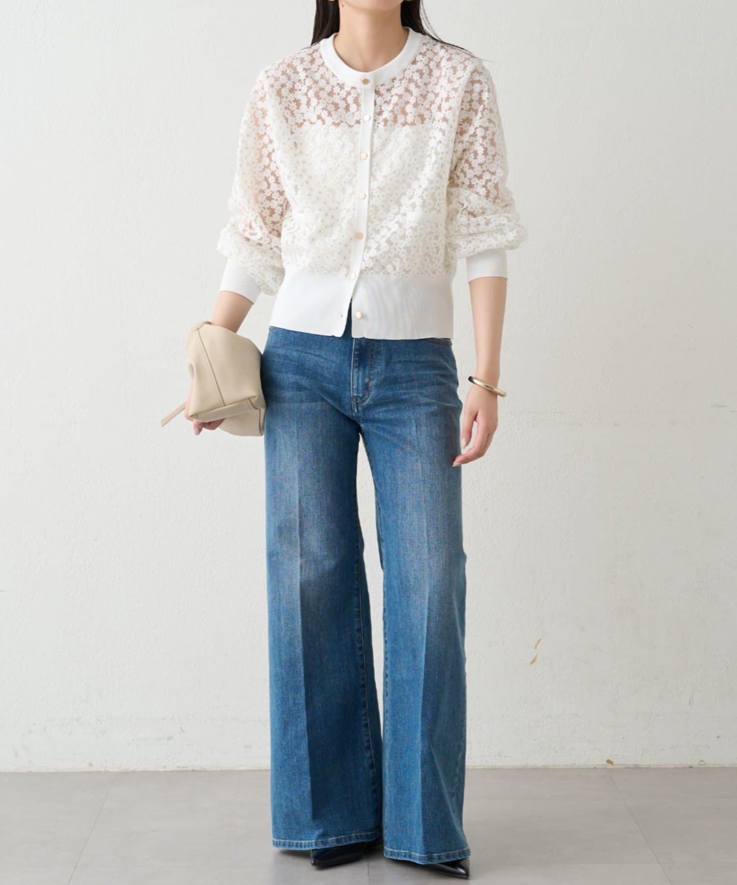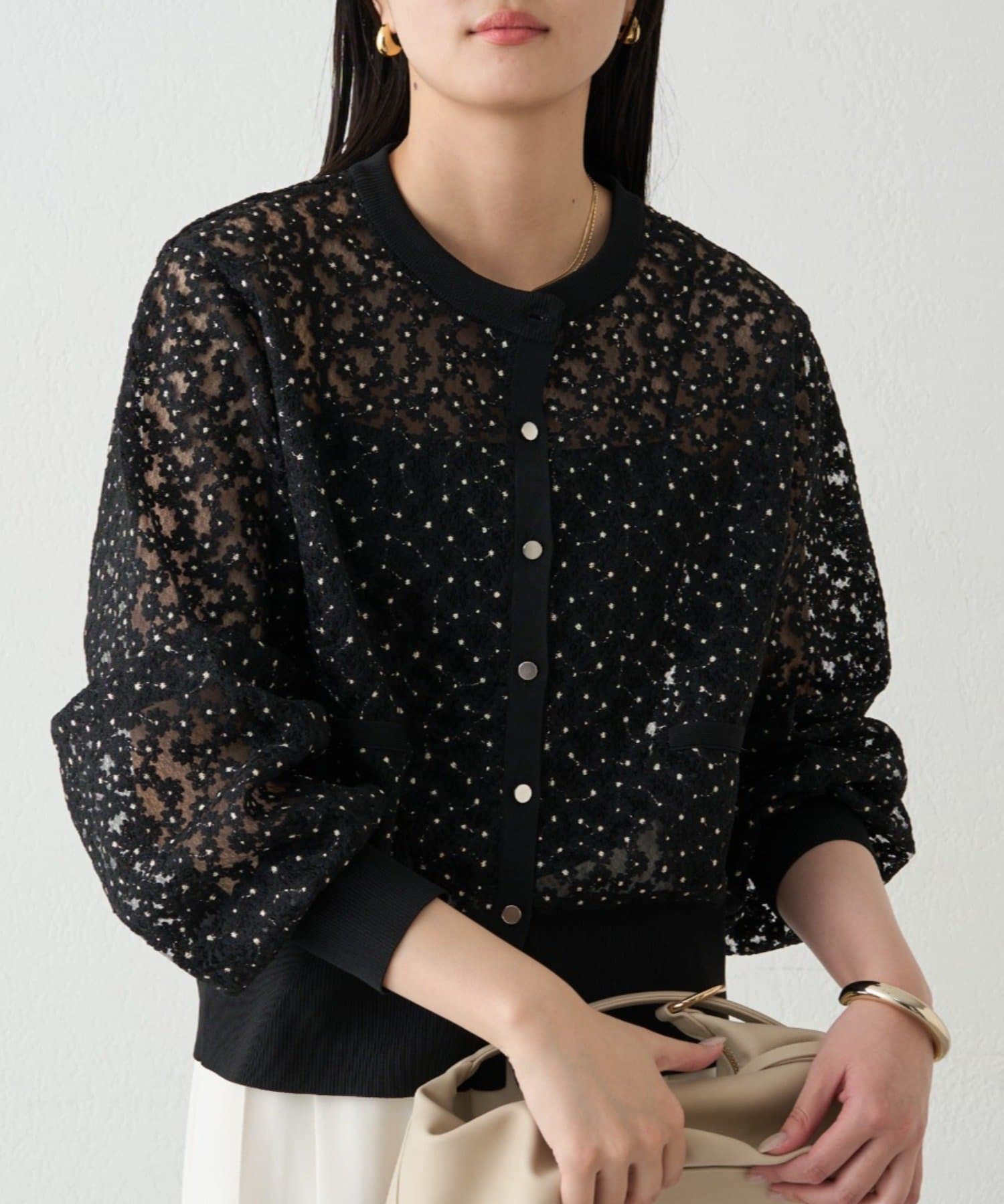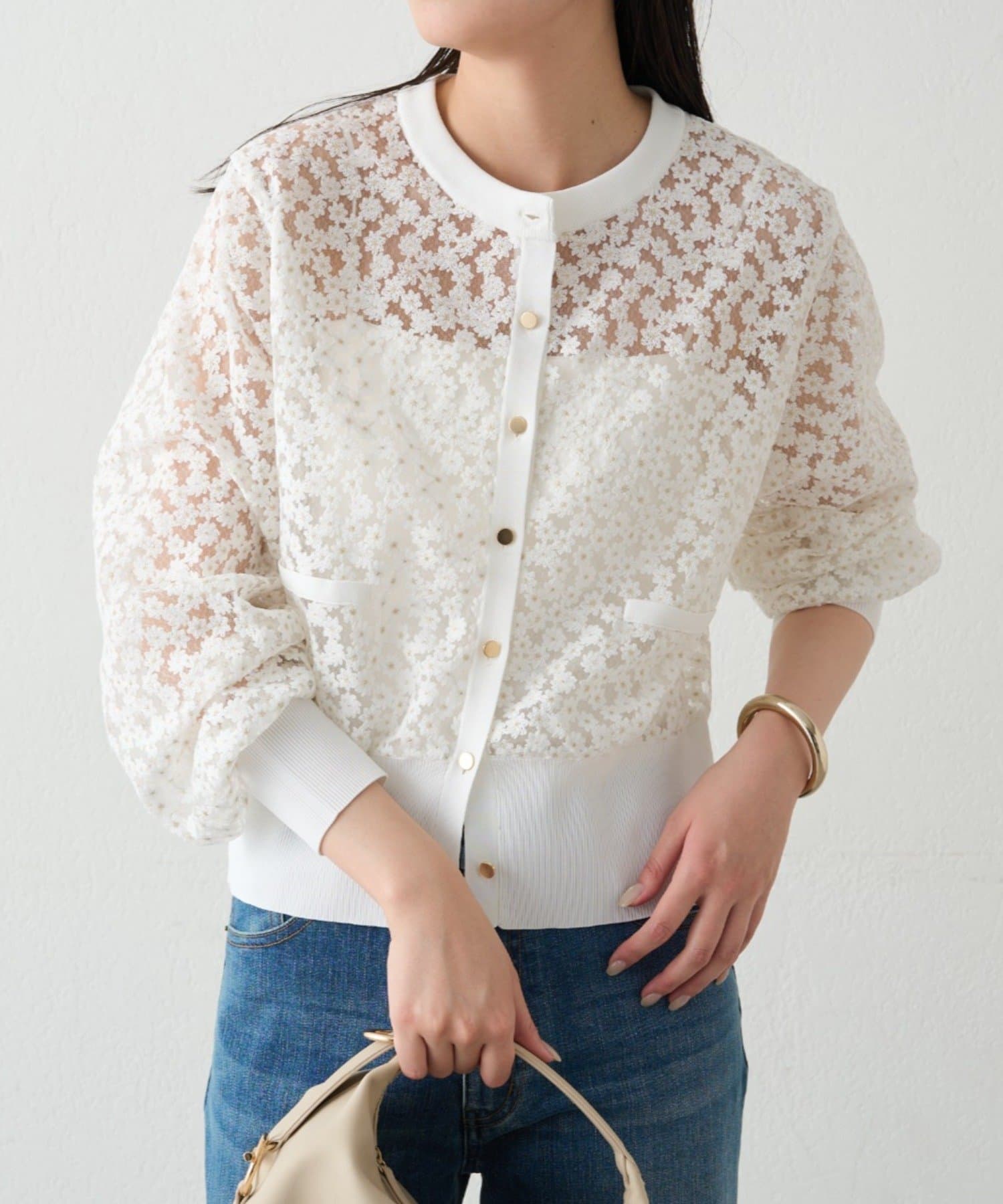 繊細なレースが軽やかな印象をプラス。大人フェミニンなレースカーディガン