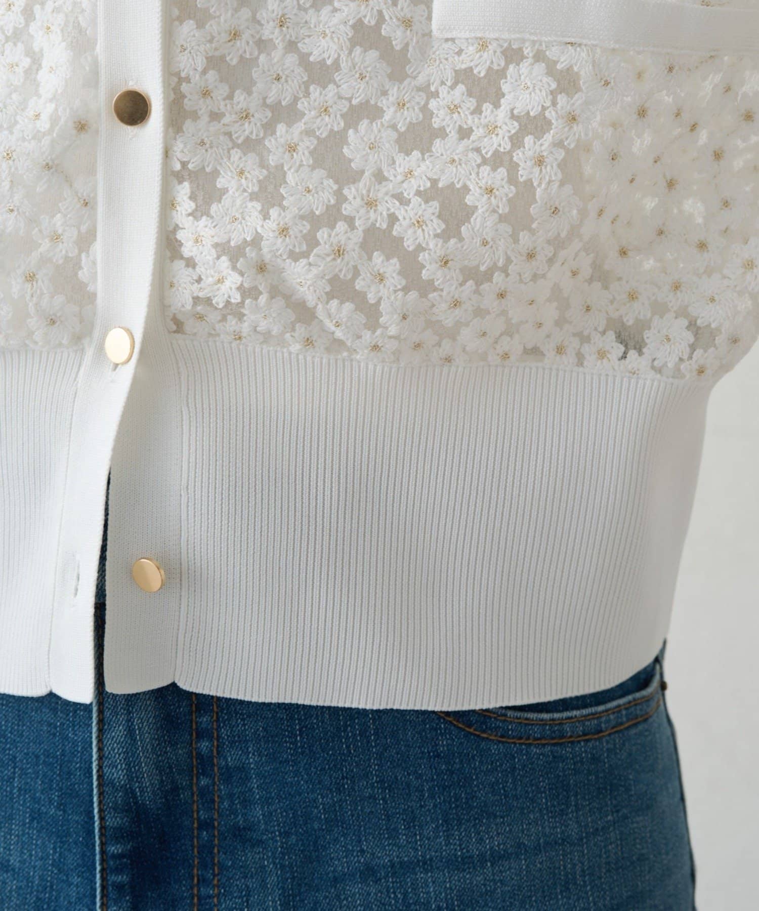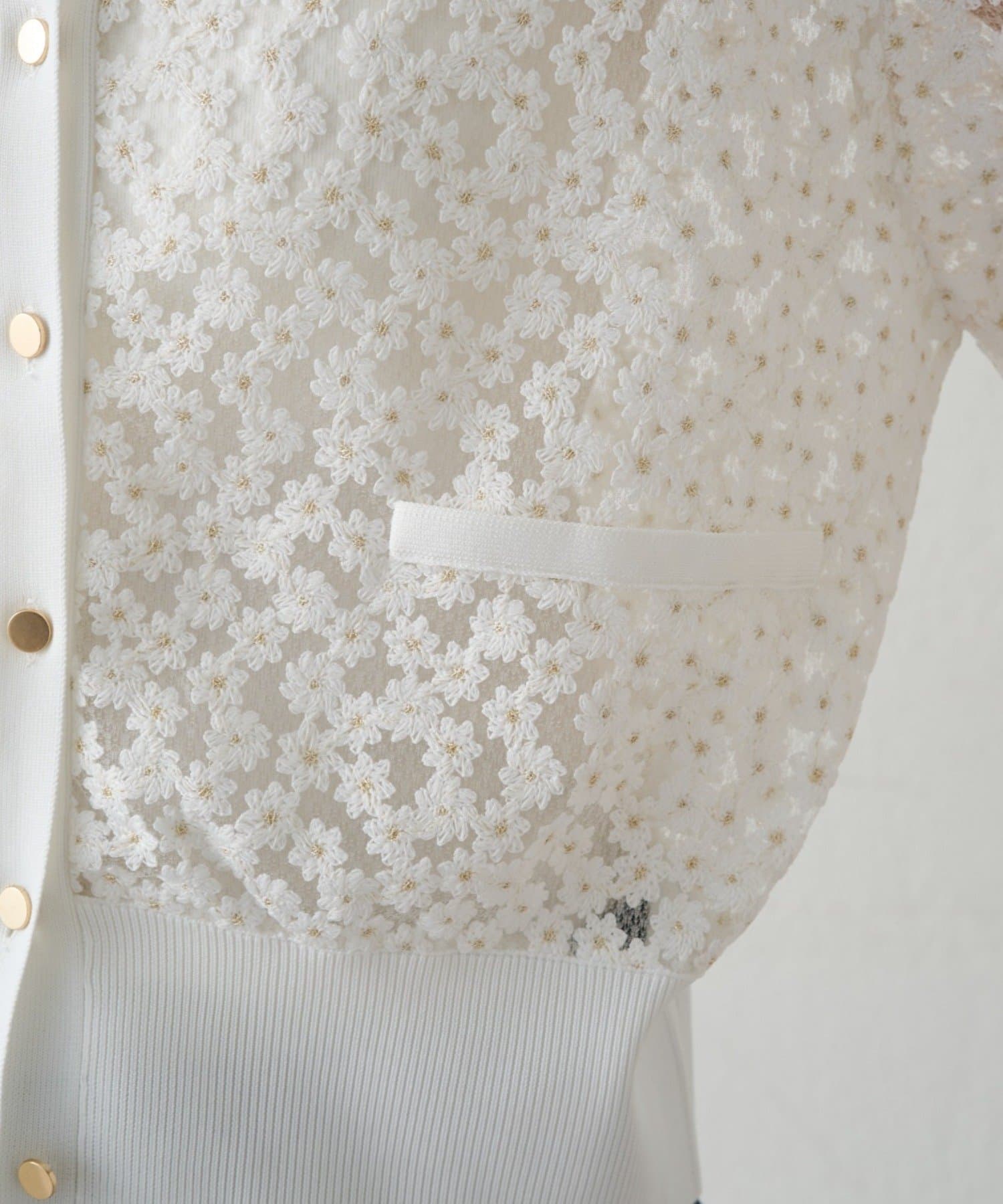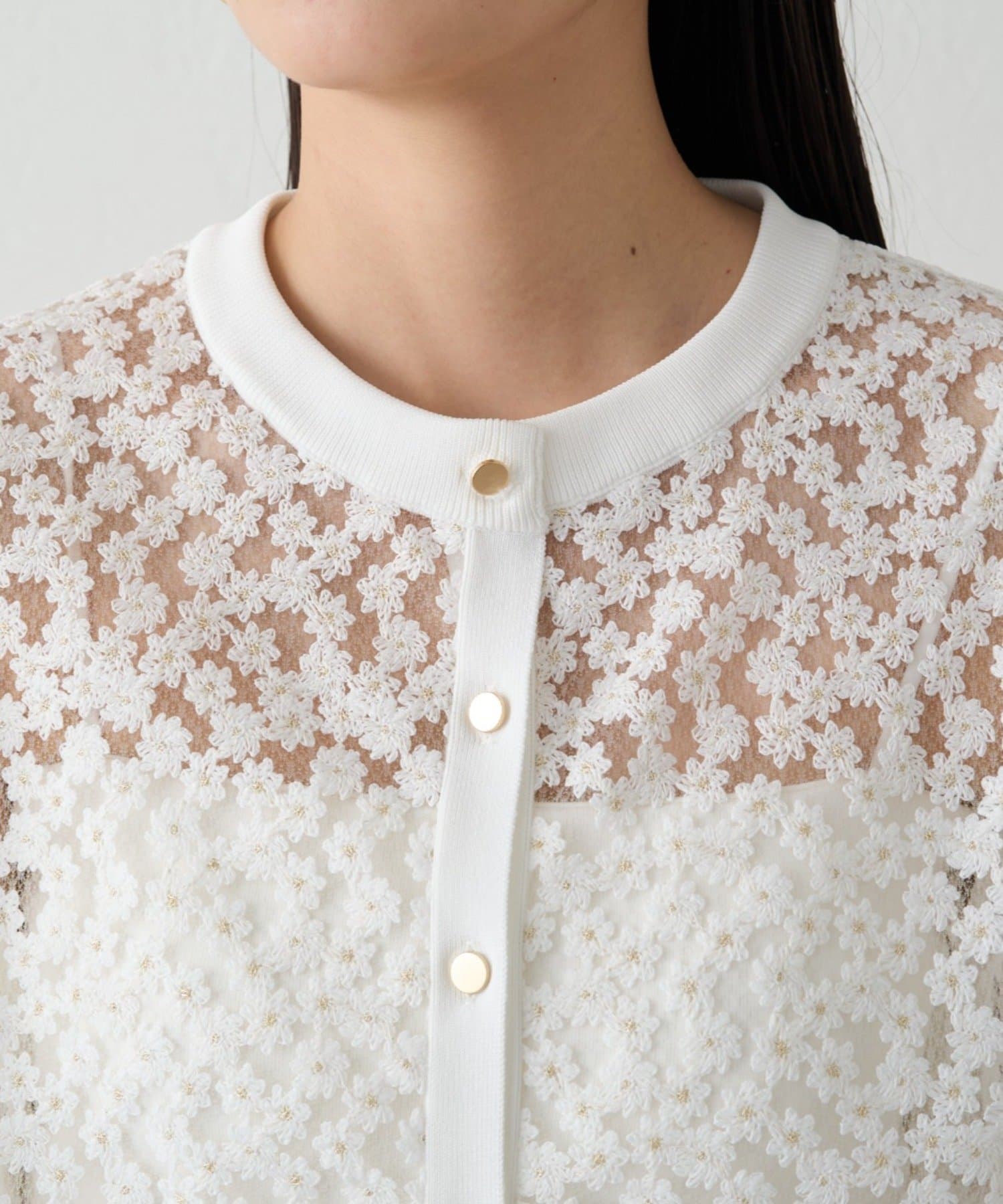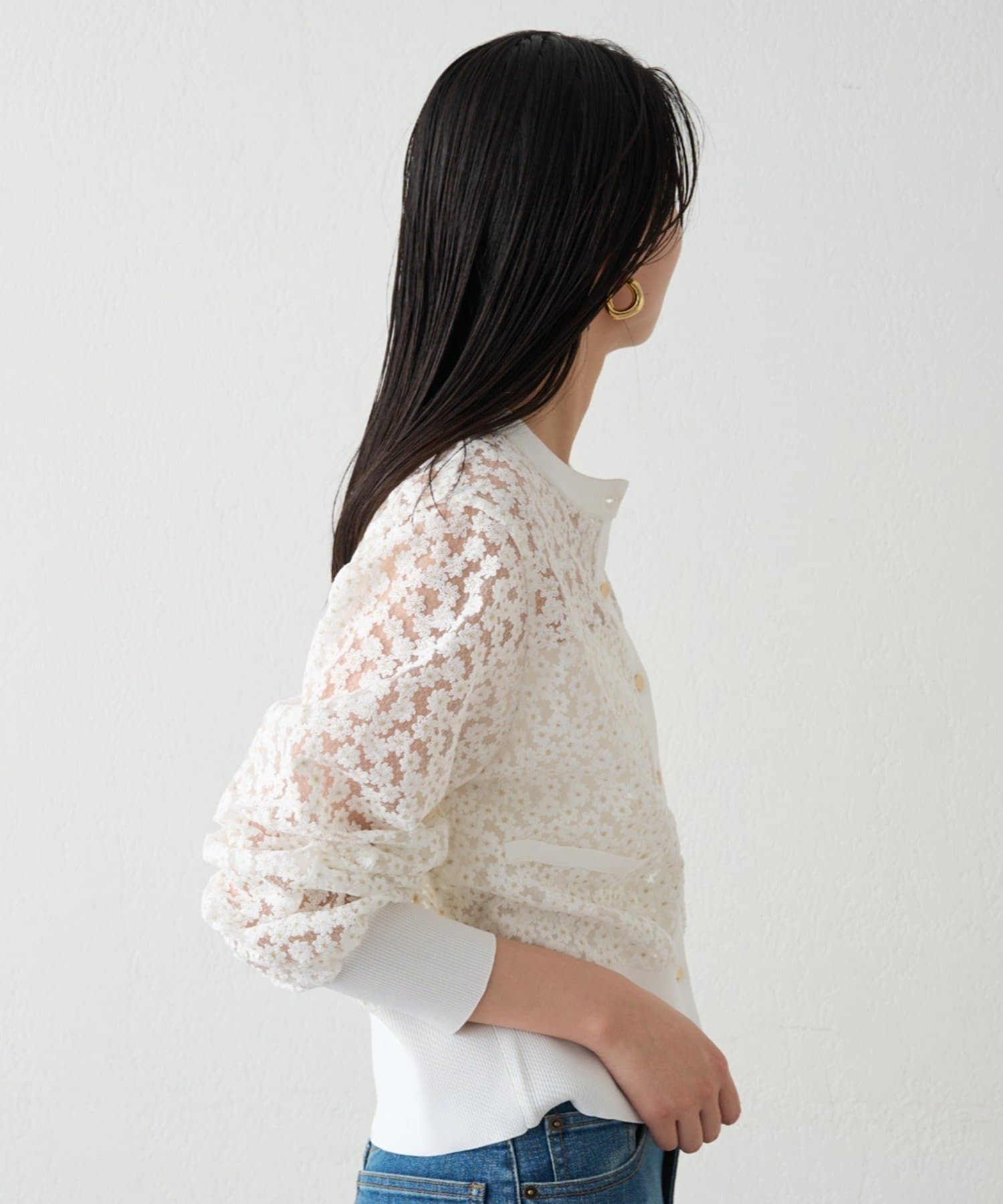 繊細なレースが軽やかな印象をプラス。大人フェミニンなレースカーディガン