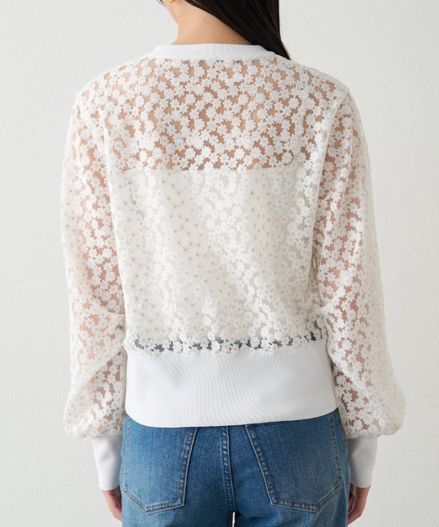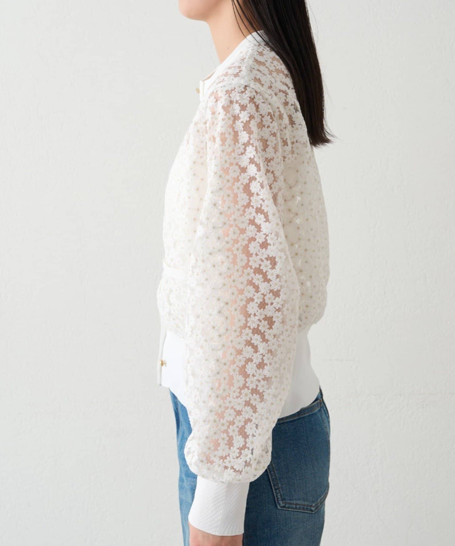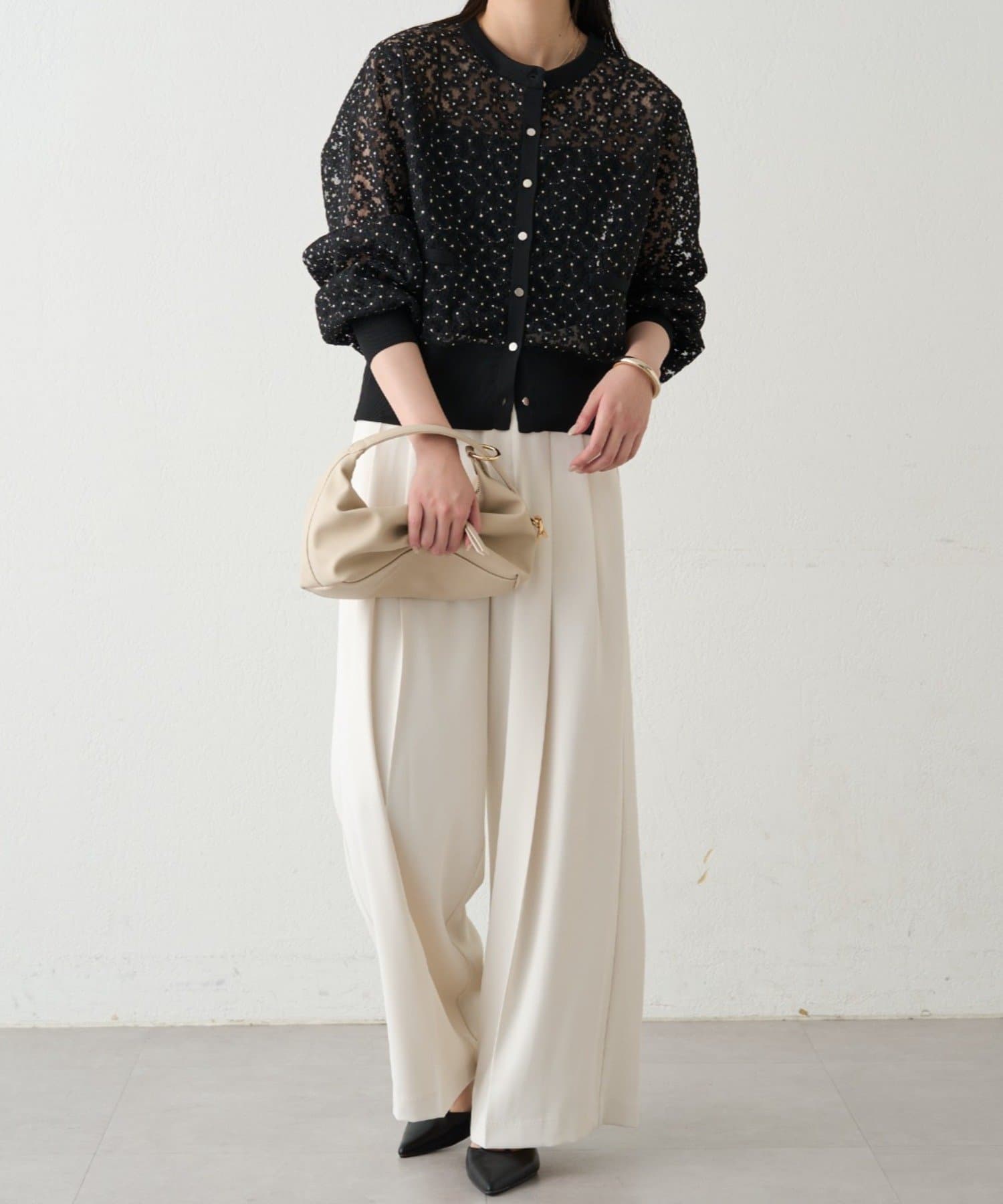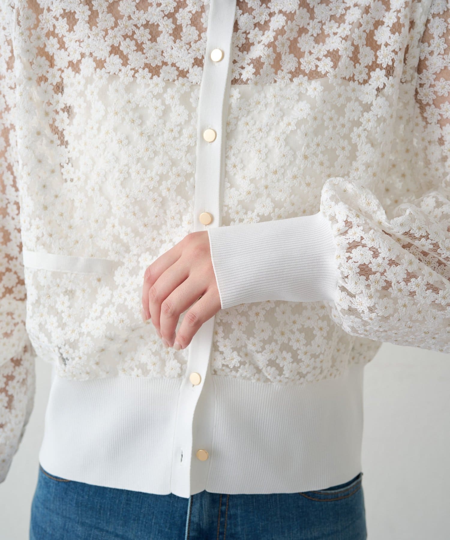 繊細なレースが軽やかな印象をプラス。大人フェミニンなレースカーディガン