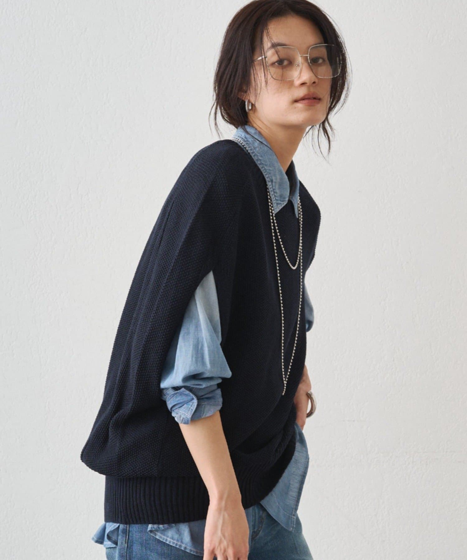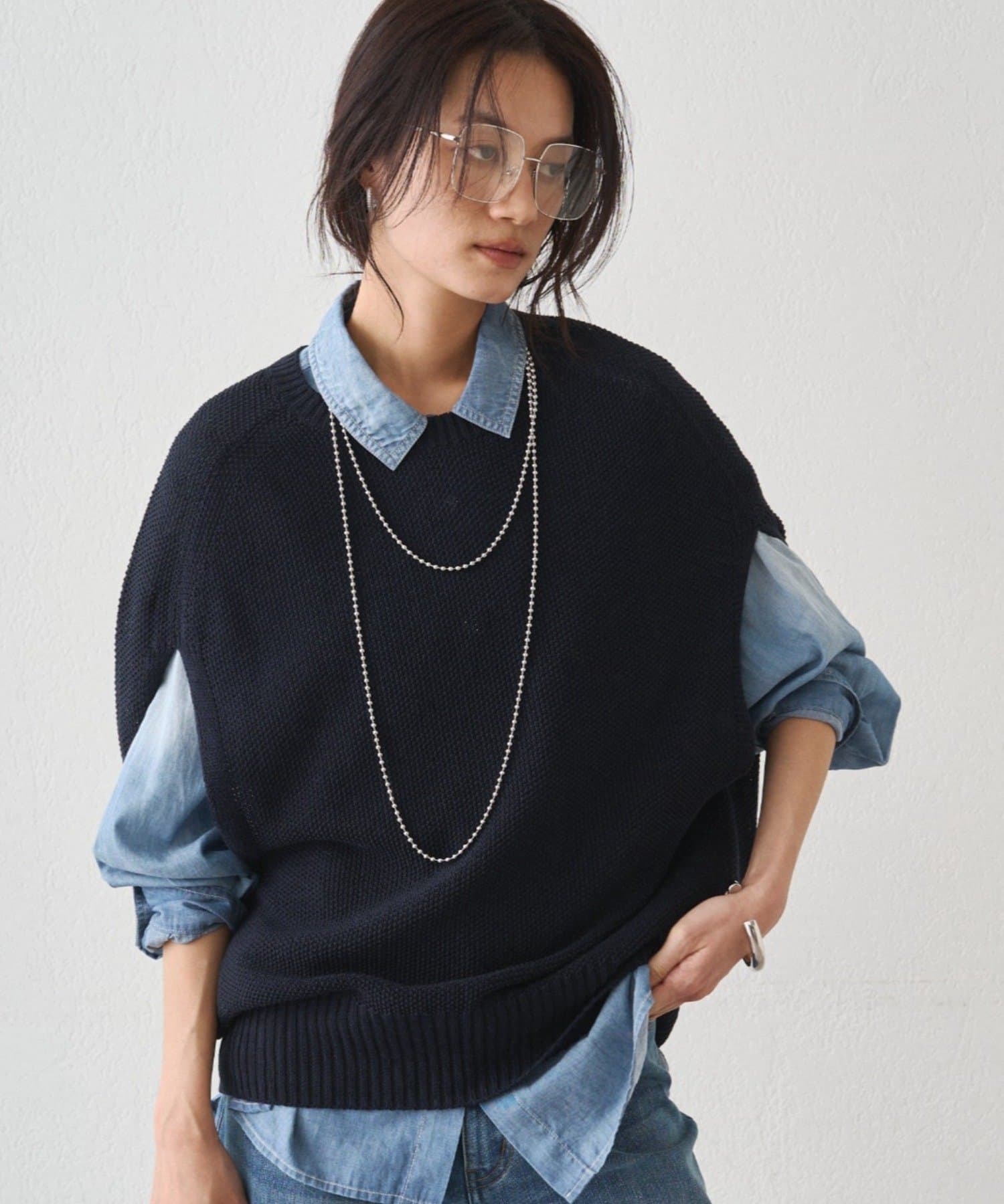 ワンピースやシャツにレイヤードすれば、ワンランク上のおしゃれな着こなしに。