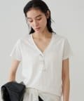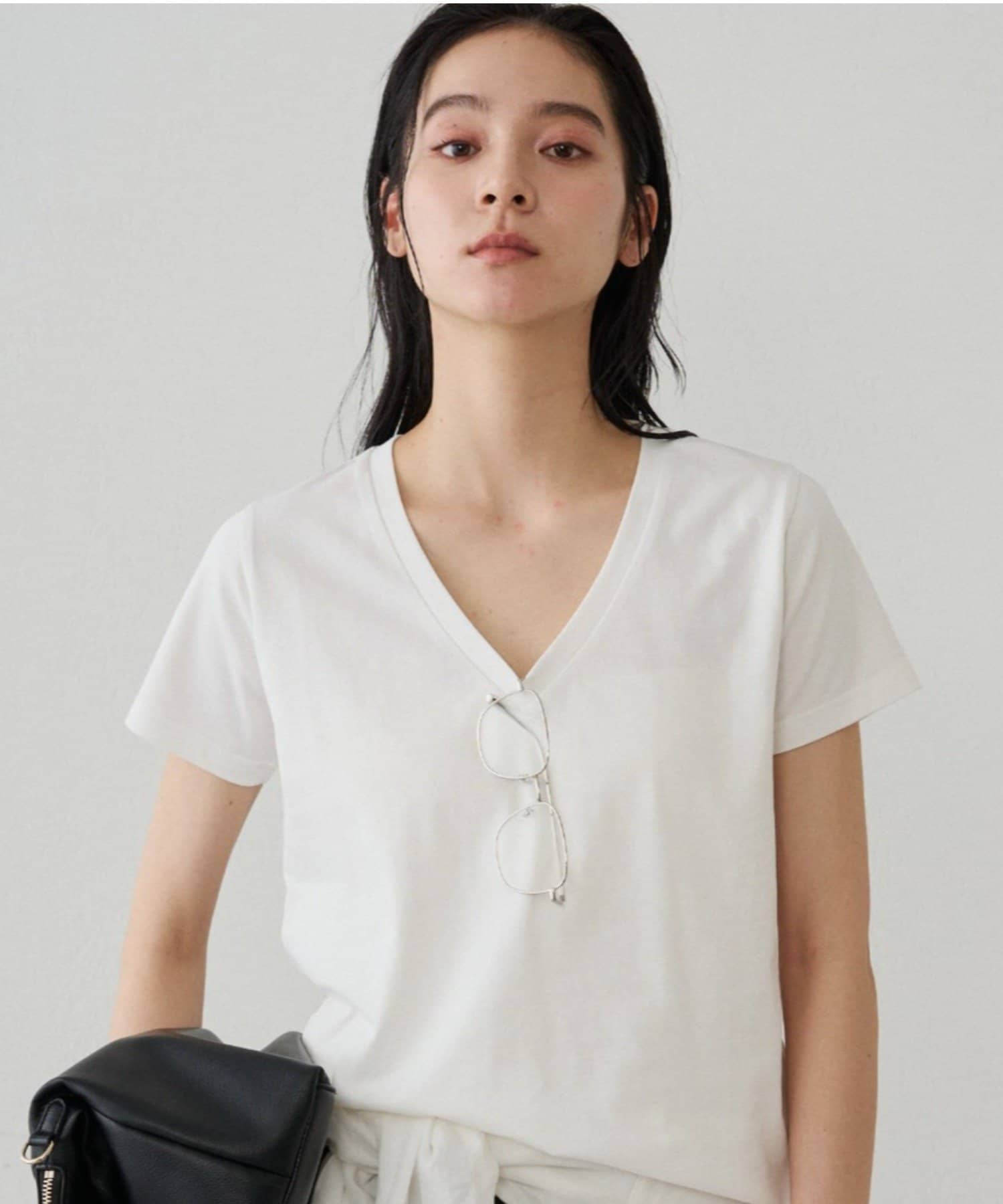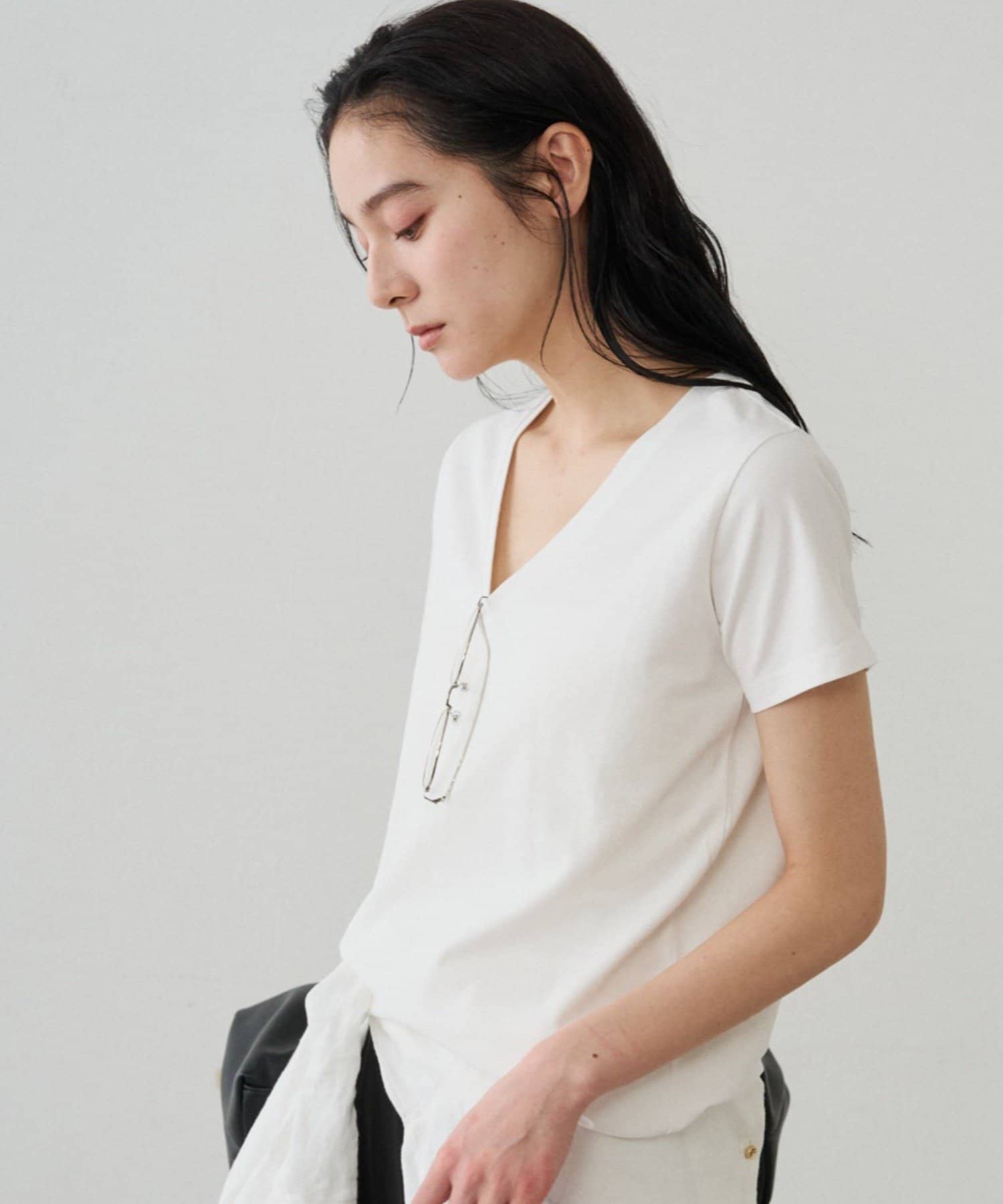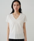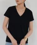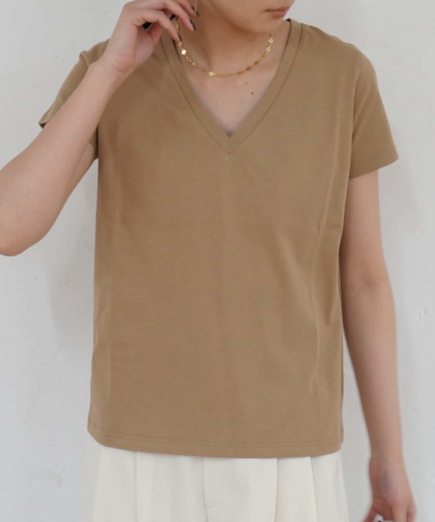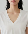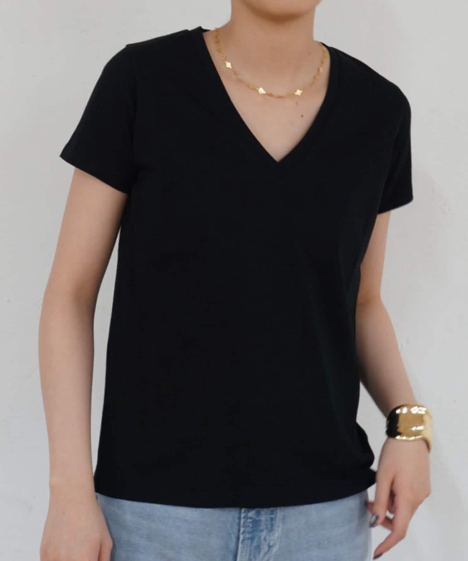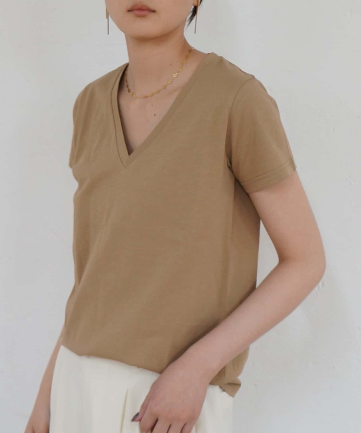 デコルテを美しく見せる、計算されたVネックラインが魅力のTシャツ。