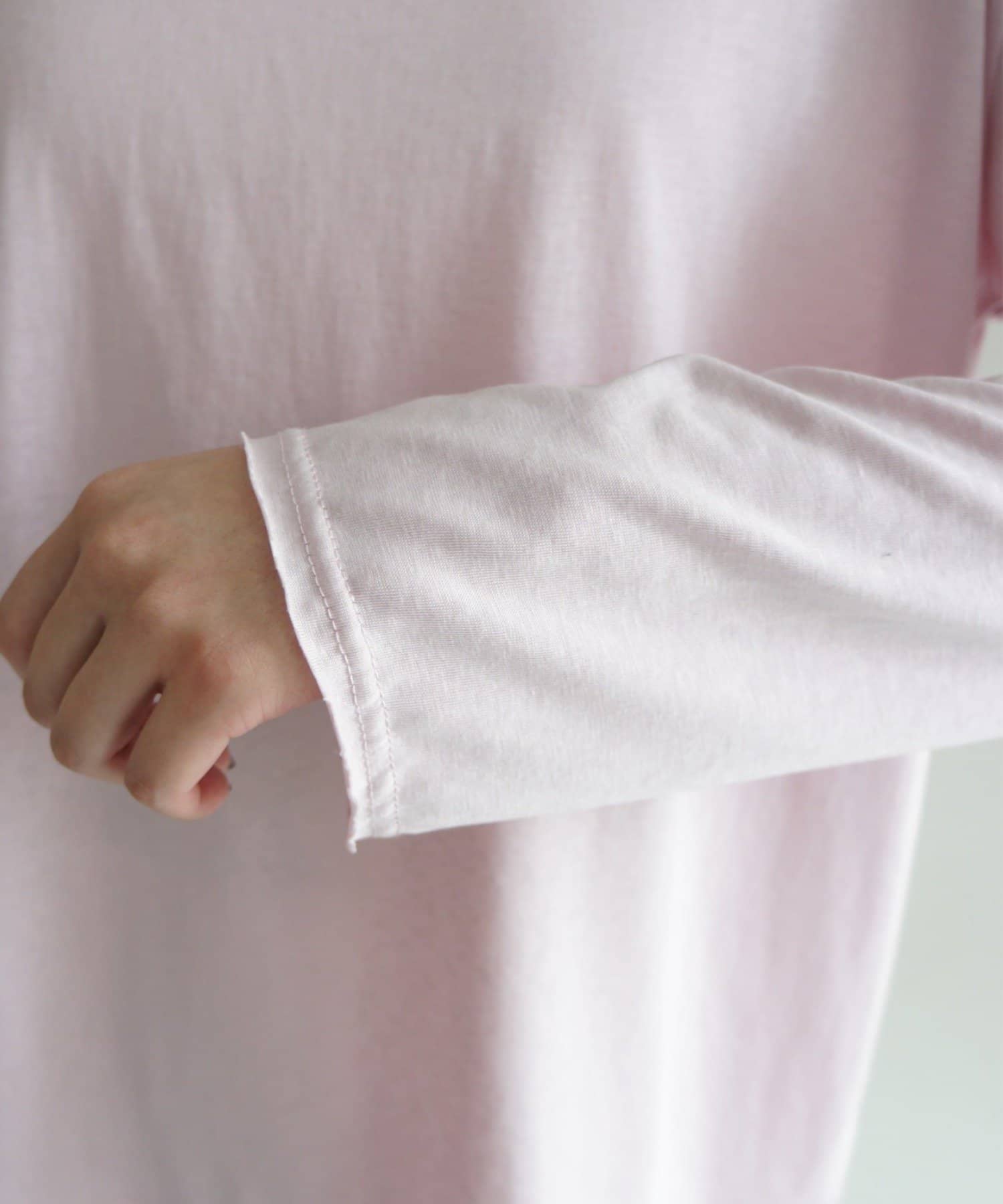 ふんわりとした柔らかな生地がシンプルなデザインに奥行きをプラスします。さらりとした肌触りで着心地も良く、程よくゆとりのあるシルエットが体のラインを拾わずリラックス感のある着こなしに。デイリーにもおうち時間にも活躍する一枚です。