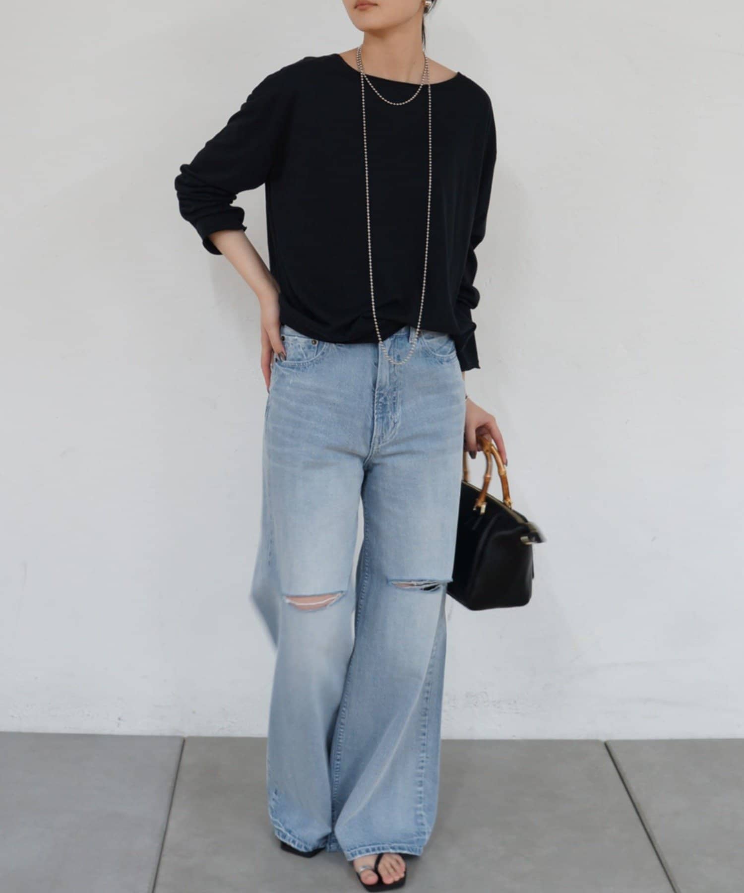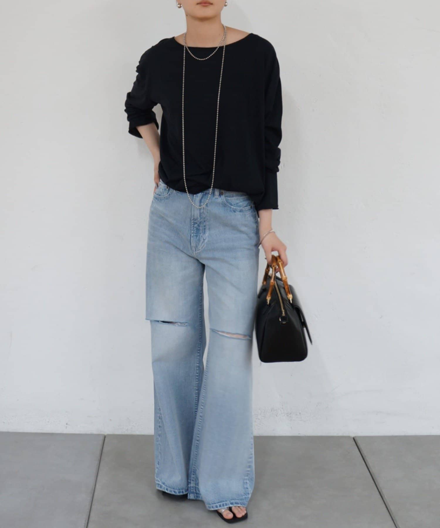首元は開きすぎないボートネックで上品な印象を与えてくれます。