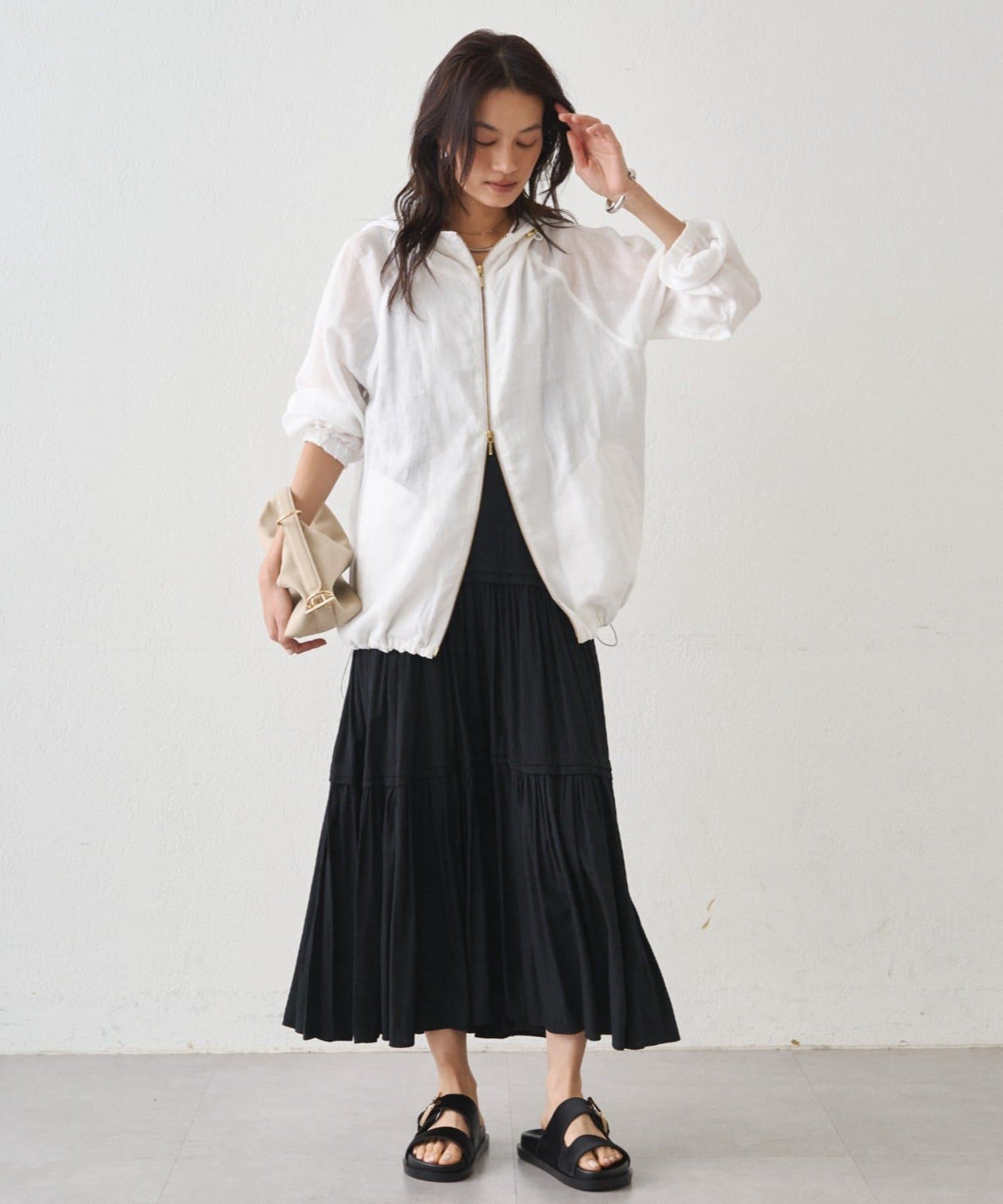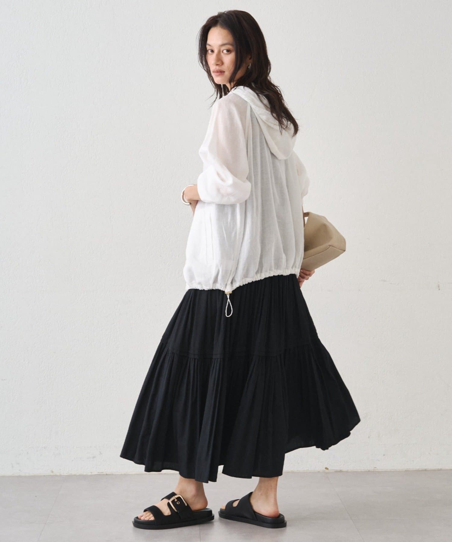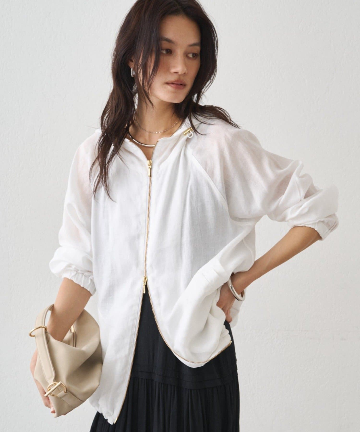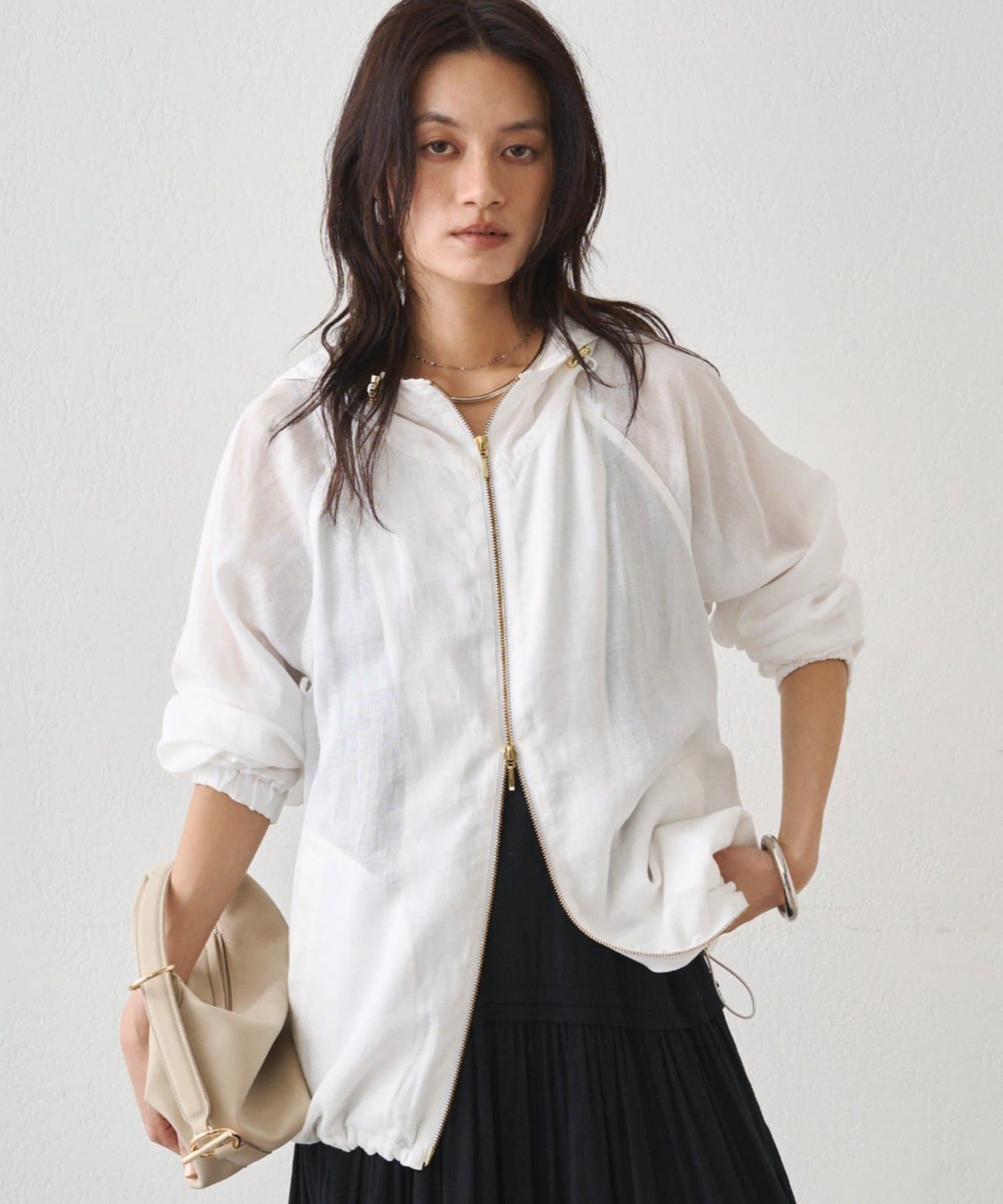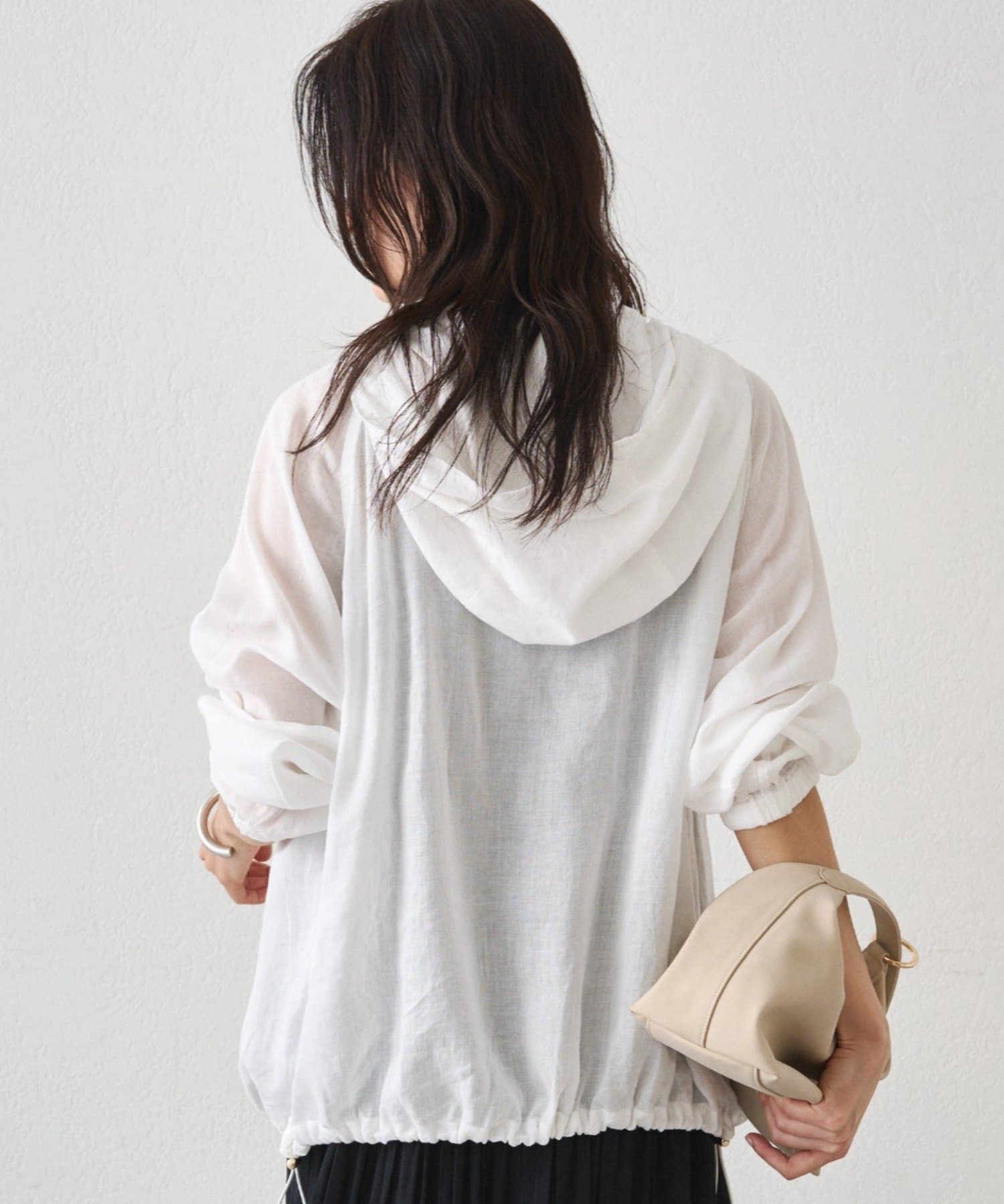 抜け感のある、ほどよいシアー素材のパーカー。