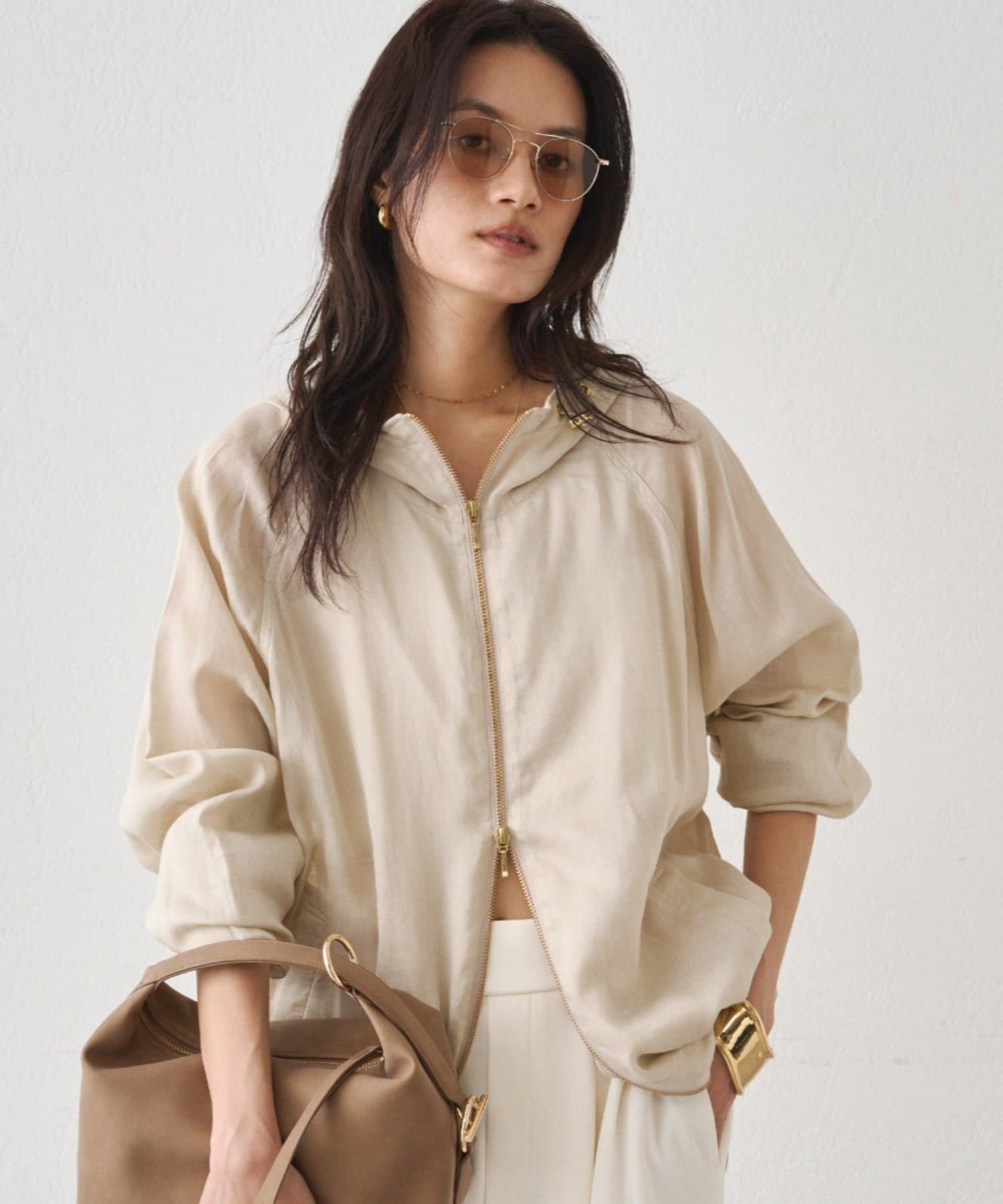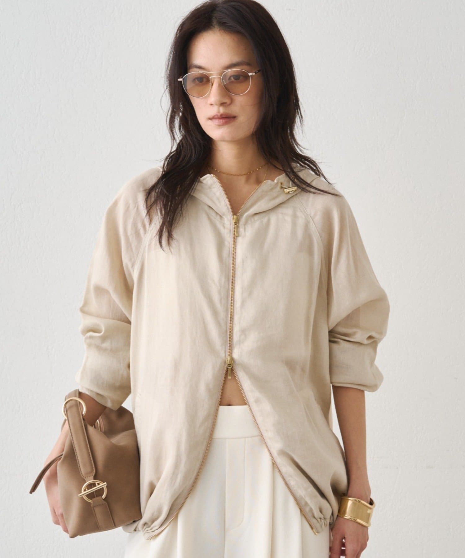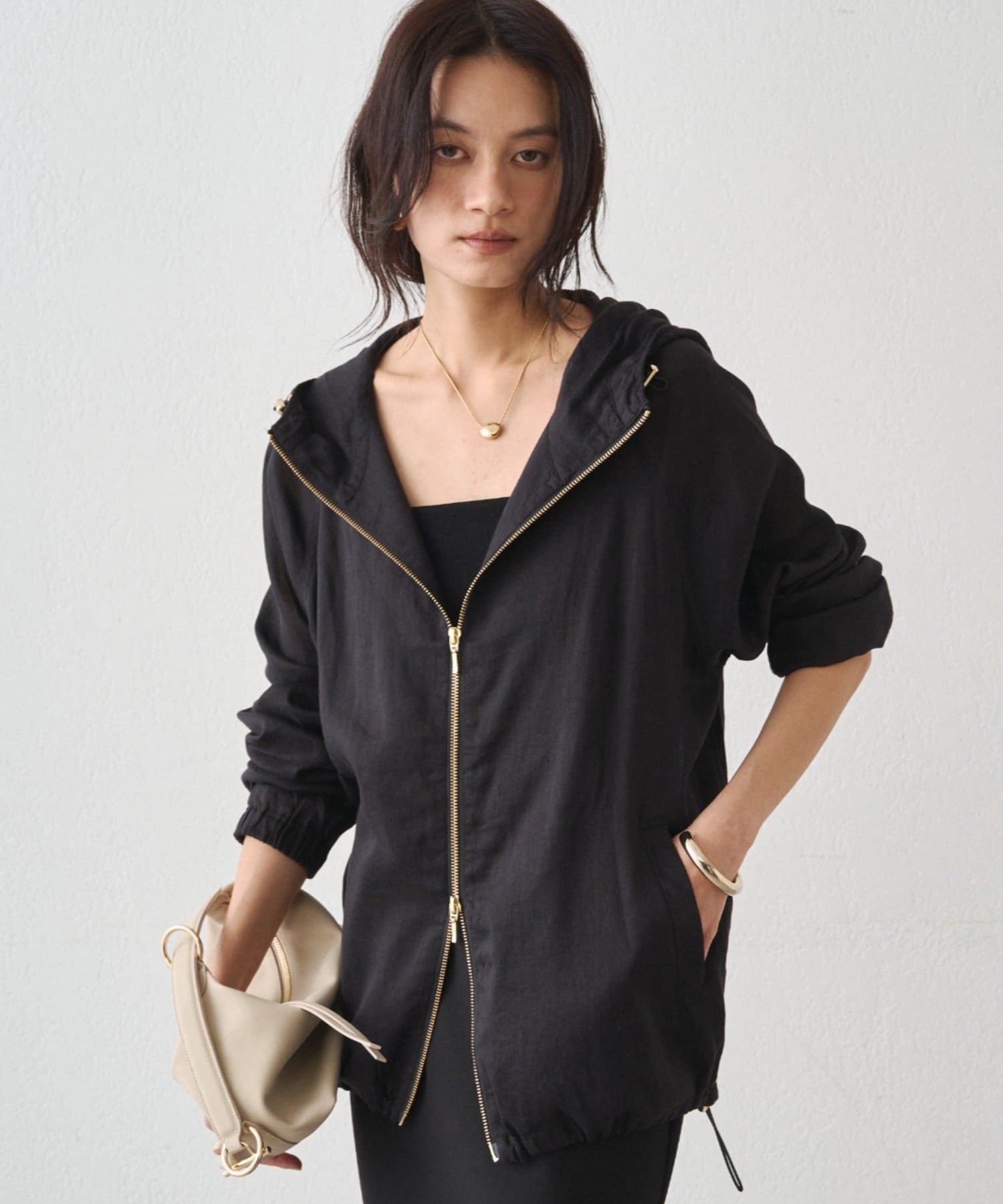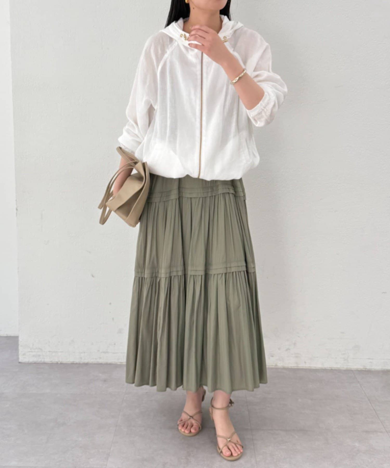 抜け感のある、ほどよいシアー素材のパーカー。
