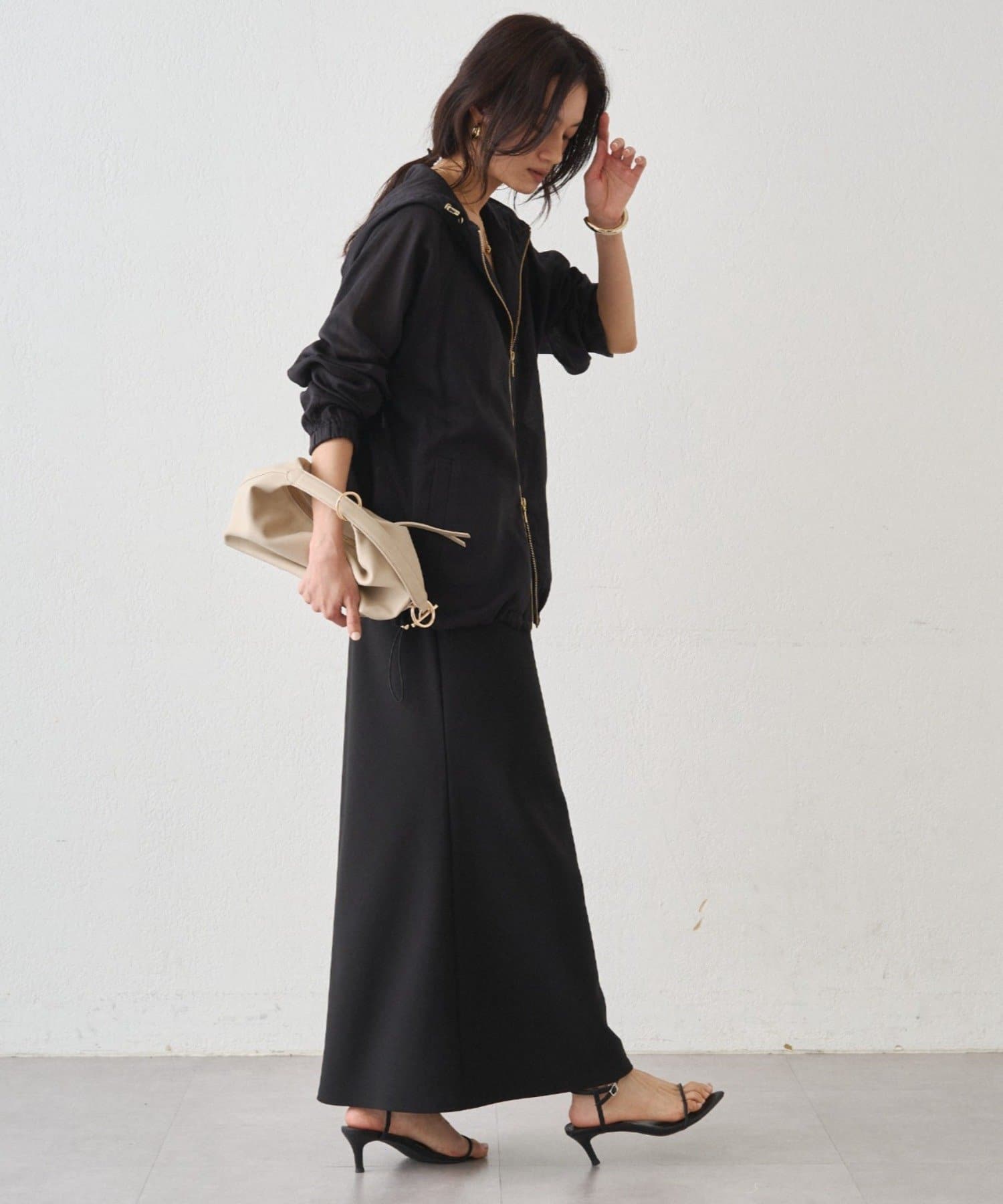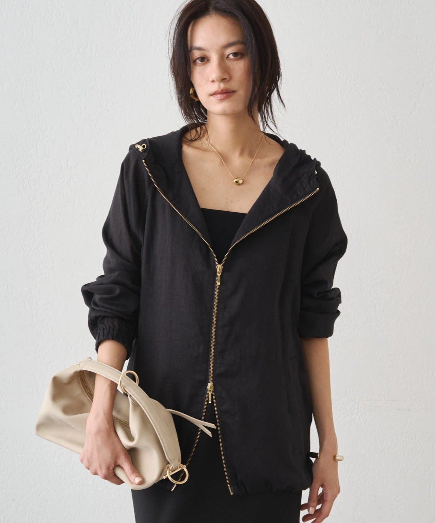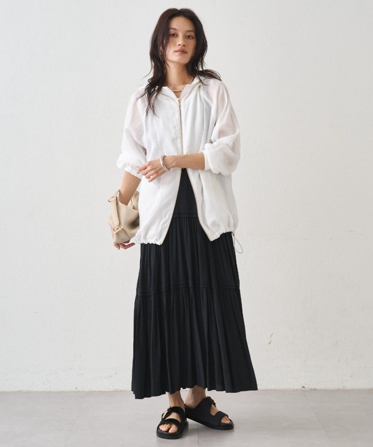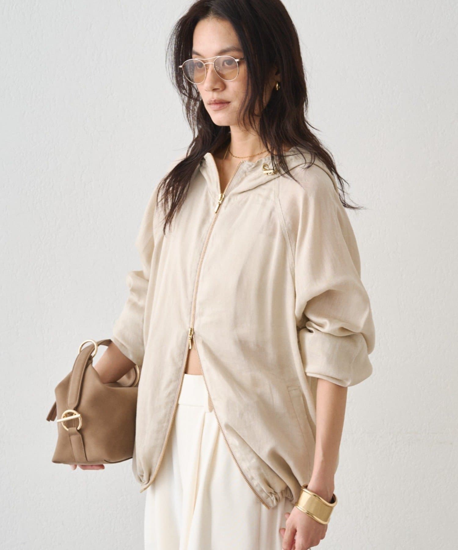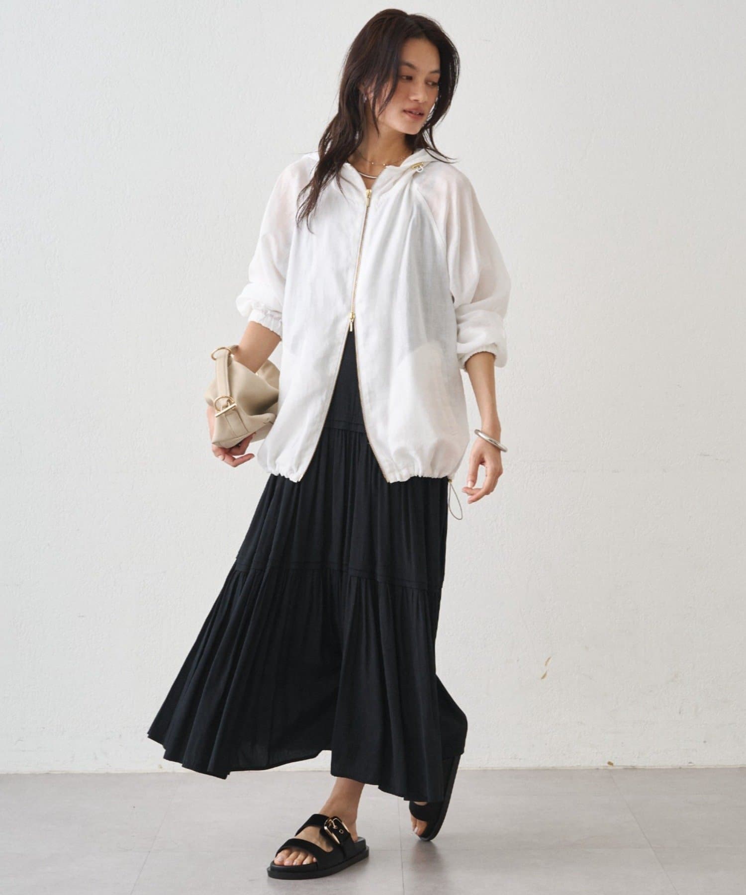 抜け感のある、ほどよいシアー素材のパーカー。