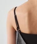華奢なストラップが、女性らしさを引き立てます。インナー次第で、カジュアルにもシックにも着こなせるのが魅力です。