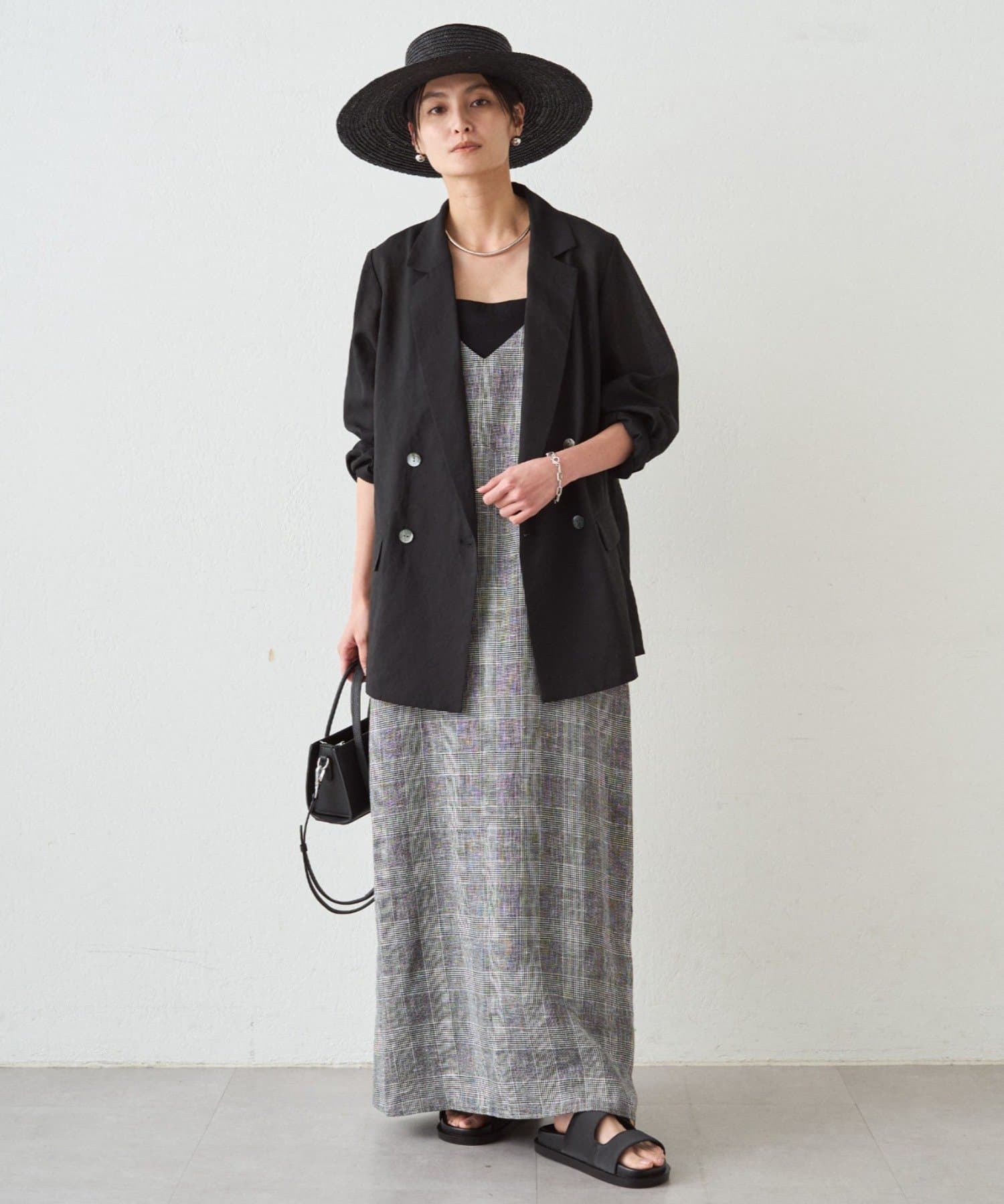 ナチュラルな素材感に、繊細なチェック柄が映えるキャミワンピース