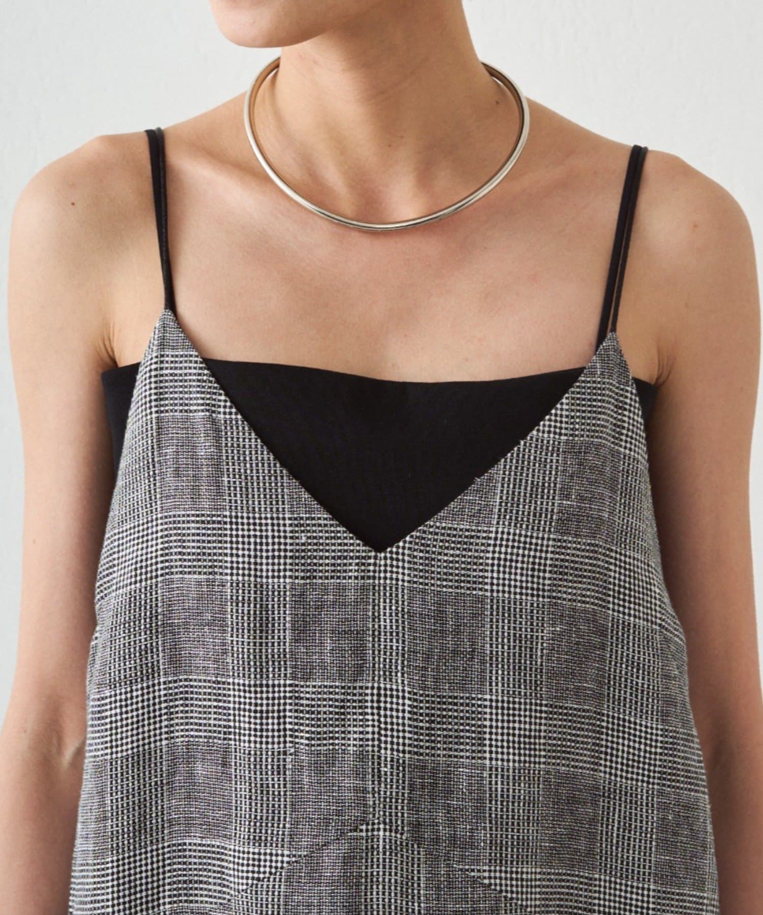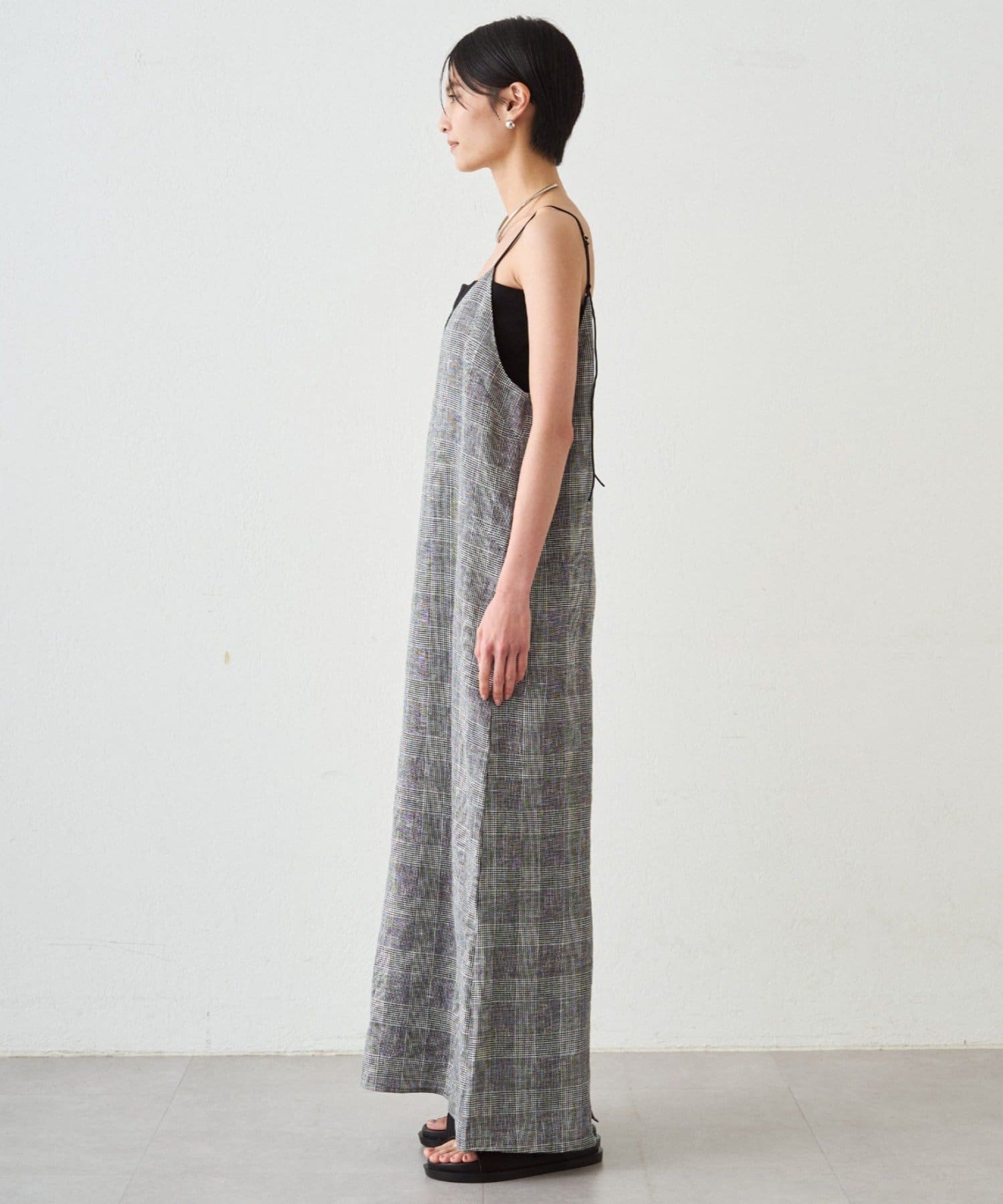 チェックリネンキャミワンピース