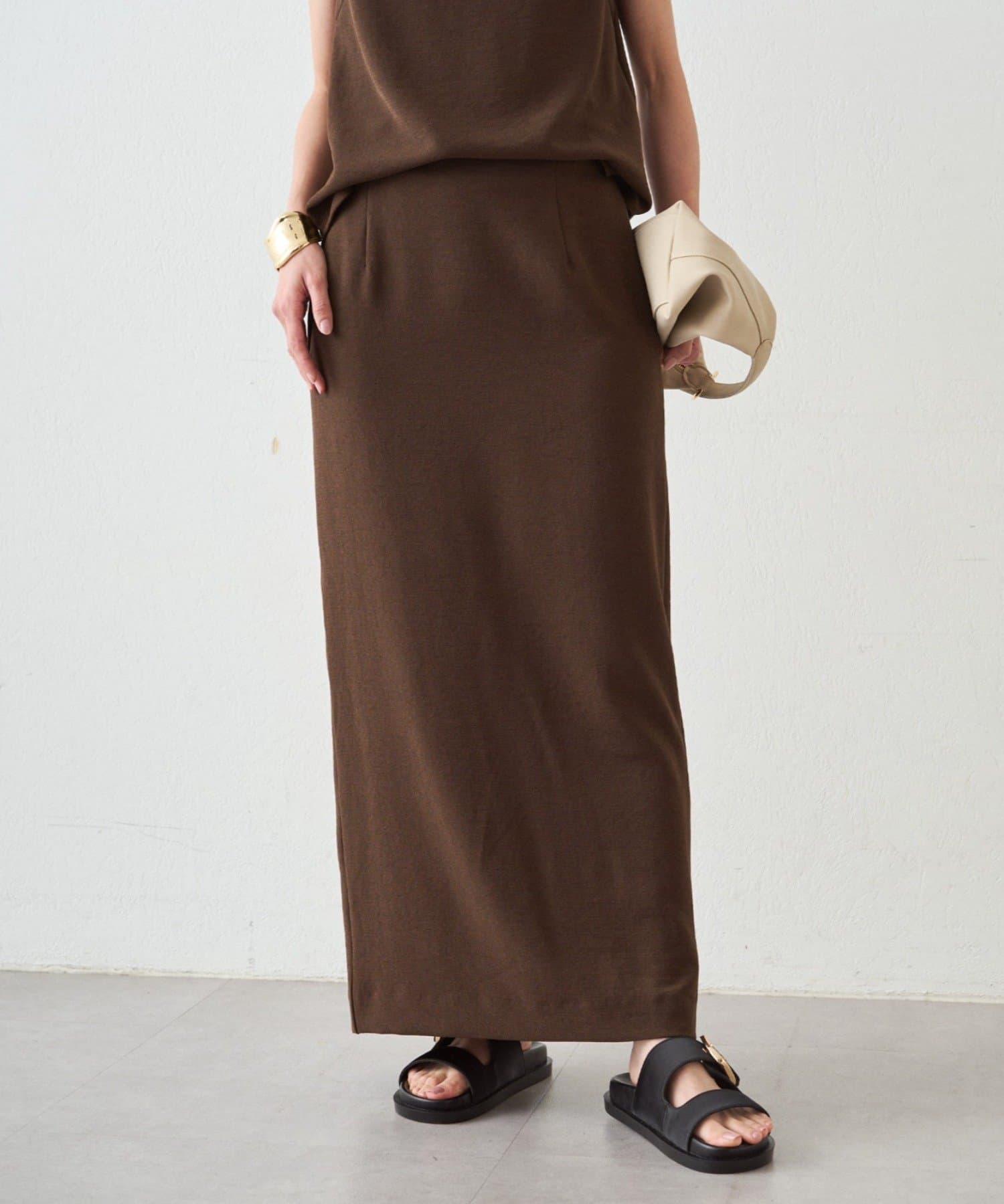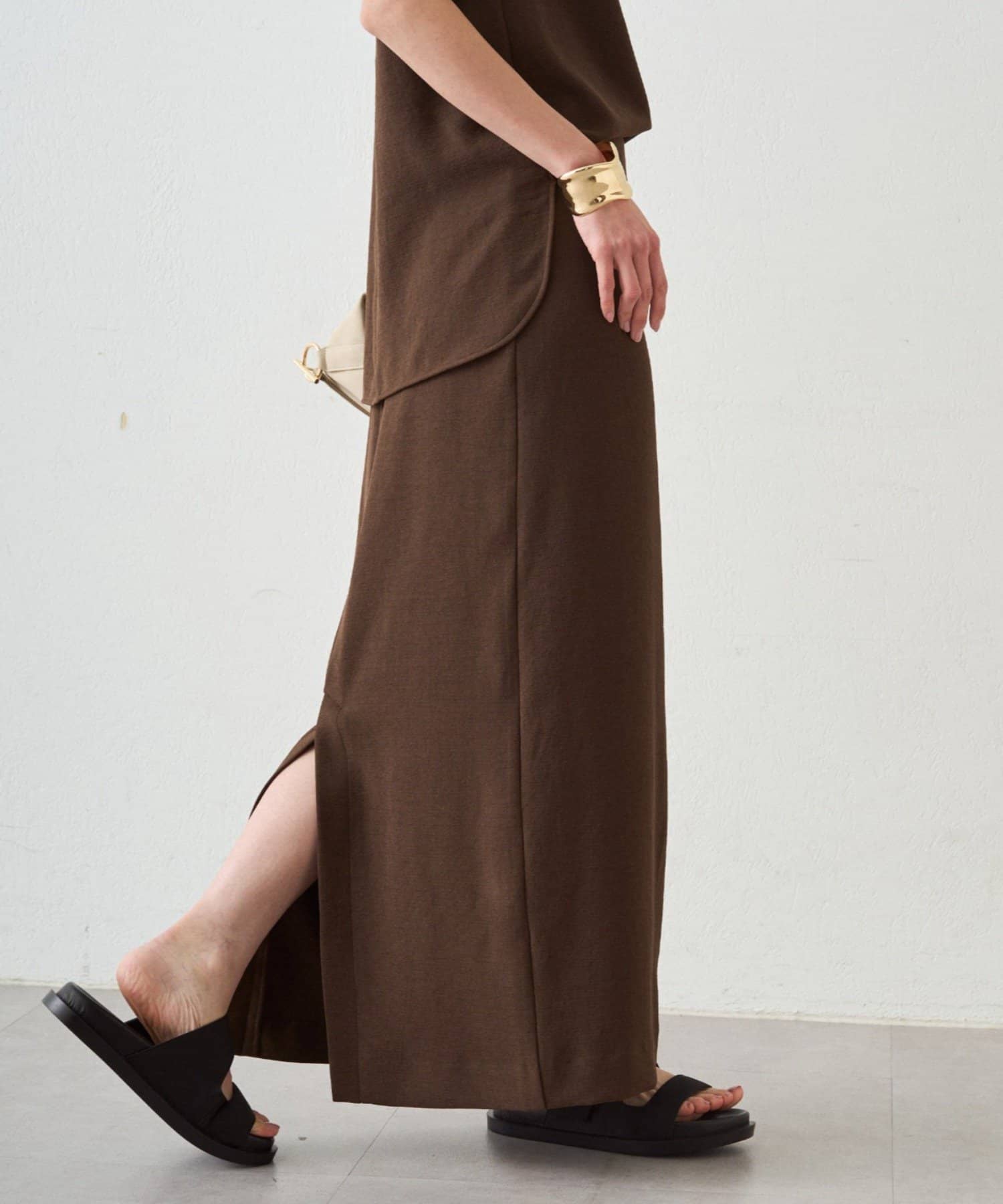上品な大人のこなれ感。ダブルジョーゼットタイトスカート