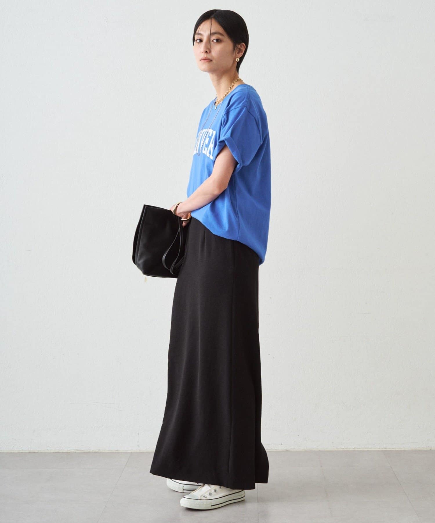 合わせるアイテムによって、 カジュアルからオフィススタイルまで、幅広いシーンで活躍します。